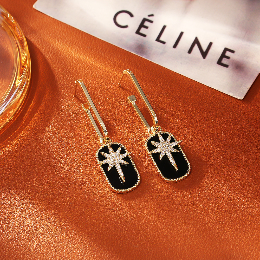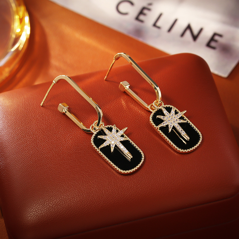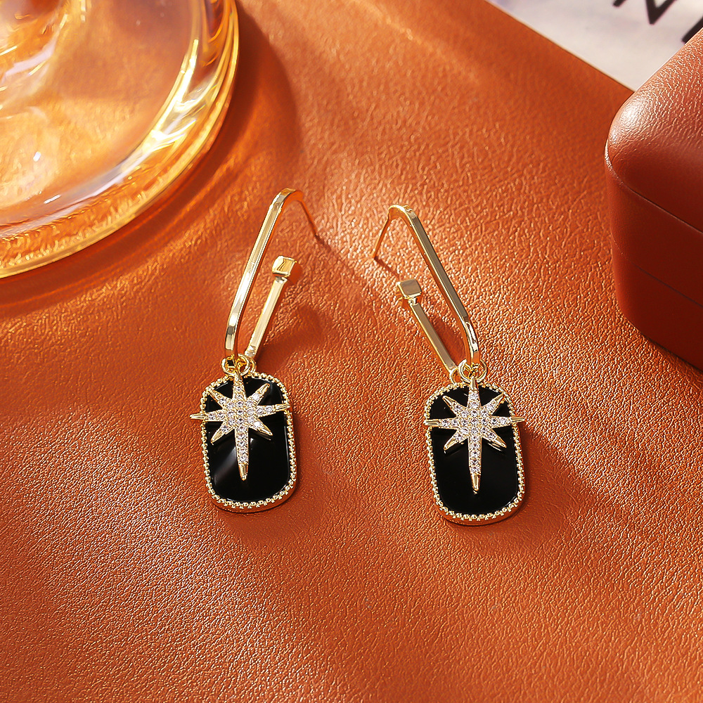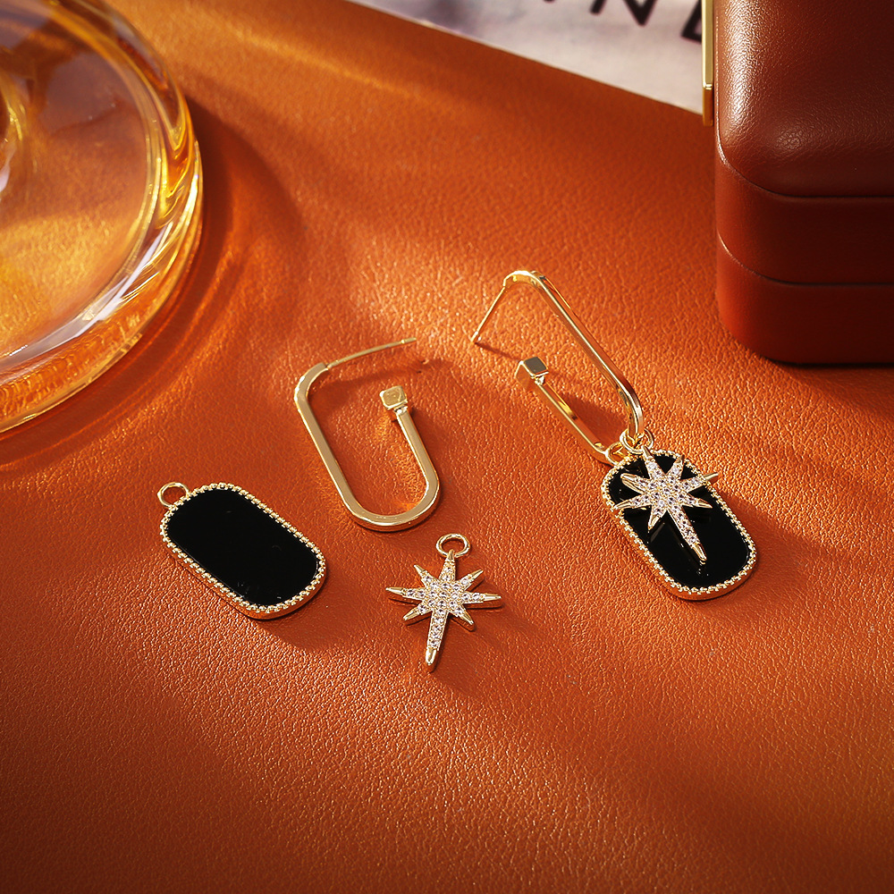 Befestiger Zirkonia Messing Ohrring, Acht Point Star, plattiert, Micro pave Zirkonia, keine, 18x21x3mm, verkauft von Paar