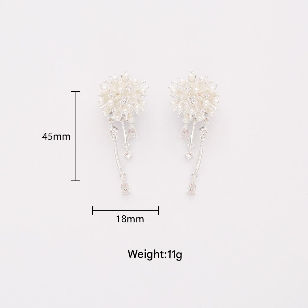 Befestiger Zirkonia Messing Ohrring, mit kubischer Zirkonia & Kunststoff Perlen, plattiert, Modeschmuck & für Frau, Silberfarbe, verkauft von Paar