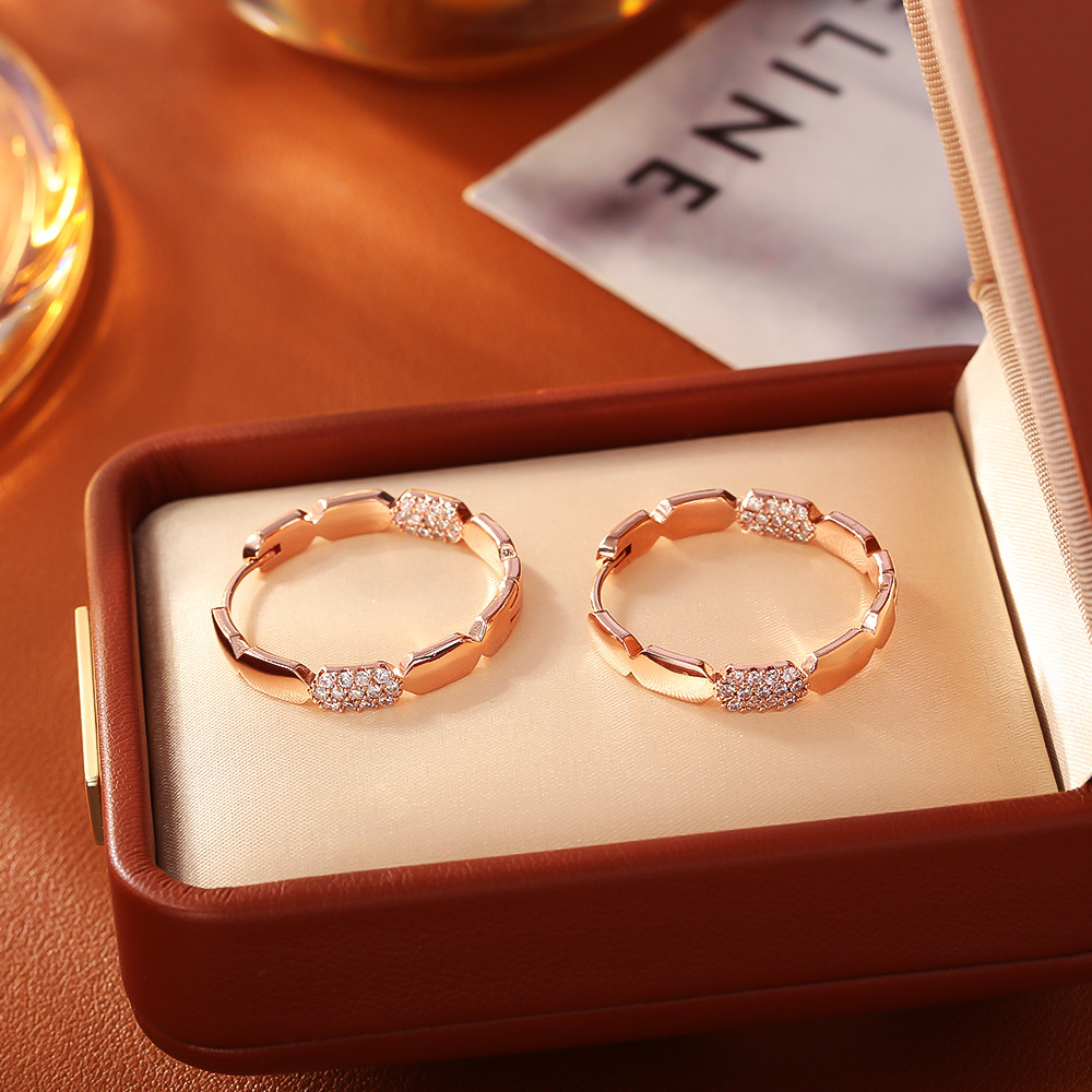 Befestiger Zirkonia Messing Ohrring, Rósegold-Farbe plattiert, Micro pave Zirkonia, 17x13mm, verkauft von Paar