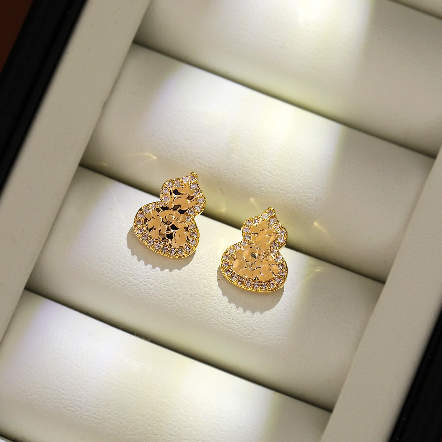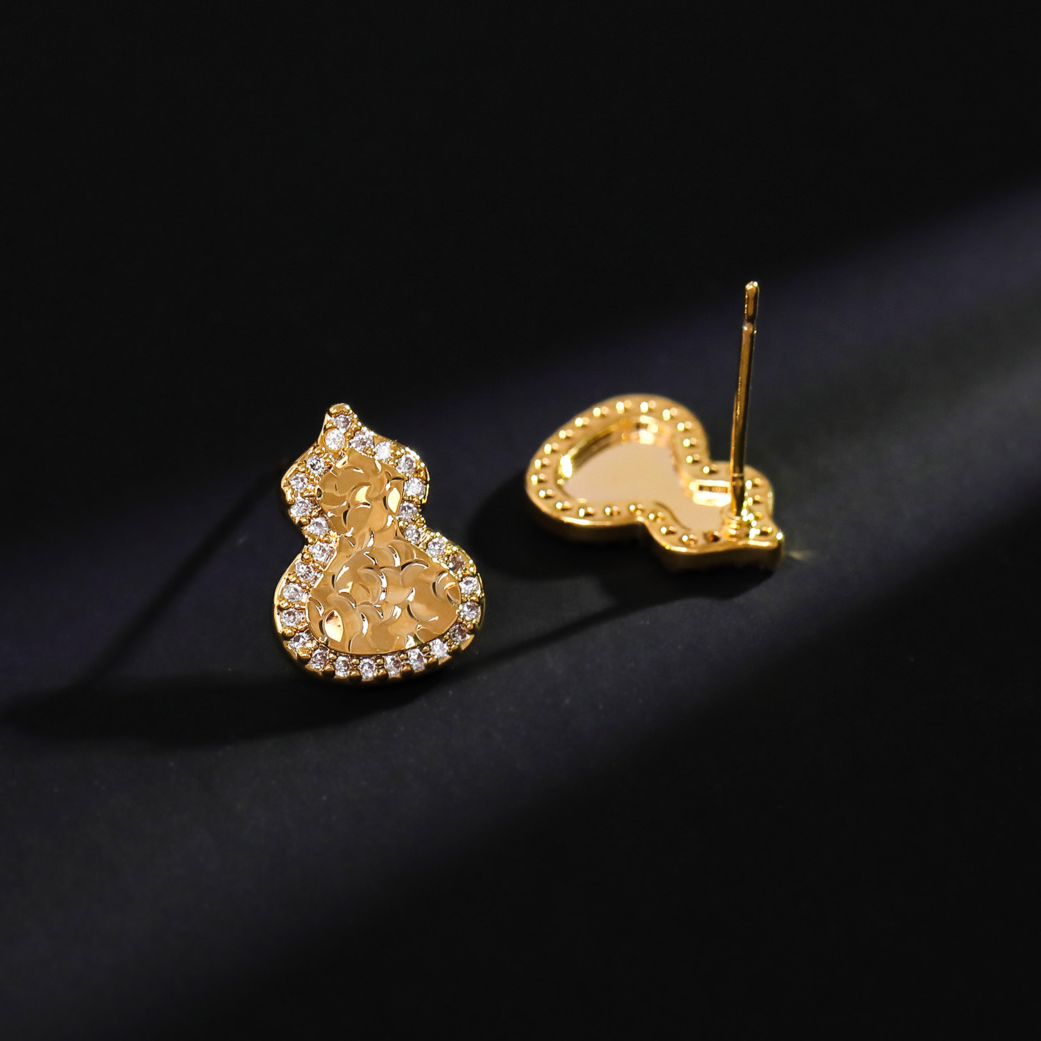 Befestiger Zirkonia Messing Ohrring, Kalebasse, 18K vergoldet, Modeschmuck & Micro pave Zirkonia & für Frau, 33x6mm, verkauft von Paar