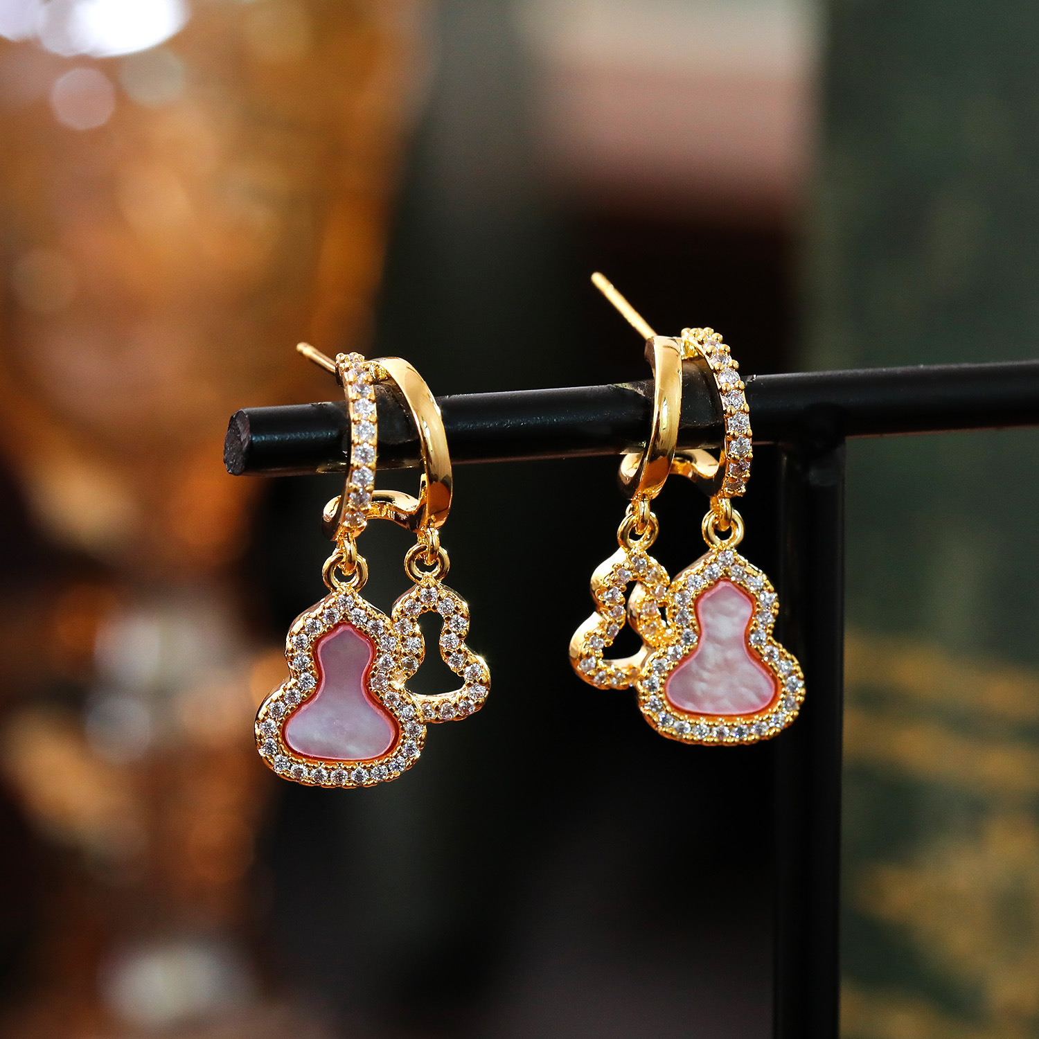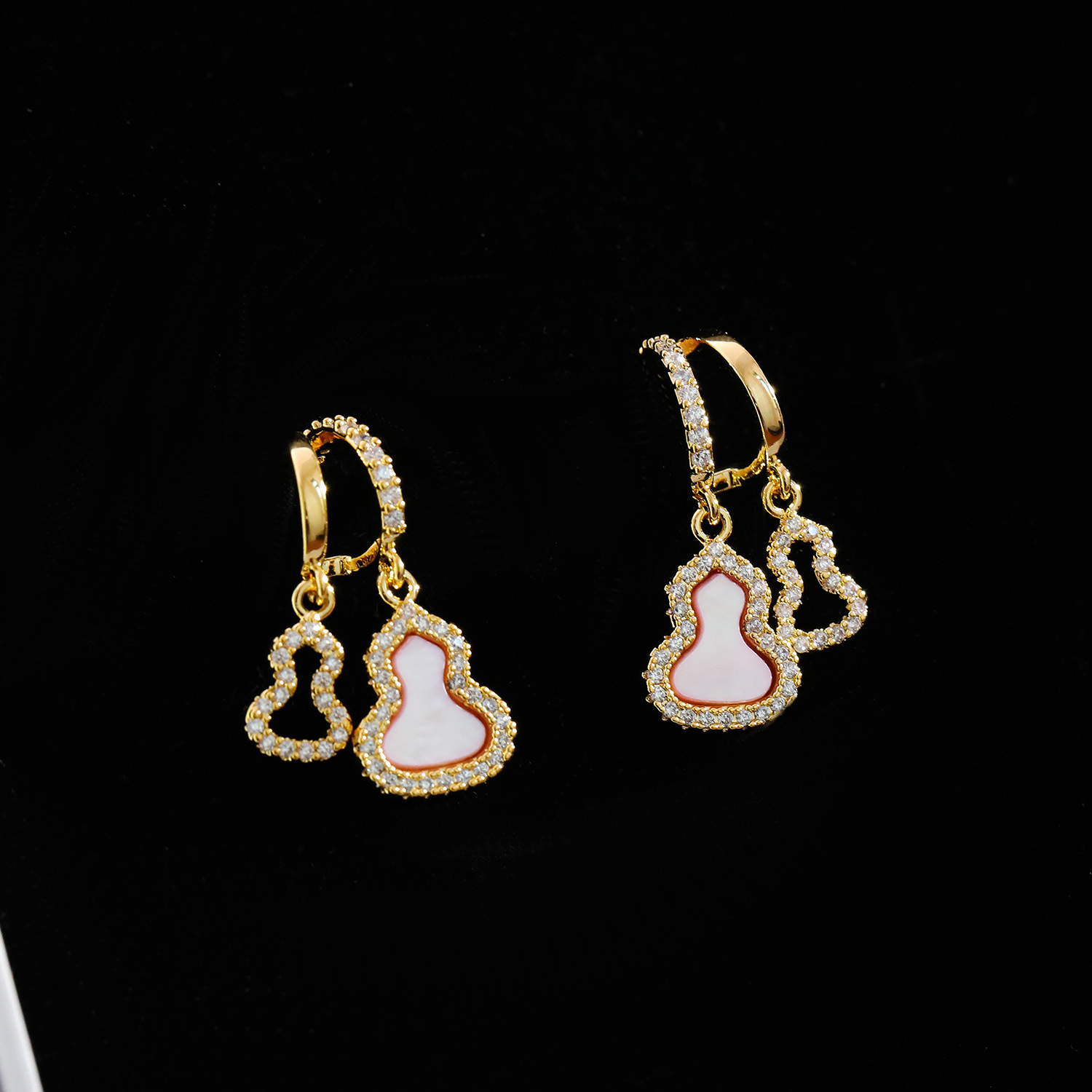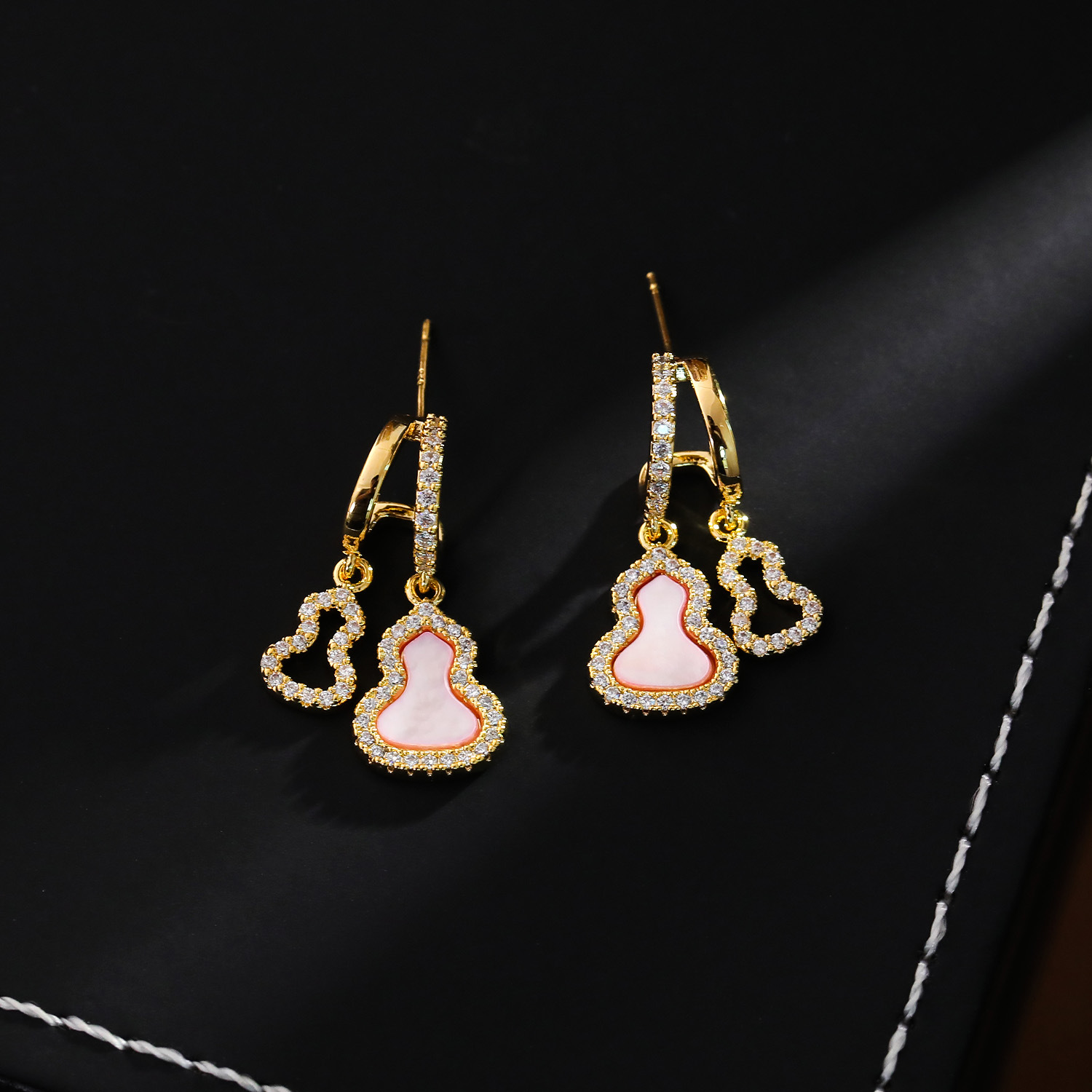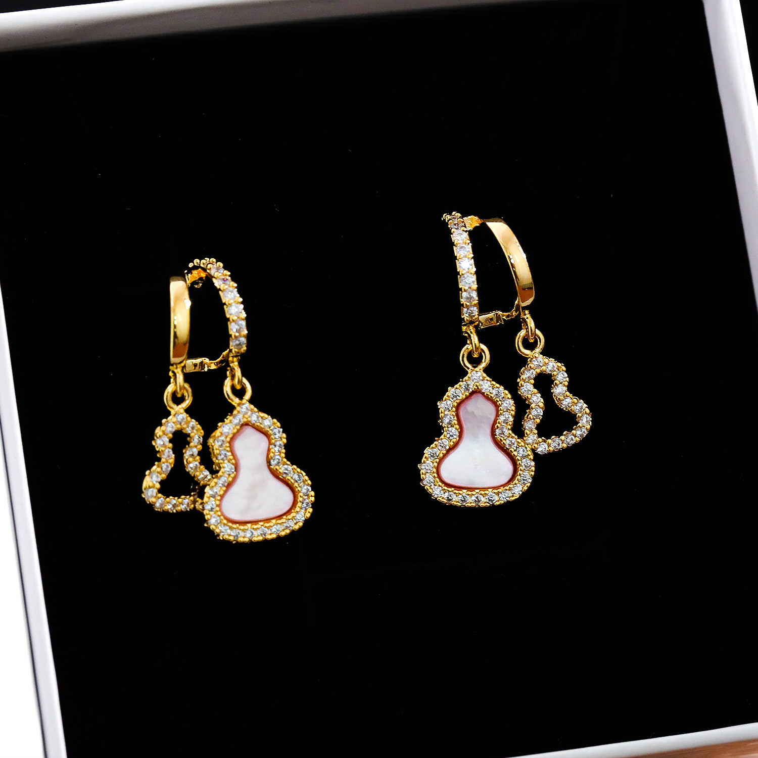 Befestiger Zirkonia Messing Ohrring, mit Muschel, Kalebasse, 18K vergoldet, Modeschmuck & Micro pave Zirkonia & für Frau, 23x8mm, verkauft von Paar