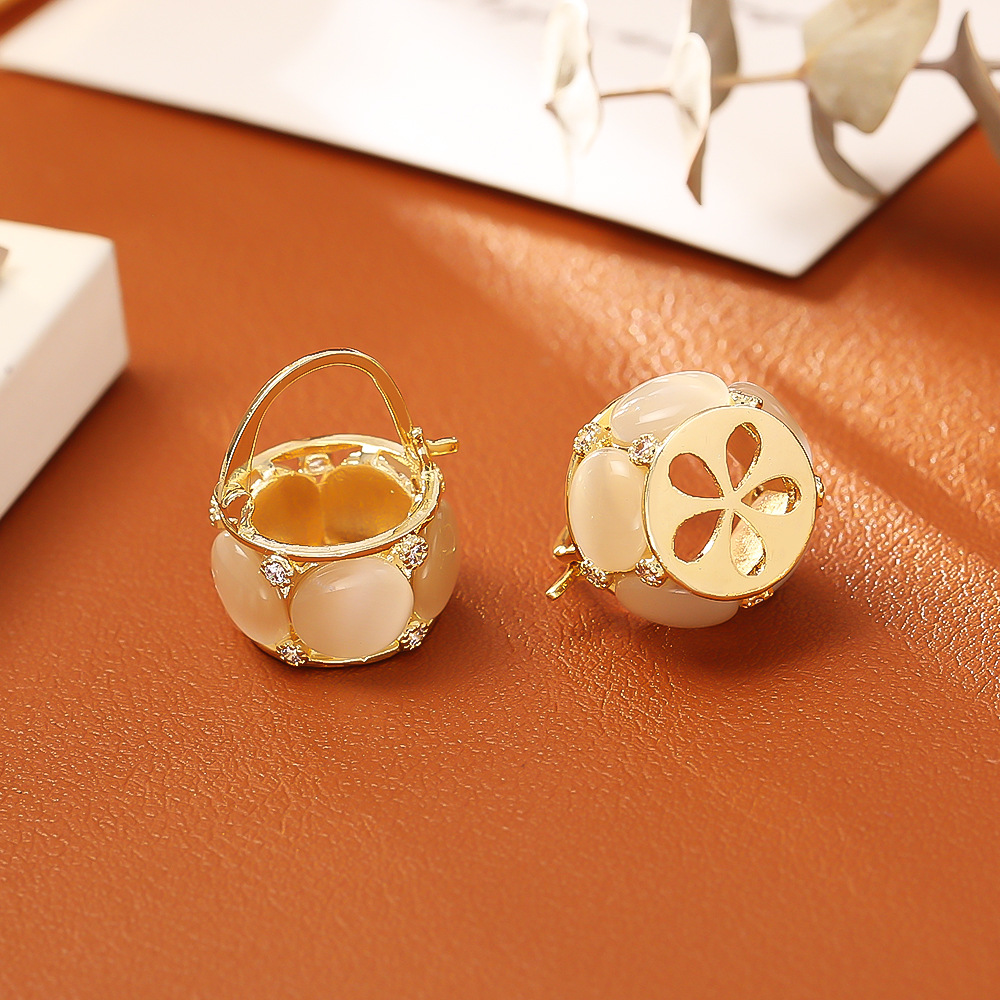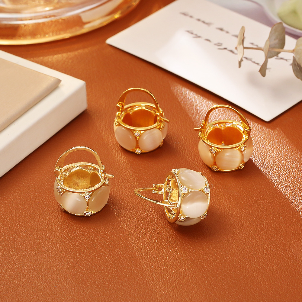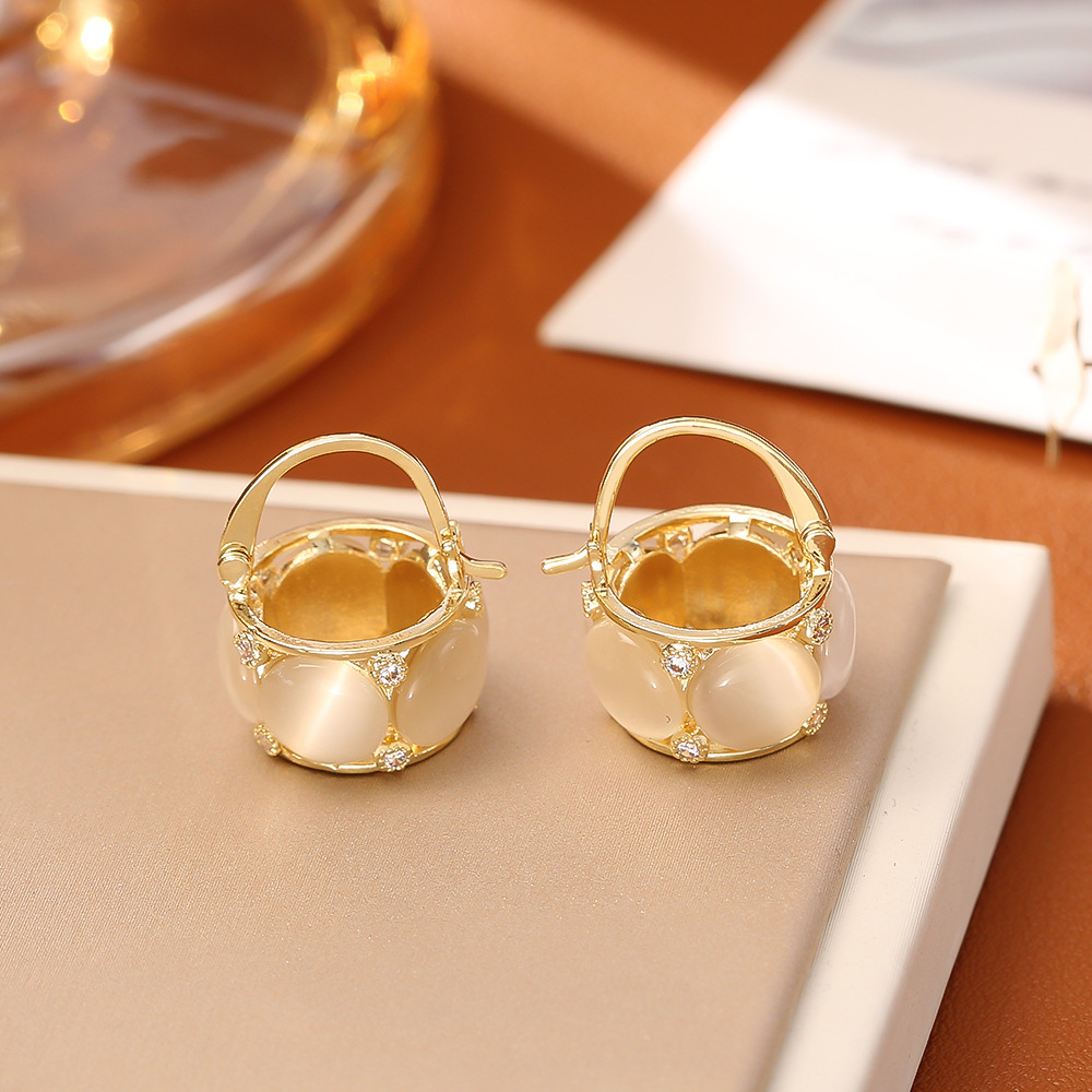 24K gold-plated cat's eye stone earrings