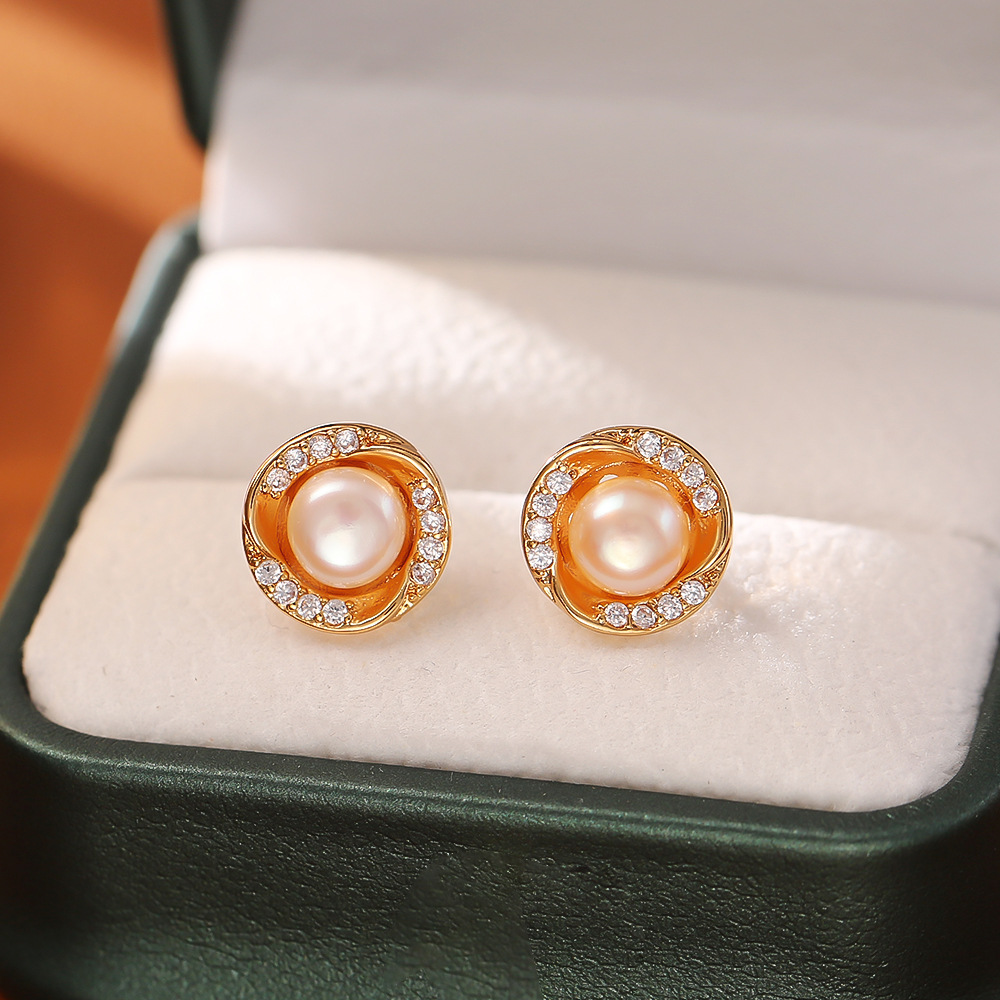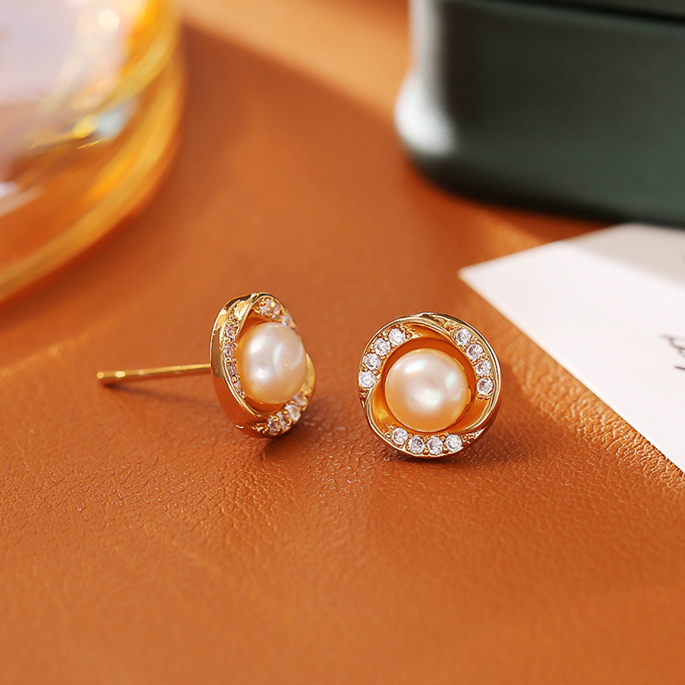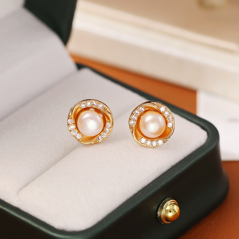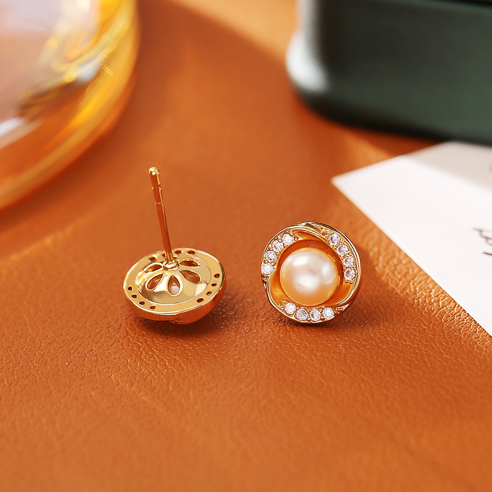 Befestiger Zirkonia Messing Ohrring, mit Natürliche kultivierte Süßwasserperlen, vergoldet, Modeschmuck & Micro pave Zirkonia & für Frau, verkauft von Paar