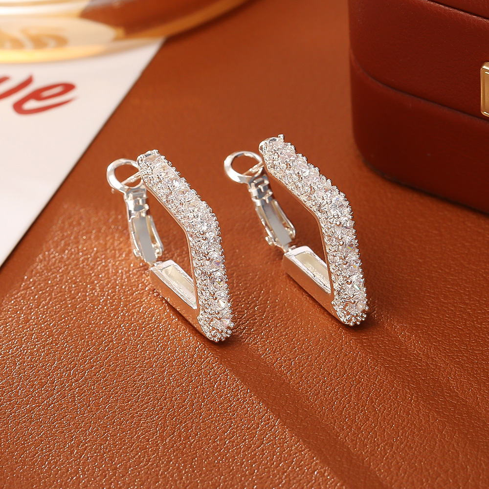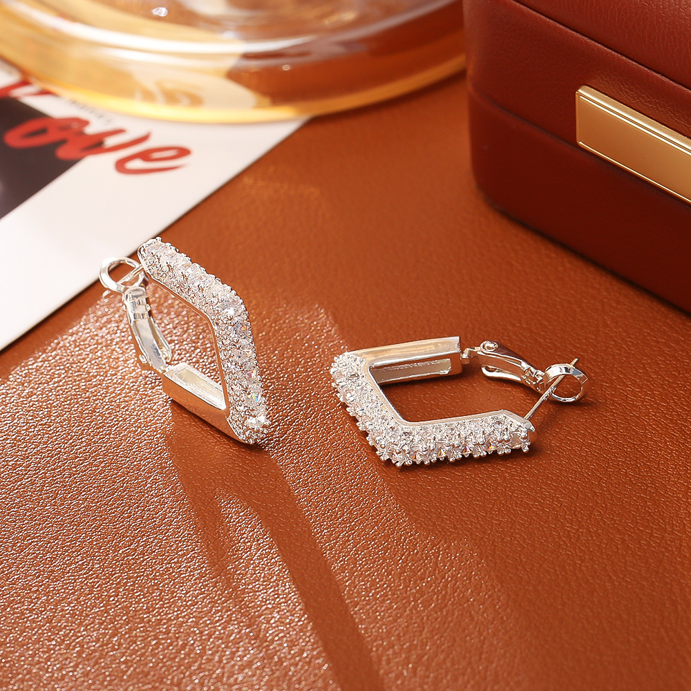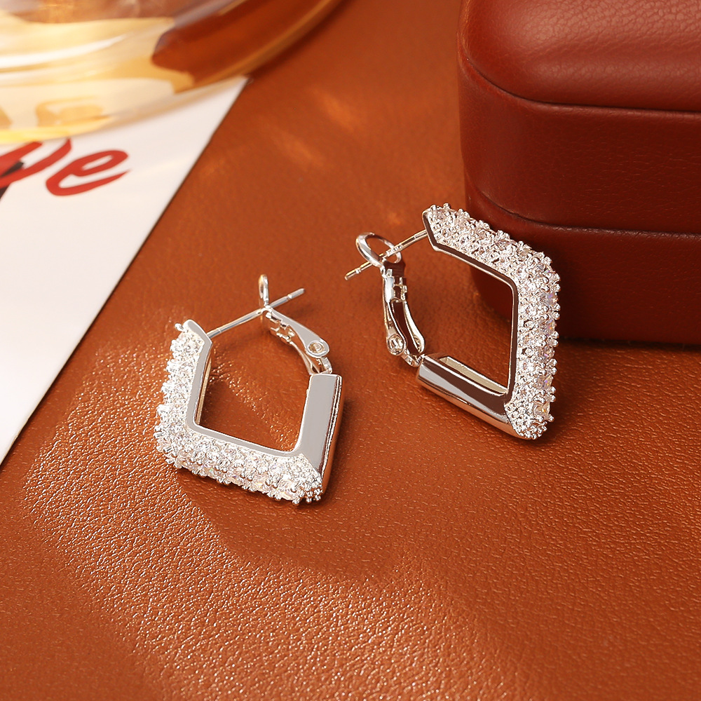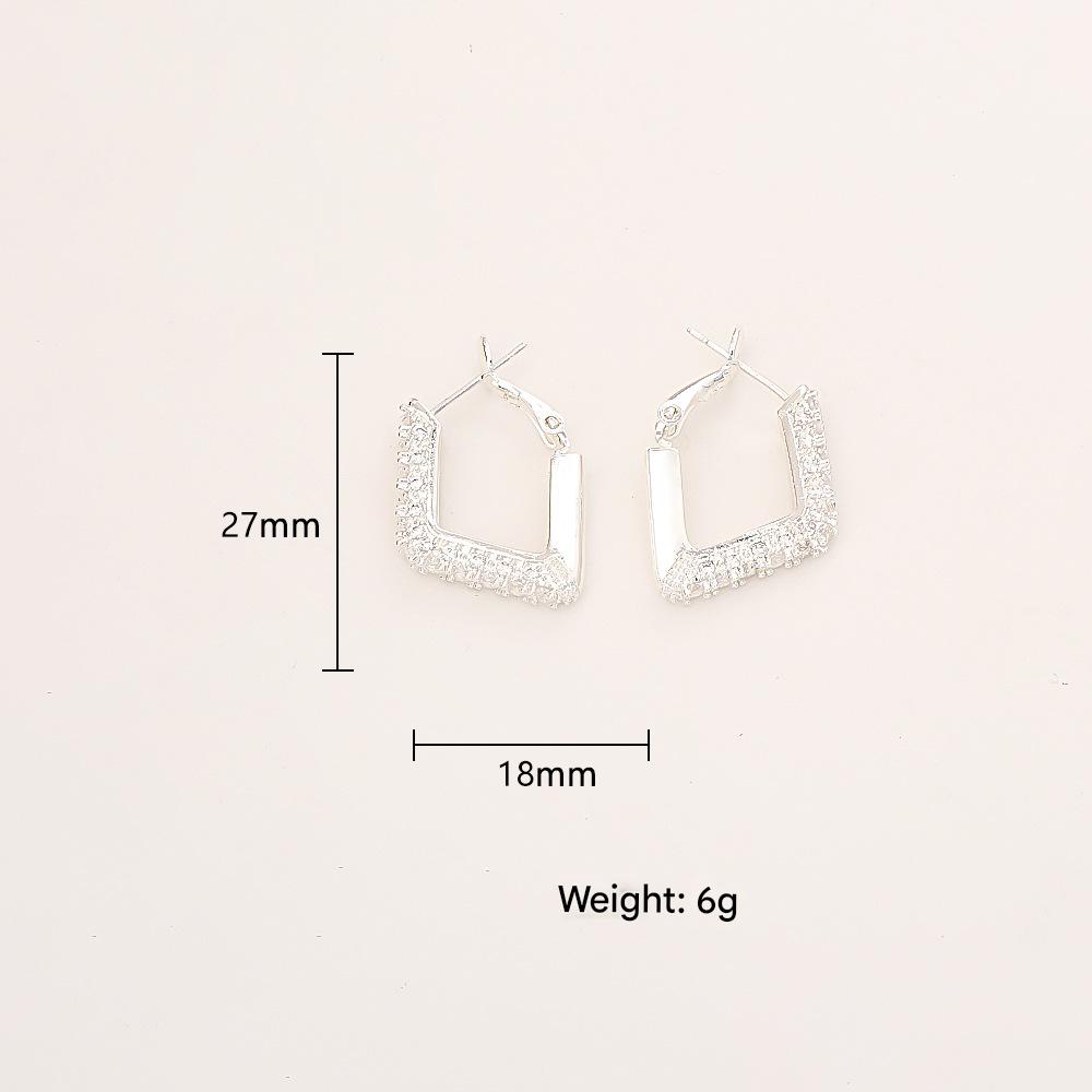 Befestiger Zirkonia Messing Ohrring, Rhombus, plattiert, Modeschmuck & Micro pave Zirkonia & für Frau, Silberfarbe, verkauft von Paar