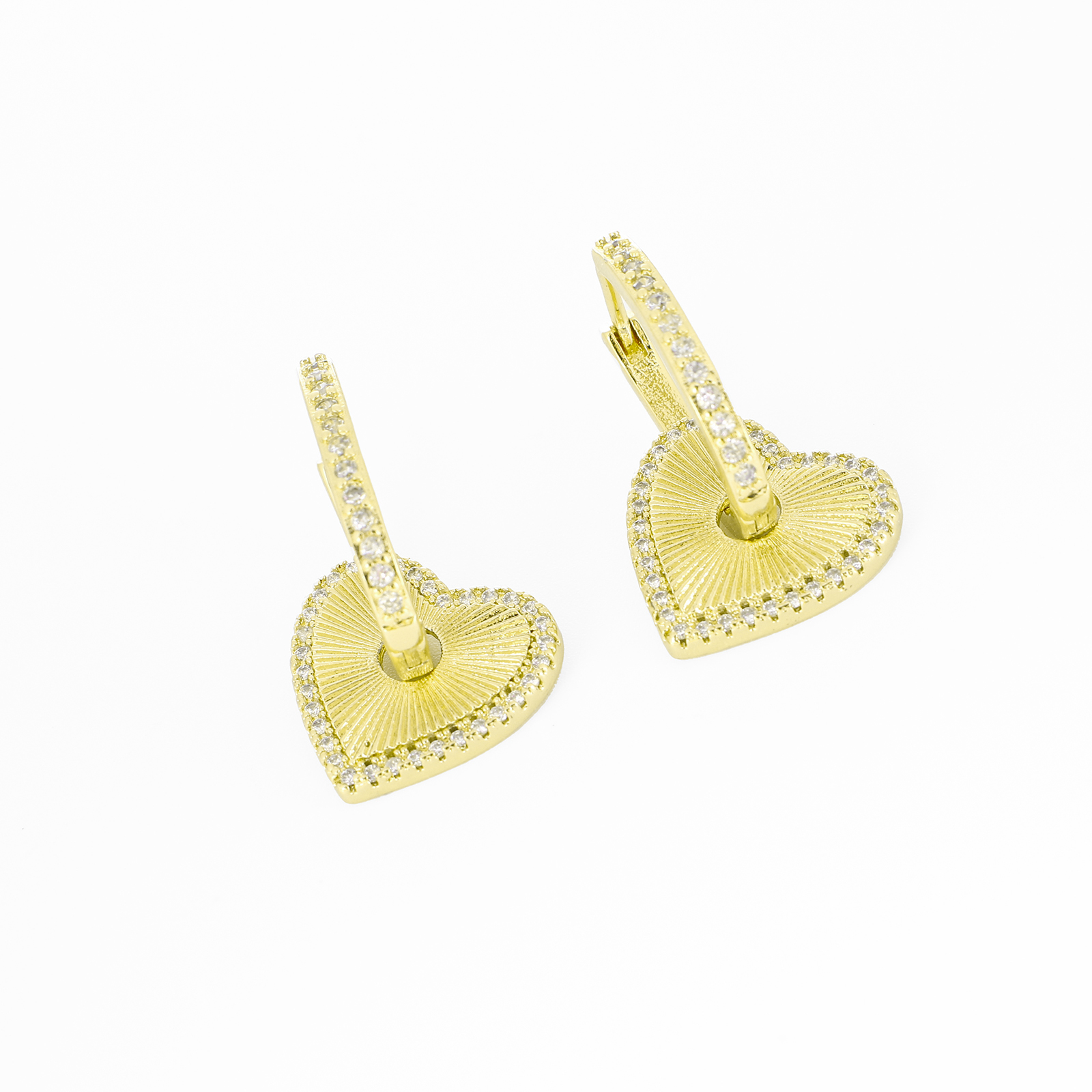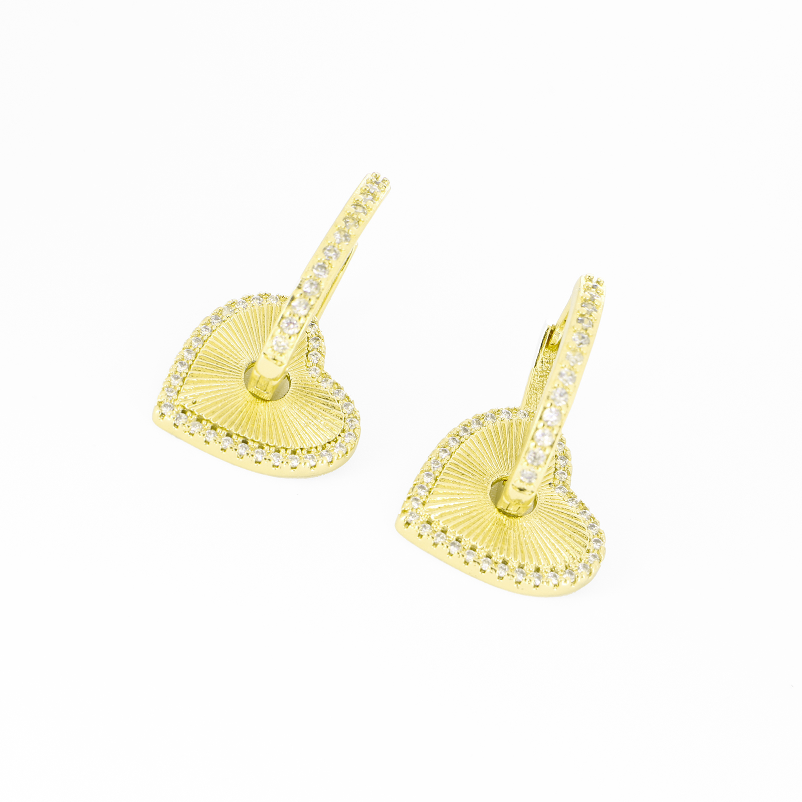 Befestiger Zirkonia Messing Ohrring, Herz, goldfarben plattiert, Micro pave Zirkonia & für Frau, verkauft von Paar