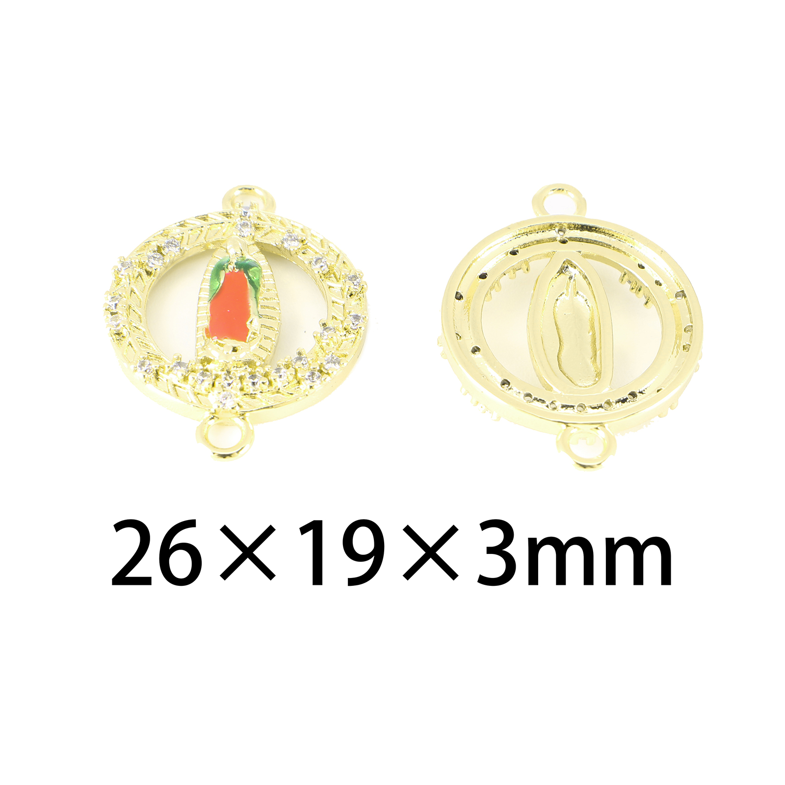 Befestiger Zirkonia Messing Schmuckverbinder, goldfarben plattiert, DIY & Micro pave Zirkonia & Emaille & hohl, 26x19x3mm, verkauft von PC