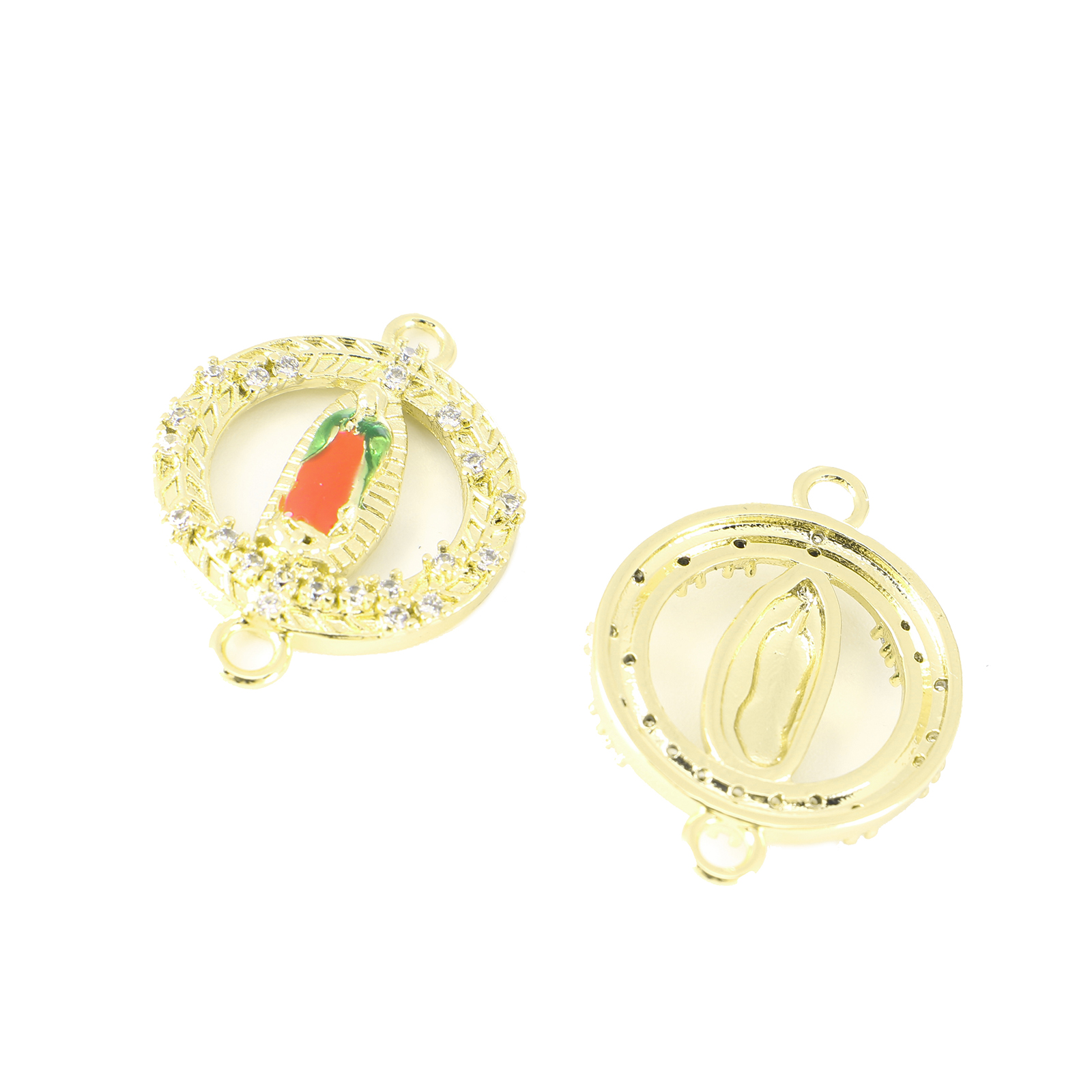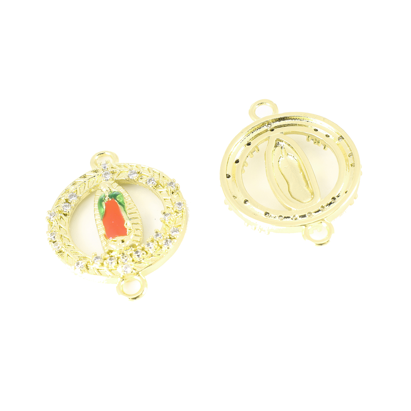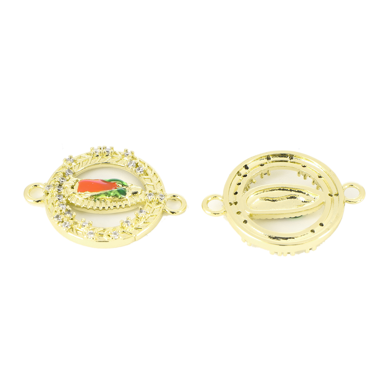 Befestiger Zirkonia Messing Schmuckverbinder, flache Runde, goldfarben plattiert, verschiedene Stile für Wahl & Micro pave Zirkonia & Emaille & 1/1-Schleife, 20.5x15x1.5mm, Bohrung:ca. 1.5mm, verkauft von PC