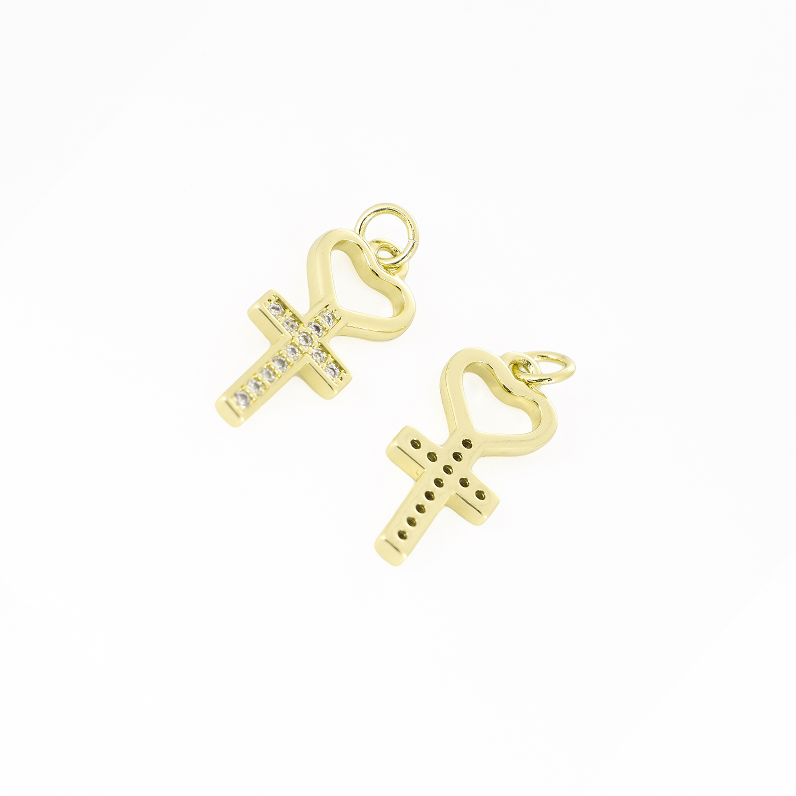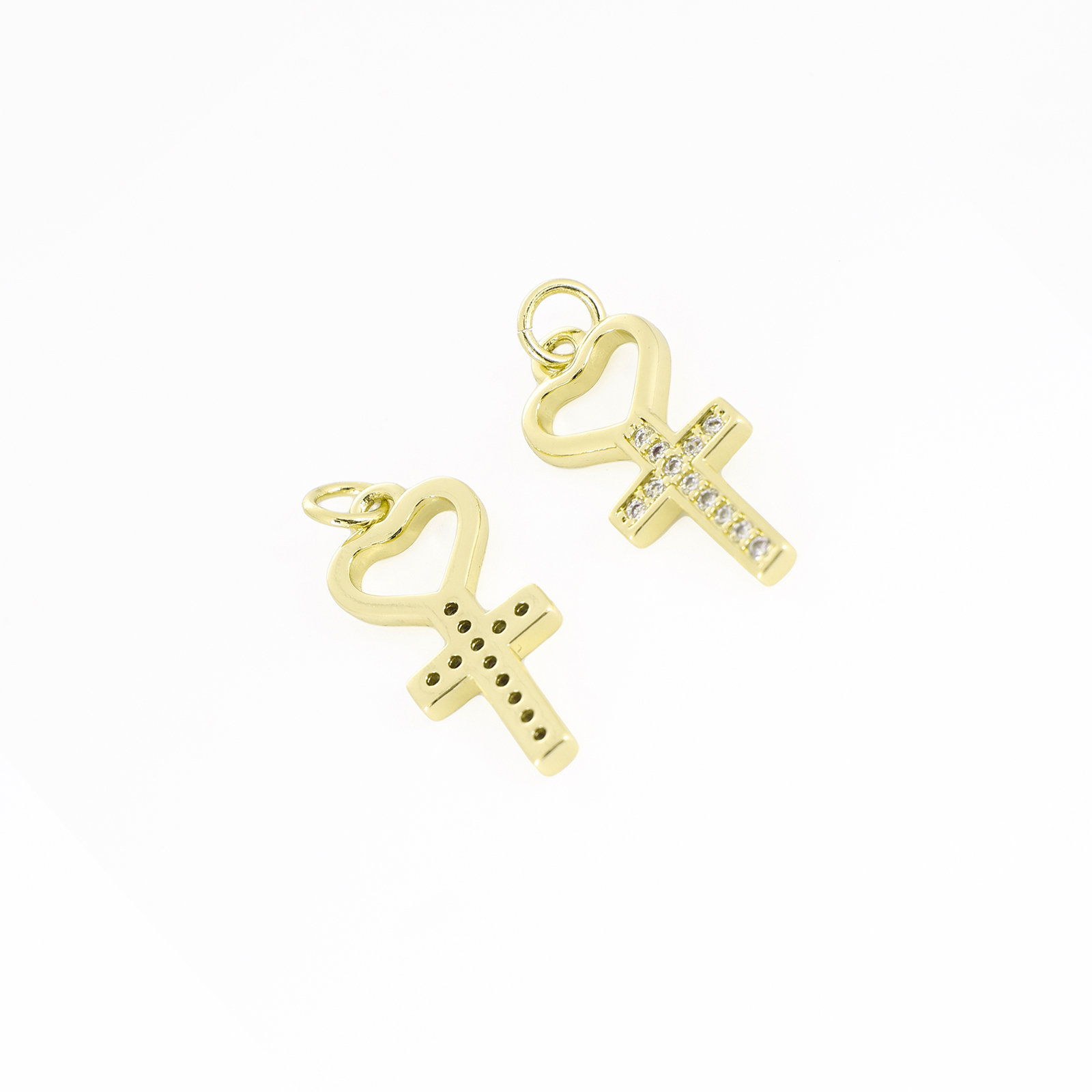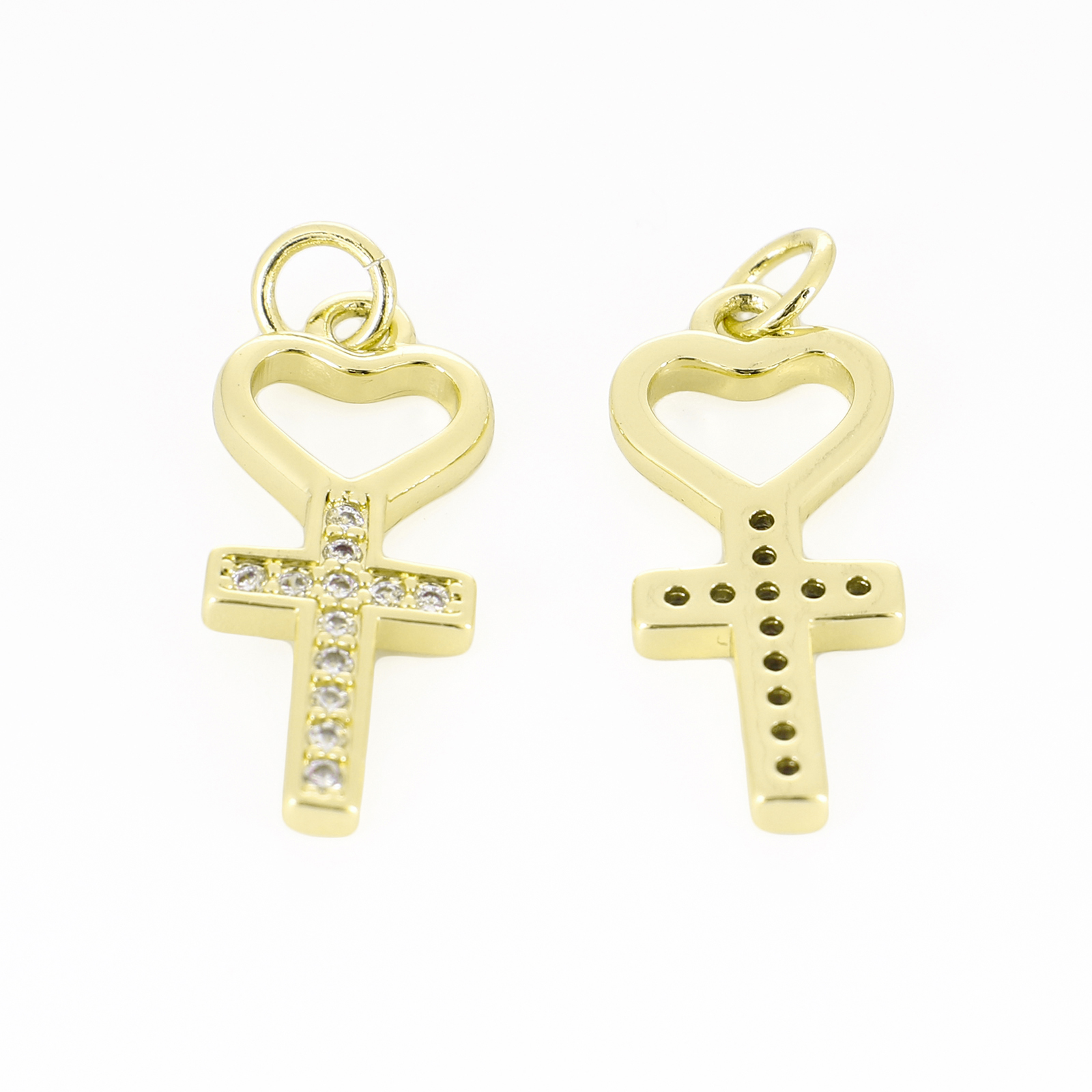 Befestigter Zirkonia Messing Anhänger, goldfarben plattiert, Modeschmuck & DIY & böser Blick- Muster & Micro pave Zirkonia & für Frau, zwei verschiedenfarbige, 14.5x10x2.5mm, Bohrung:ca. 3mm, verkauft von PC