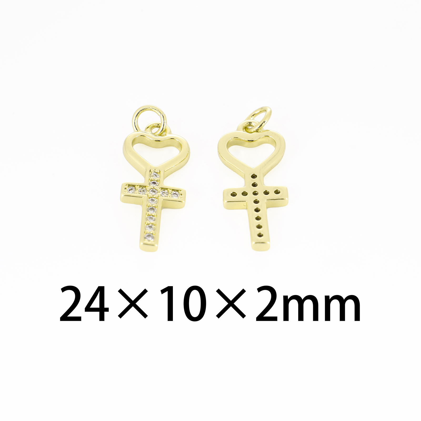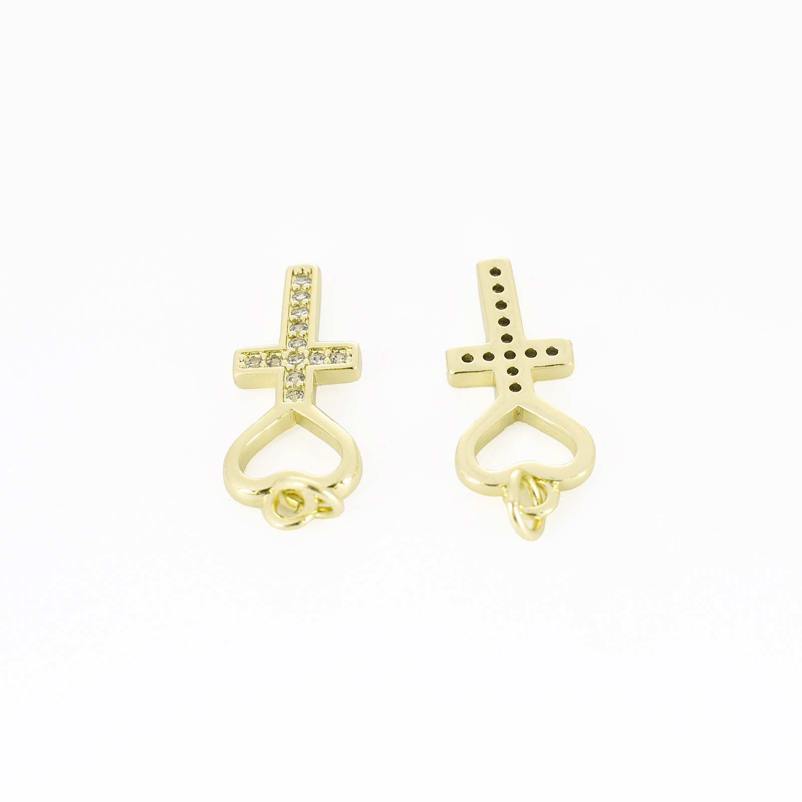 Befestigter Zirkonia Messing Anhänger, Kreuz, goldfarben plattiert, Micro pave Zirkonia, farbenfroh, 18x29.5x3mm, Bohrung:ca. 3mm, verkauft von PC