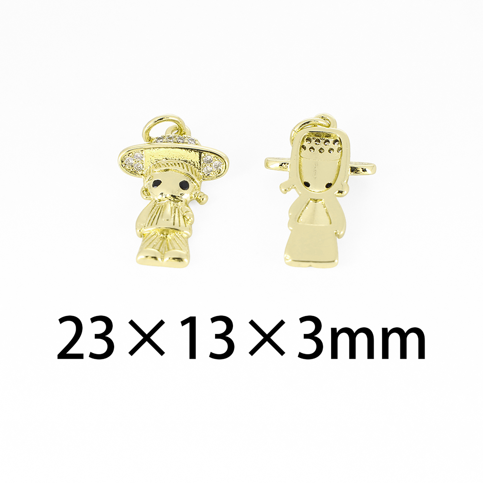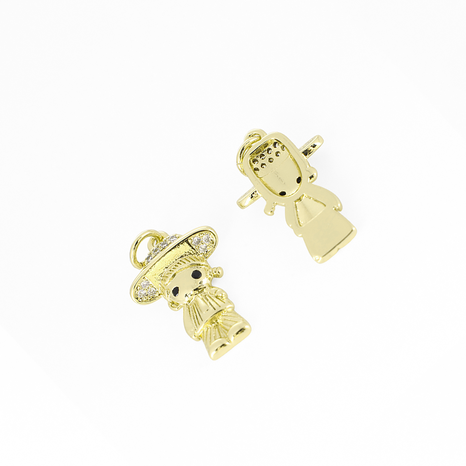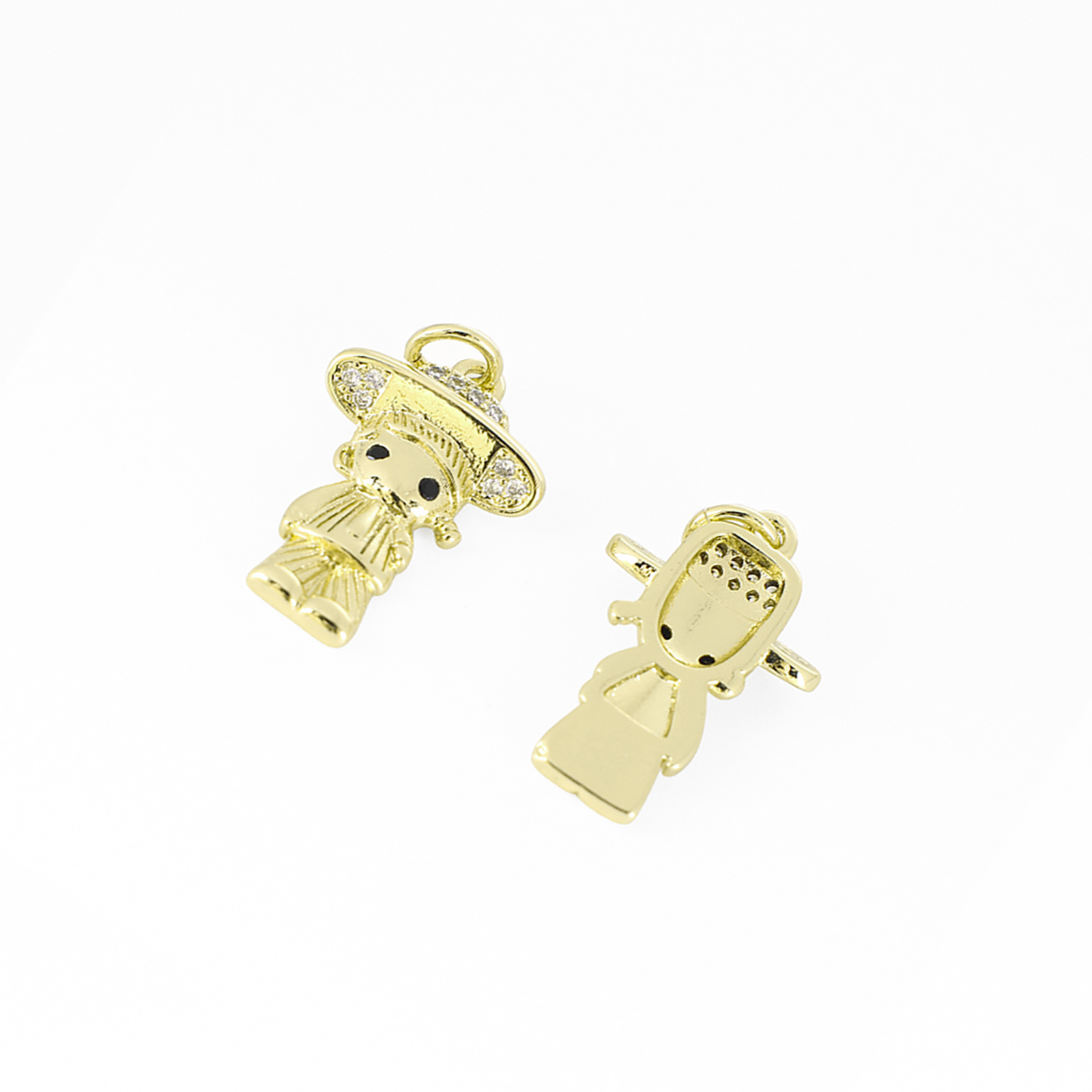 Befestigter Zirkonia Messing Anhänger, Mädchen, goldfarben plattiert, Micro pave Zirkonia, 10x12x3mm, Bohrung:ca. 4mm, verkauft von PC