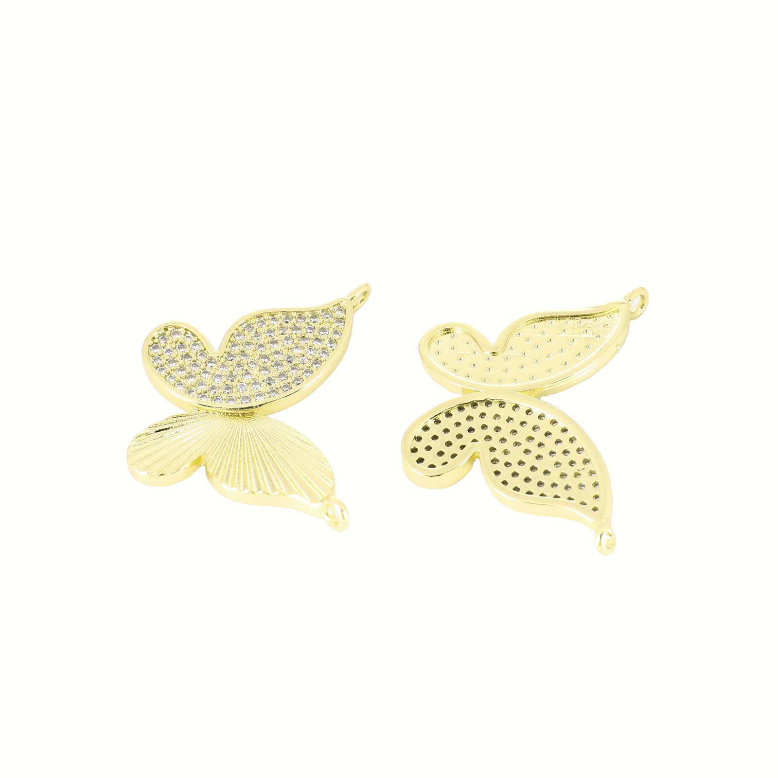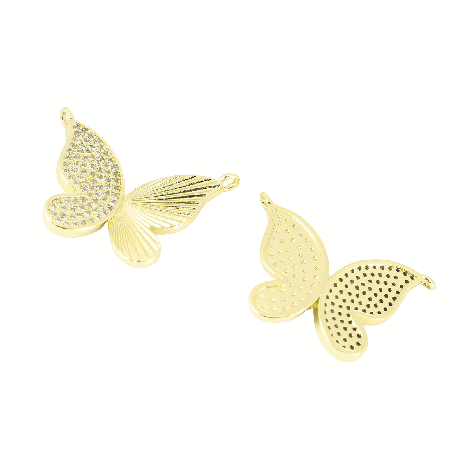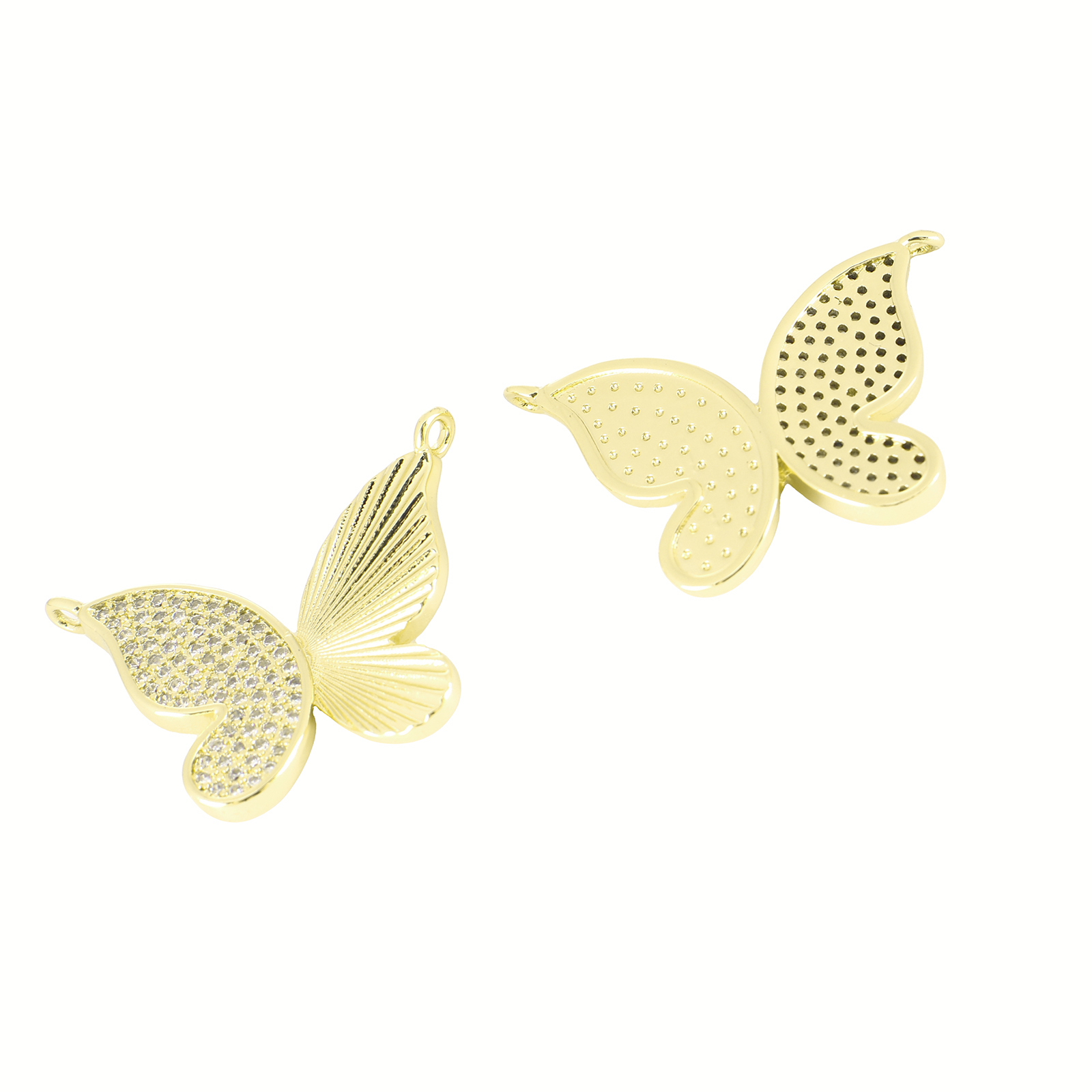 Befestigter Zirkonia Messing Anhänger, Schmetterling, goldfarben plattiert, DIY & Micro pave Zirkonia, 20x30x3mm, verkauft von PC