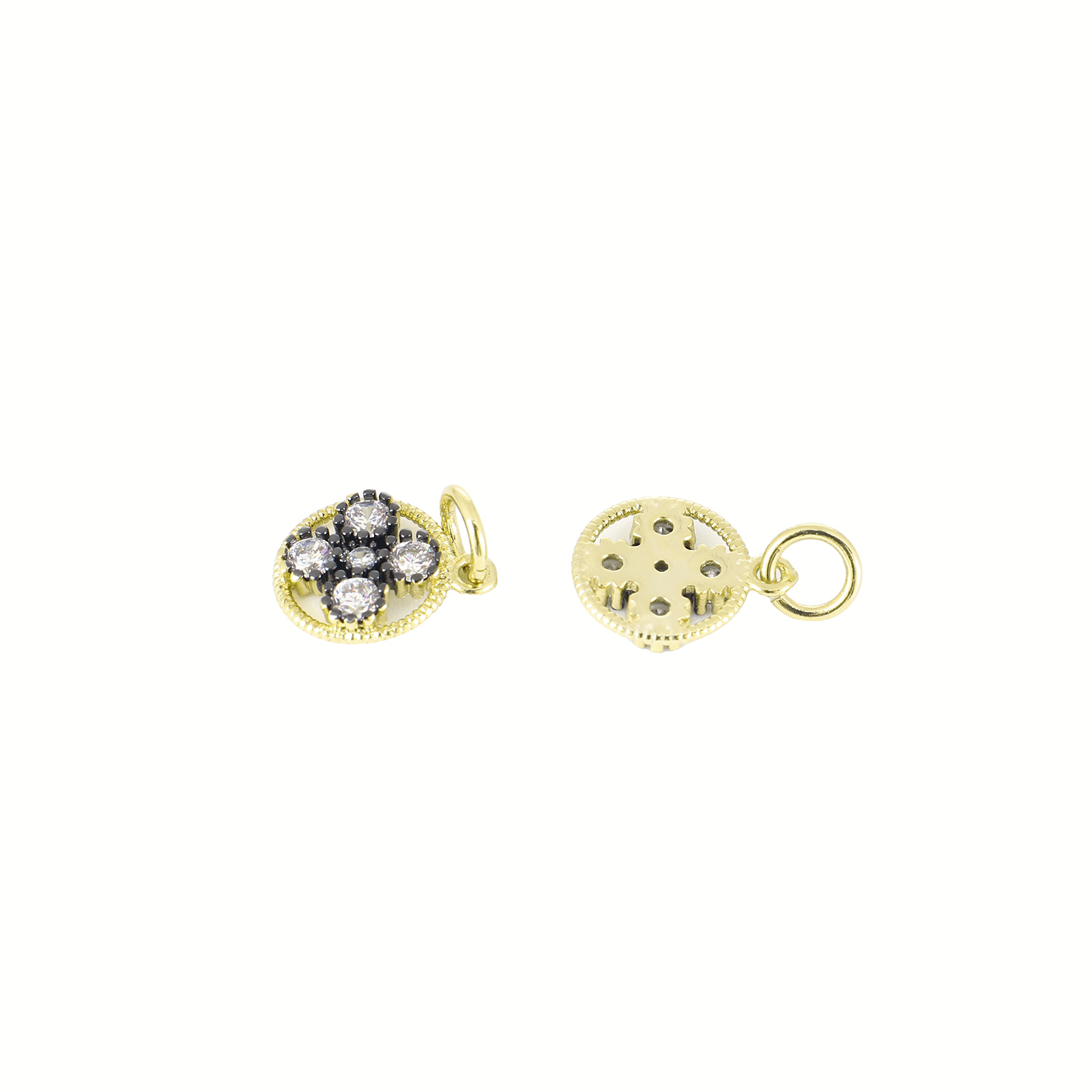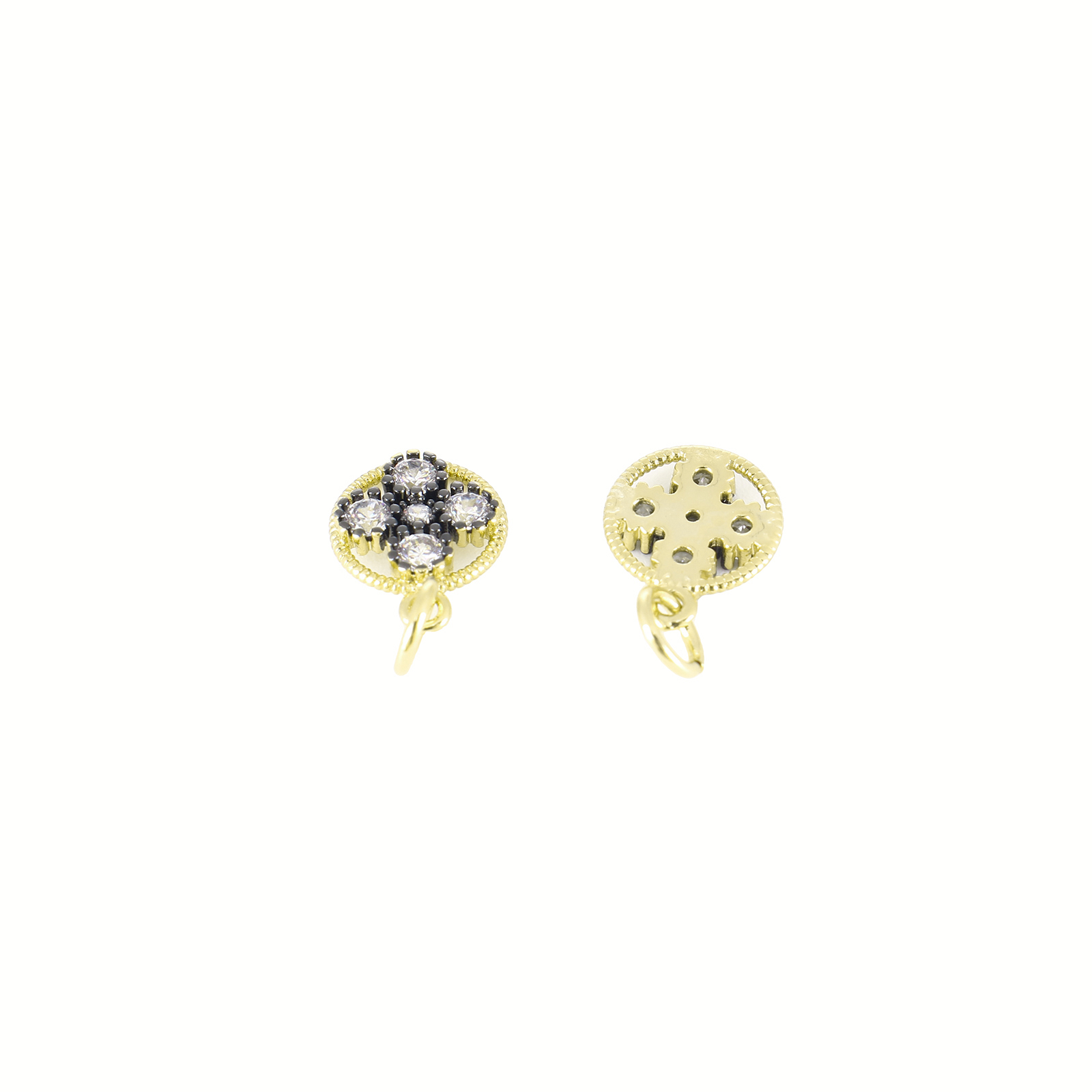 Befestigter Zirkonia Messing Anhänger, rund, goldfarben plattiert, Modeschmuck & DIY & Micro pave Zirkonia & für Frau, goldfarben, 17x19.5x2mm, Bohrung:ca. 3mm, verkauft von PC