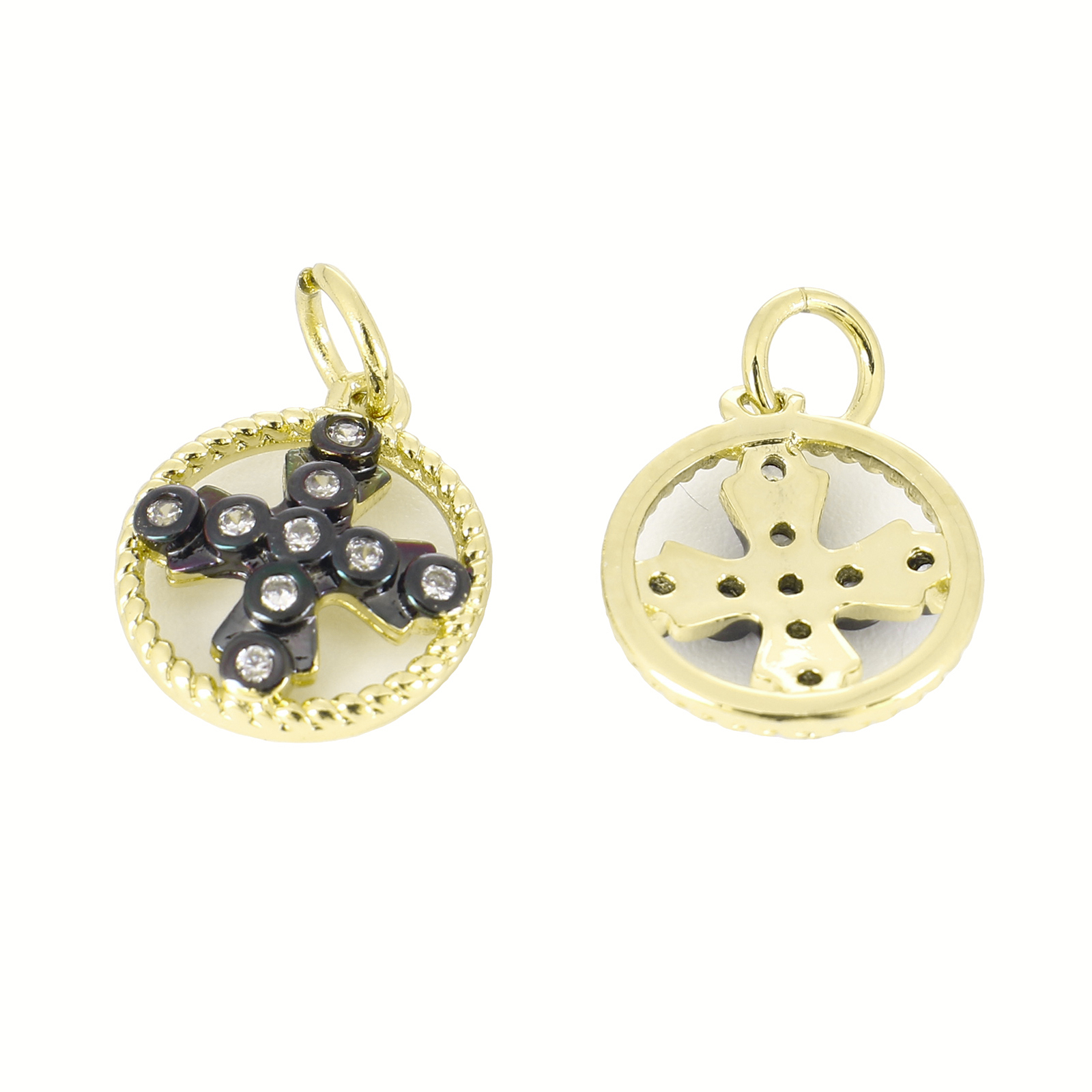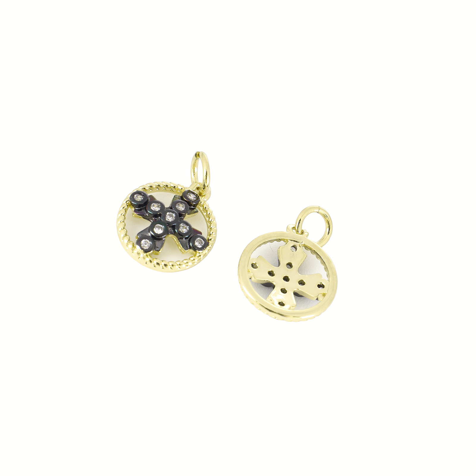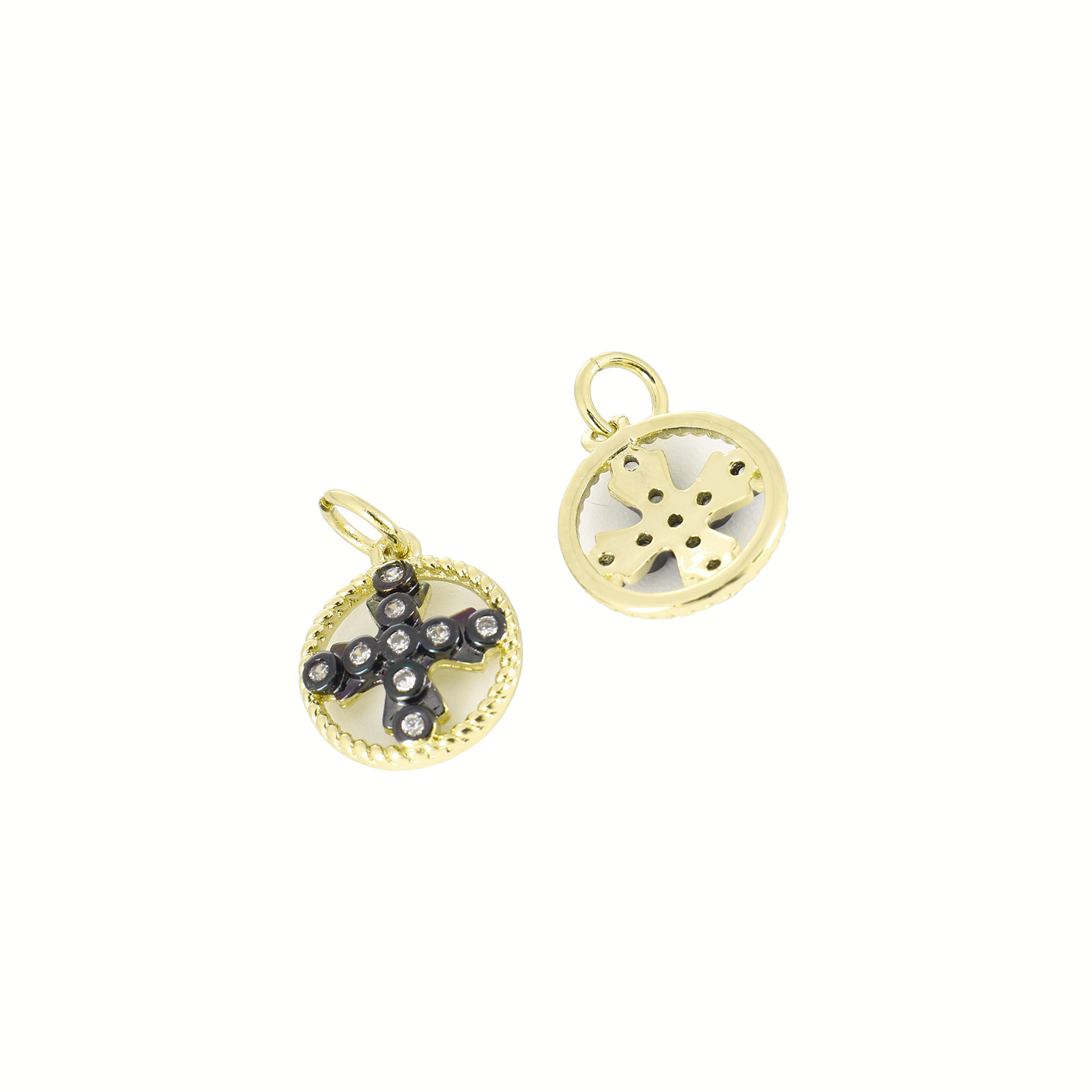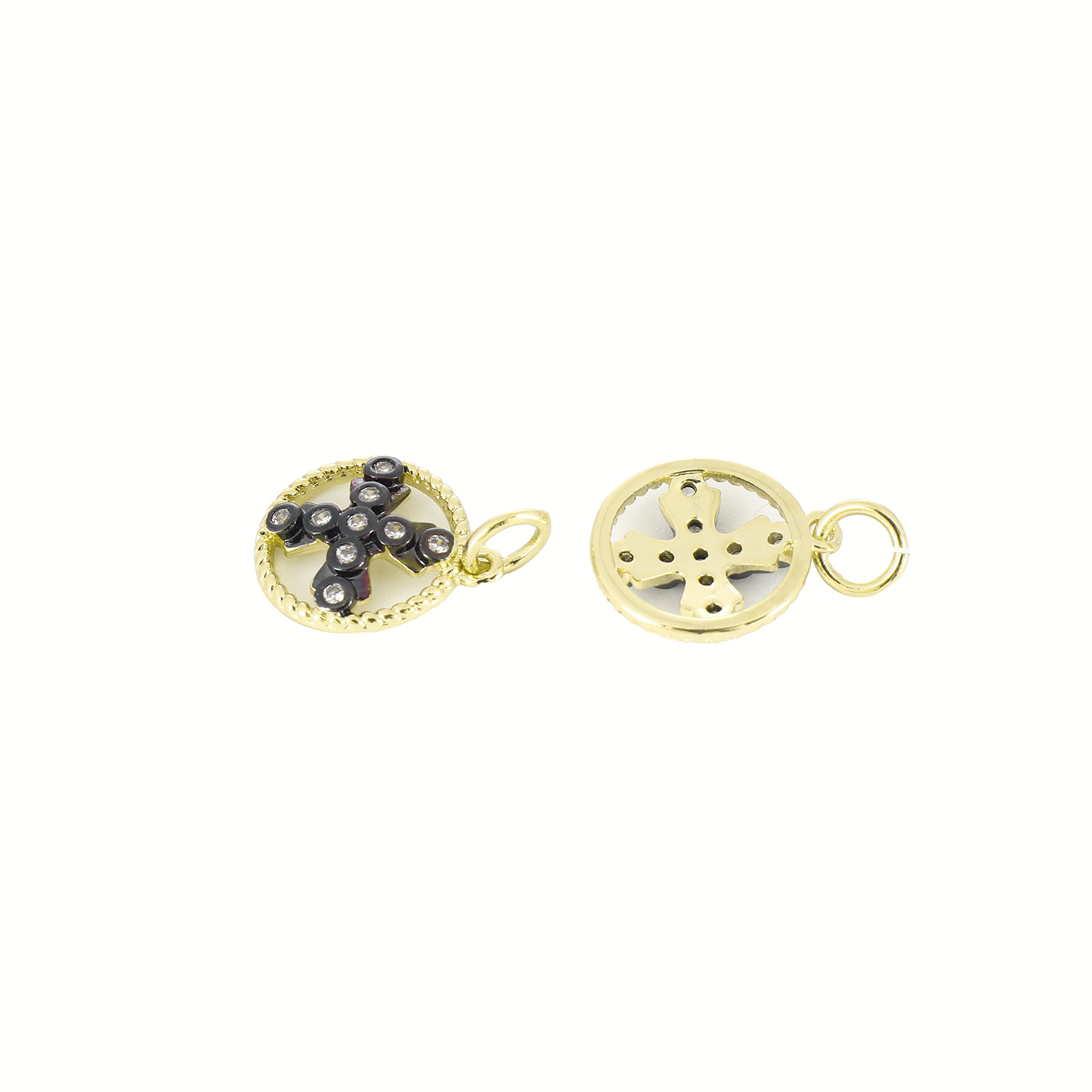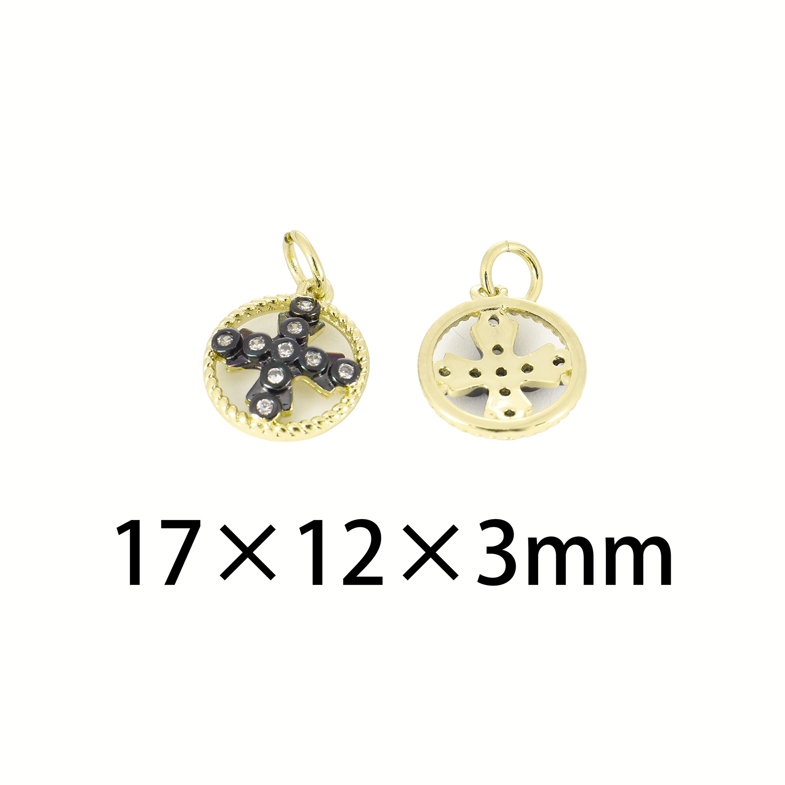 Befestigter Zirkonia Messing Anhänger, rund, goldfarben plattiert, Modeschmuck & DIY & Micro pave Zirkonia & für Frau, goldfarben, 17x19.5x2mm, Bohrung:ca. 3mm, verkauft von PC