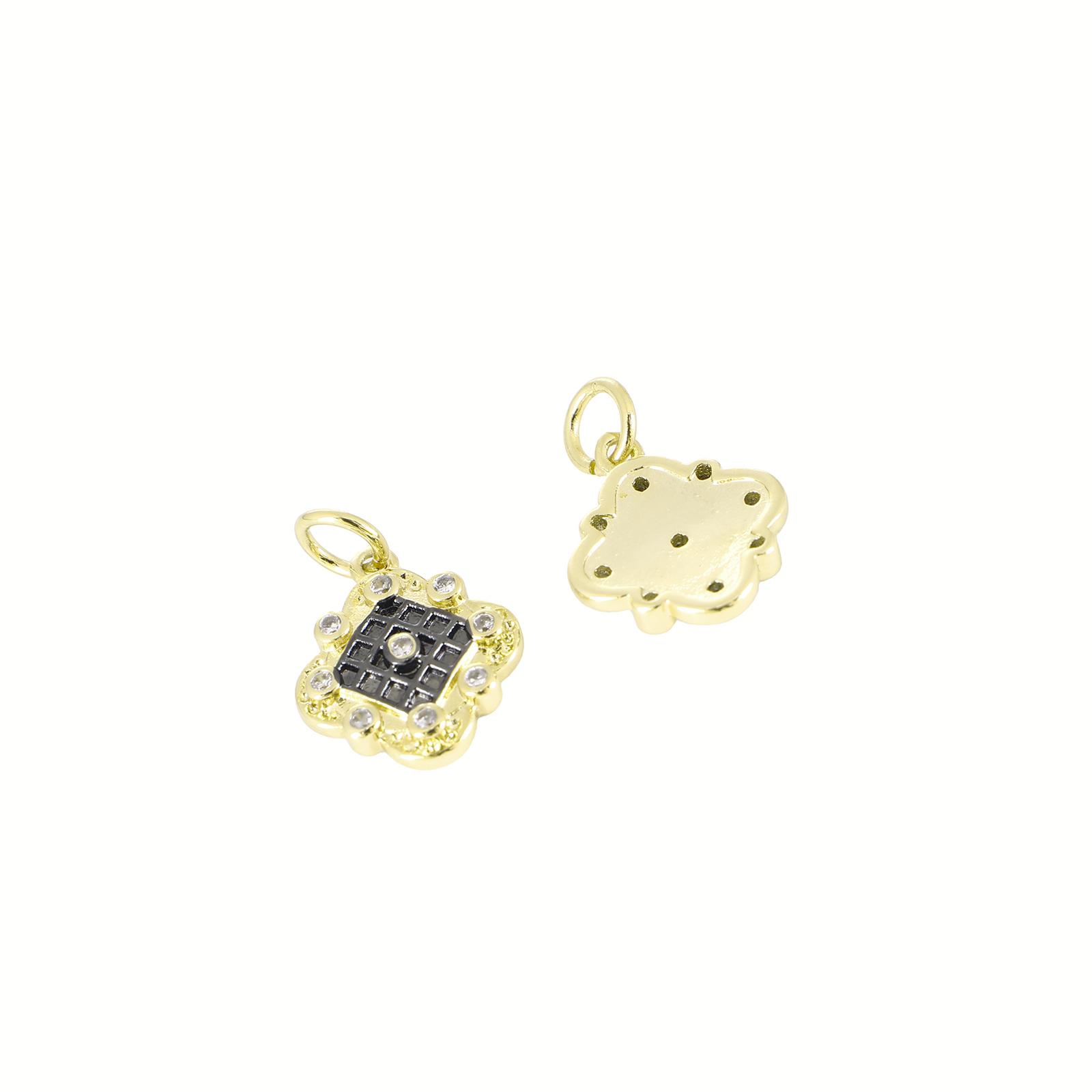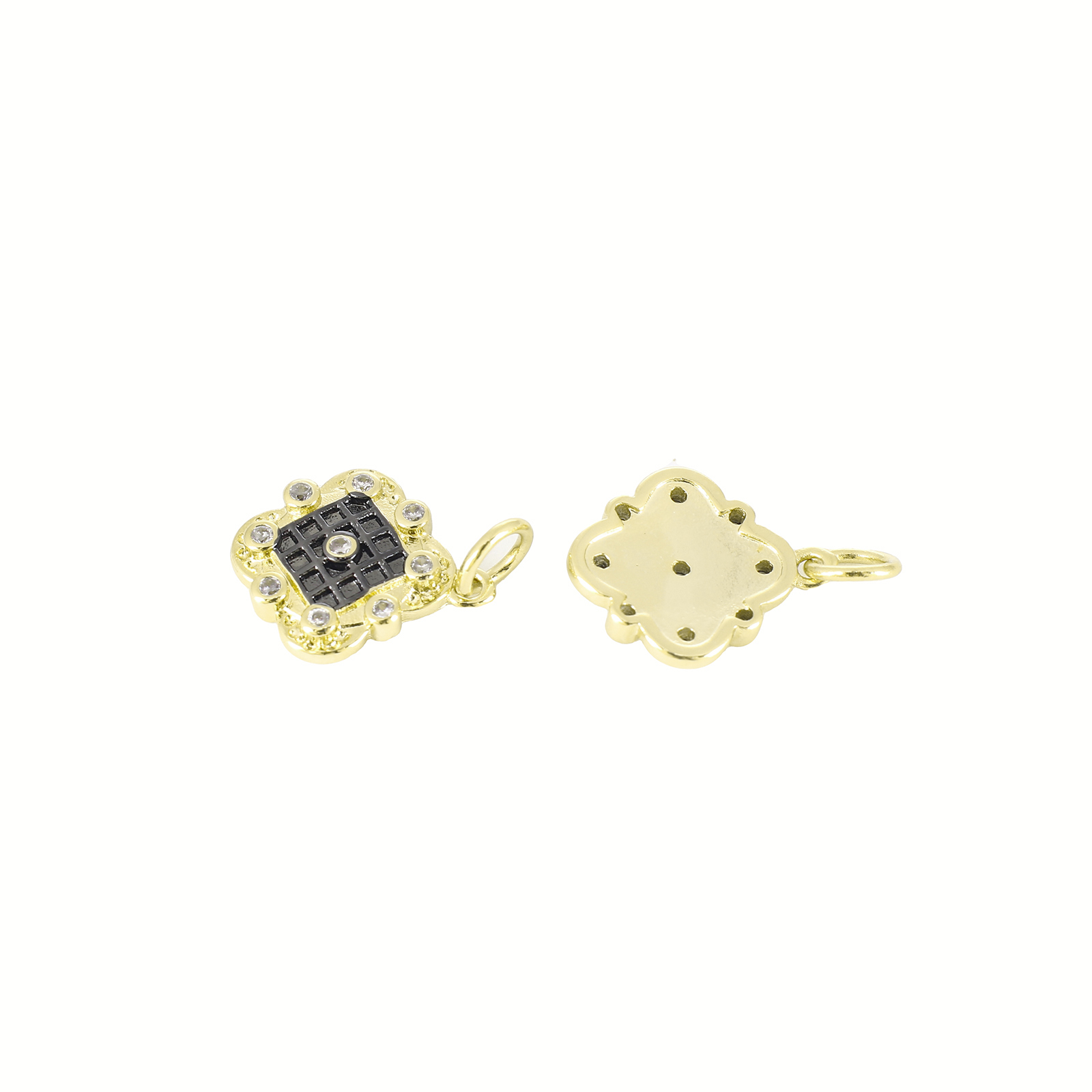 Befestigter Zirkonia Messing Anhänger, rund, goldfarben plattiert, Modeschmuck & DIY & Micro pave Zirkonia & für Frau, goldfarben, 17x19.5x2mm, Bohrung:ca. 3mm, verkauft von PC