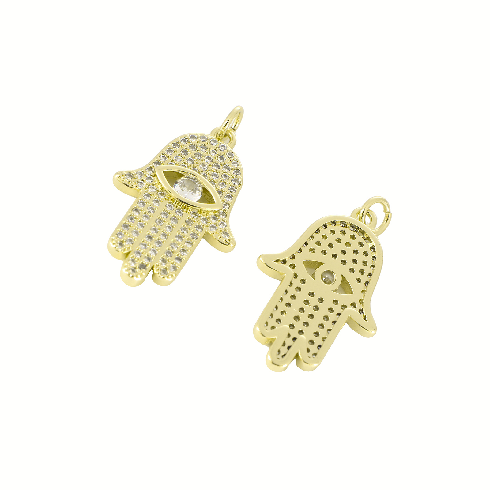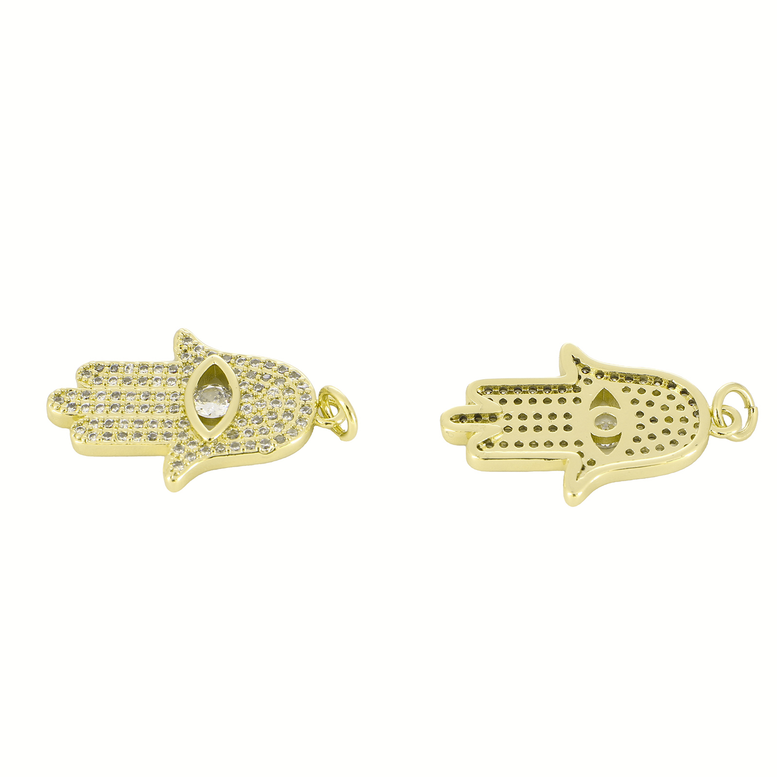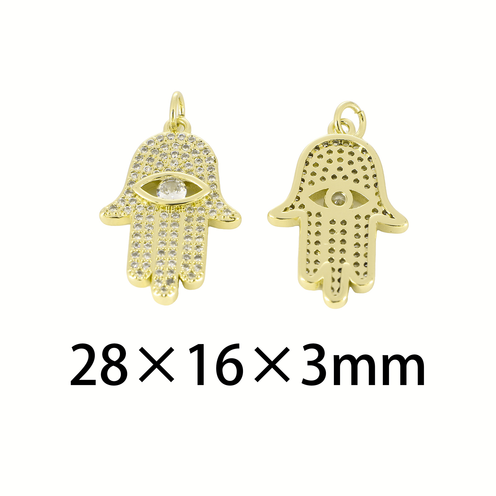 Befestigter Zirkonia Messing Anhänger, Hamsa, goldfarben plattiert, DIY & Micro pave Zirkonia, 28x16x3mm, verkauft von PC