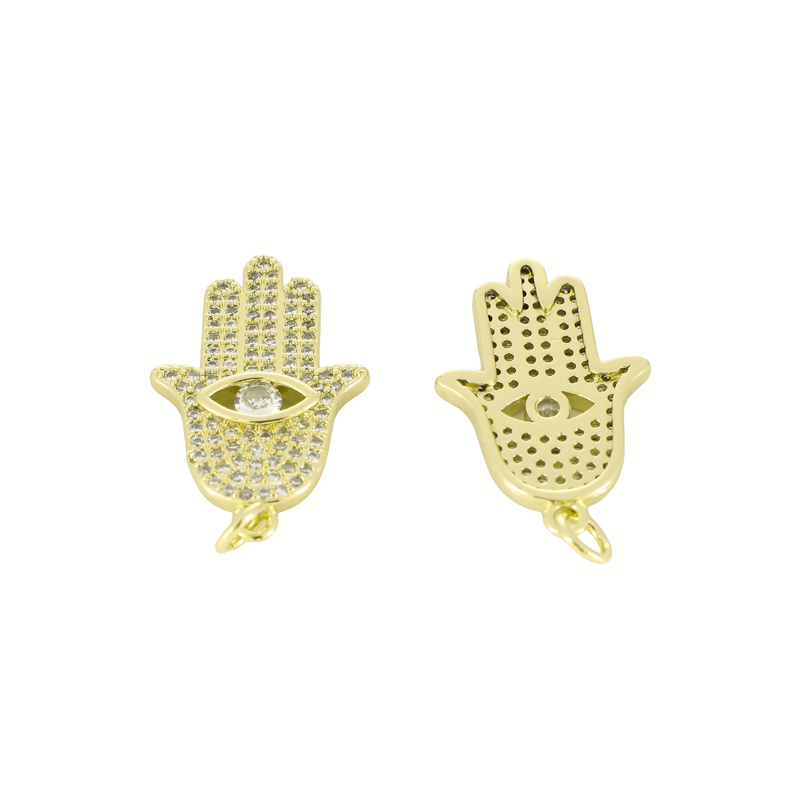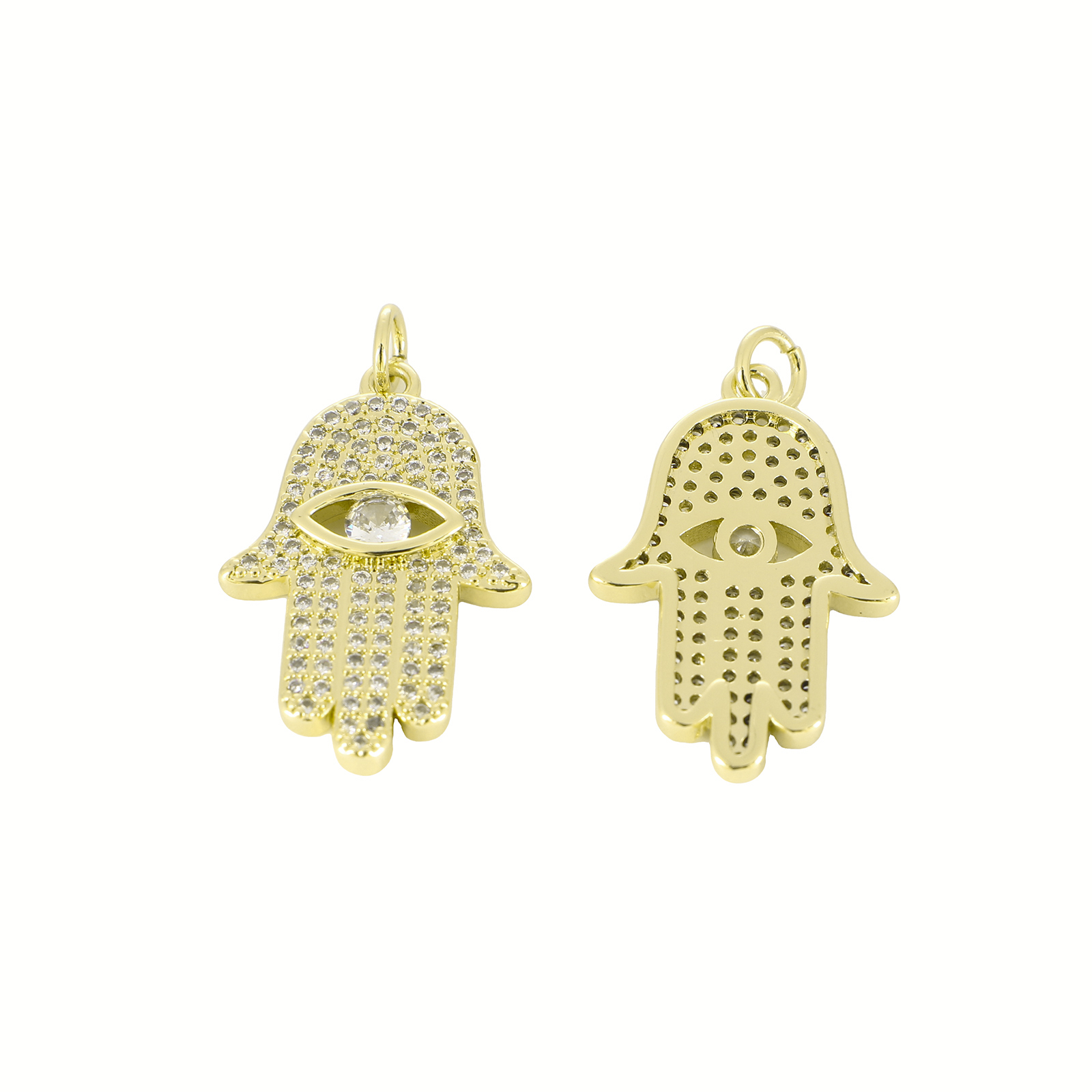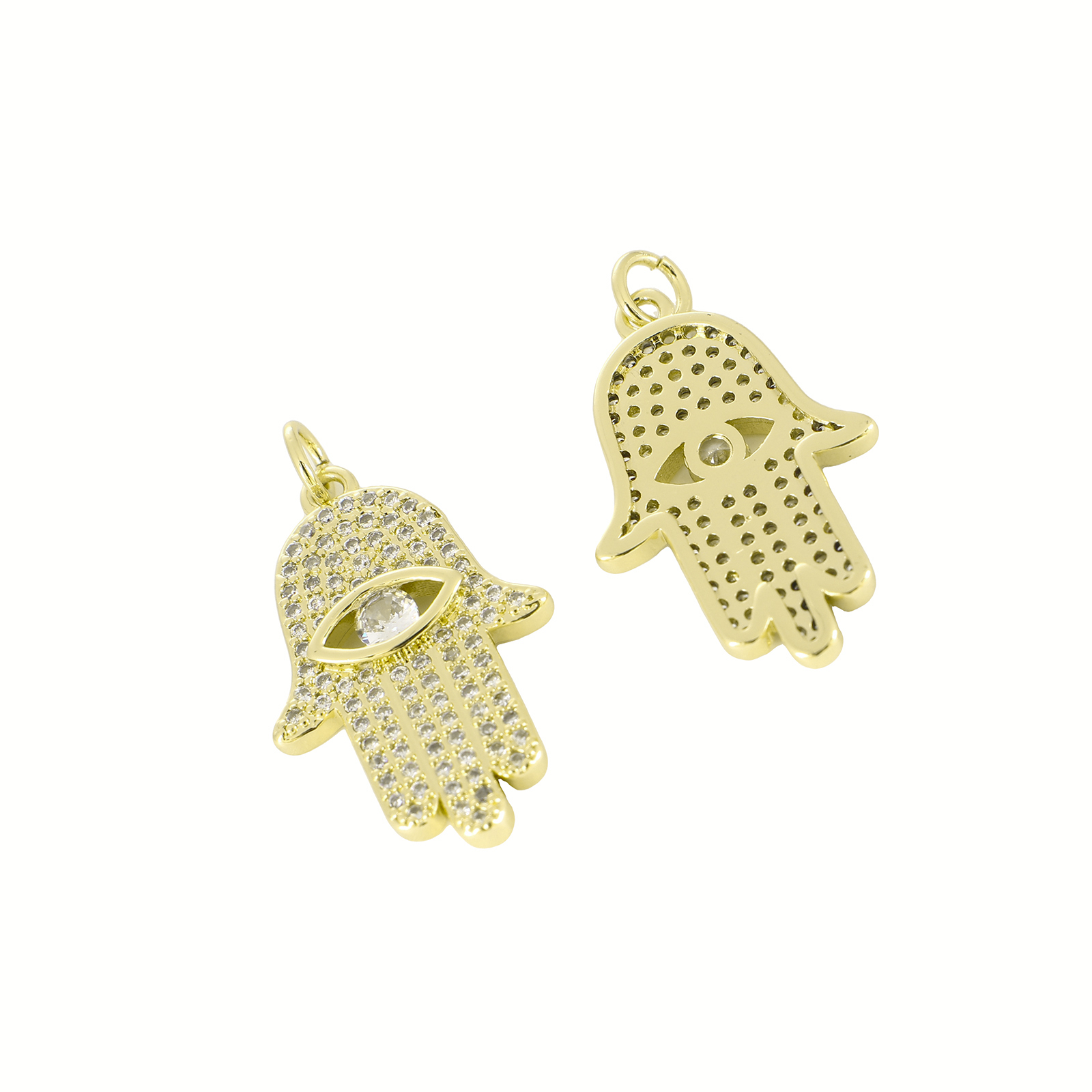 Befestigter Zirkonia Messing Anhänger, Hamsa, goldfarben plattiert, DIY & Micro pave Zirkonia, 28x16x3mm, verkauft von PC