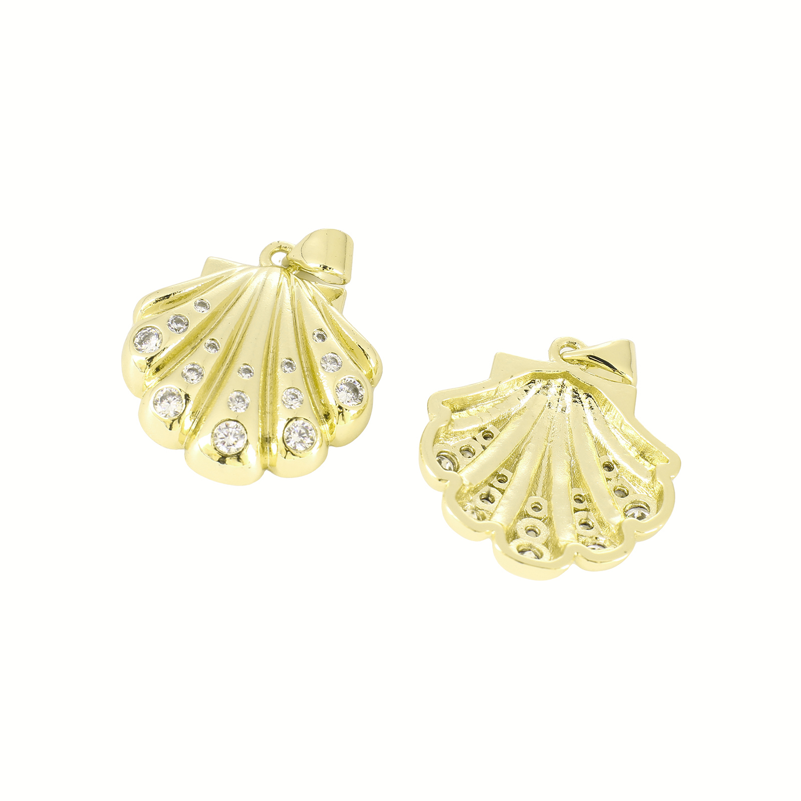 Befestigter Zirkonia Messing Anhänger, Schale, goldfarben plattiert, DIY & Micro pave Zirkonia, 27x21x4mm, verkauft von PC
