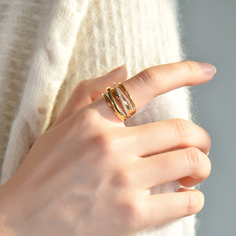 Messing Manschette Fingerring, goldfarben plattiert, Modeschmuck & Micro pave Zirkonia & für Frau & Emaille, keine, 22x4x5mm, Größe:4.5, verkauft von PC