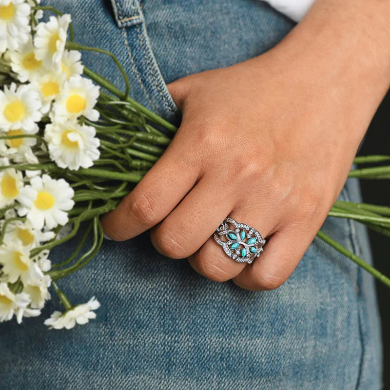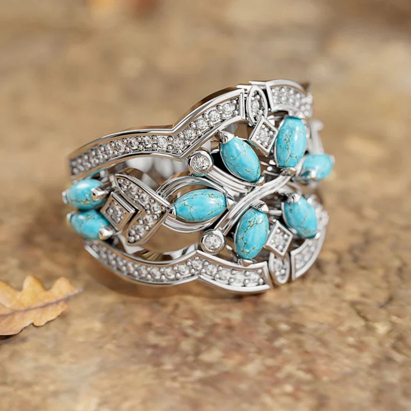 Befestigter Zirkonia Messingring Fingerring, Messing, mit Synthetische Türkis, plattiert, verschiedene Größen vorhanden & Micro pave Zirkonia & für Frau & hohl, verkauft von PC