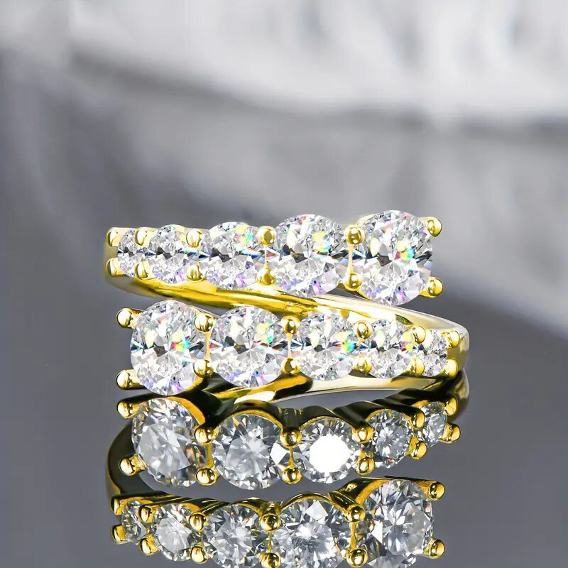 Messing Manschette Fingerring, goldfarben plattiert, Modeschmuck & Micro pave Zirkonia & für Frau & Emaille, keine, 22x4x5mm, Größe:4.5, verkauft von PC