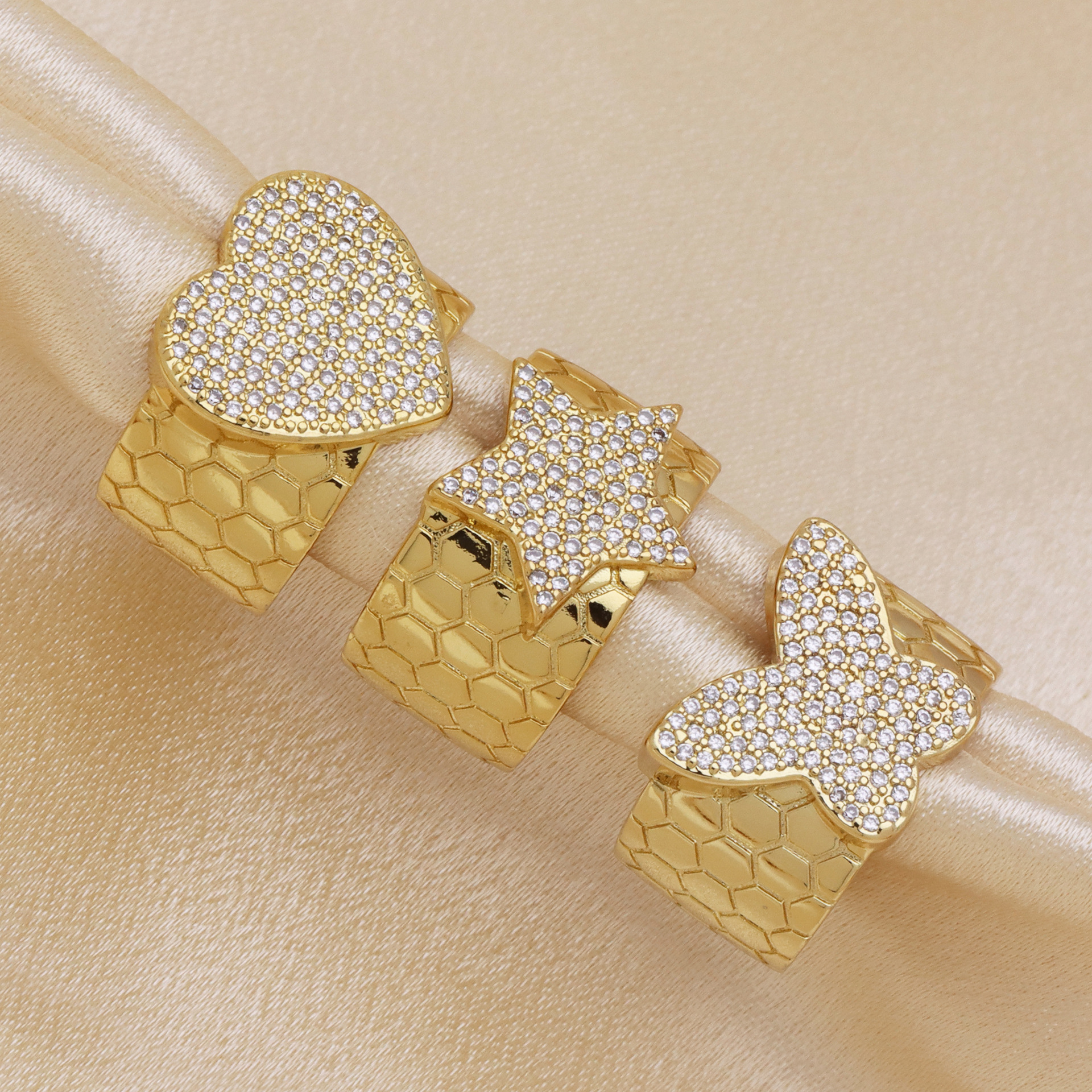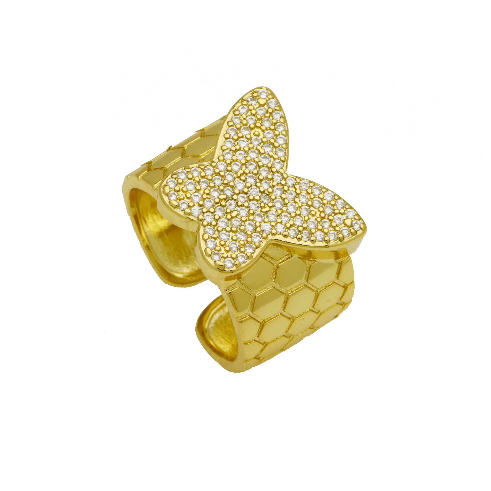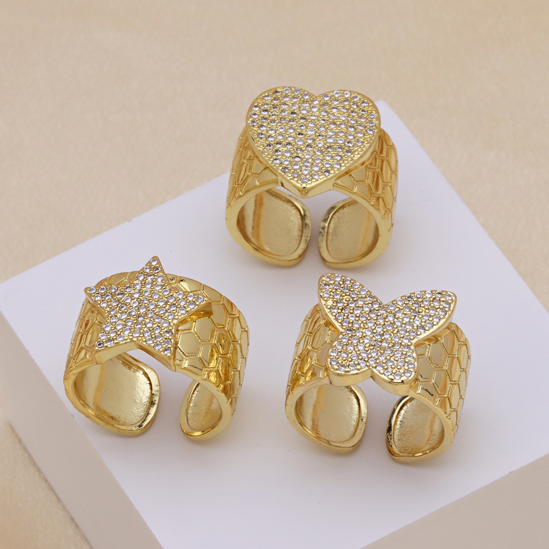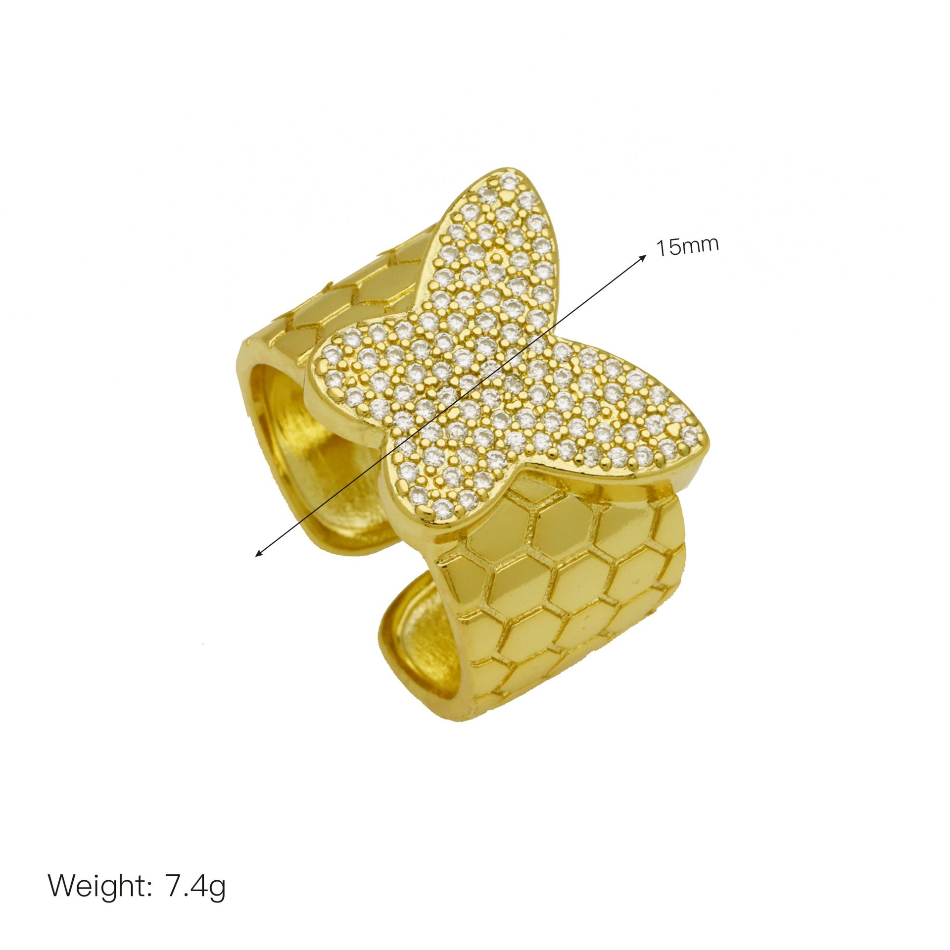 Befestigter Zirkonia Messingring Fingerring, Messing, Schmetterling, plattiert, Modeschmuck & Micro pave Zirkonia & für Frau, keine, verkauft von PC