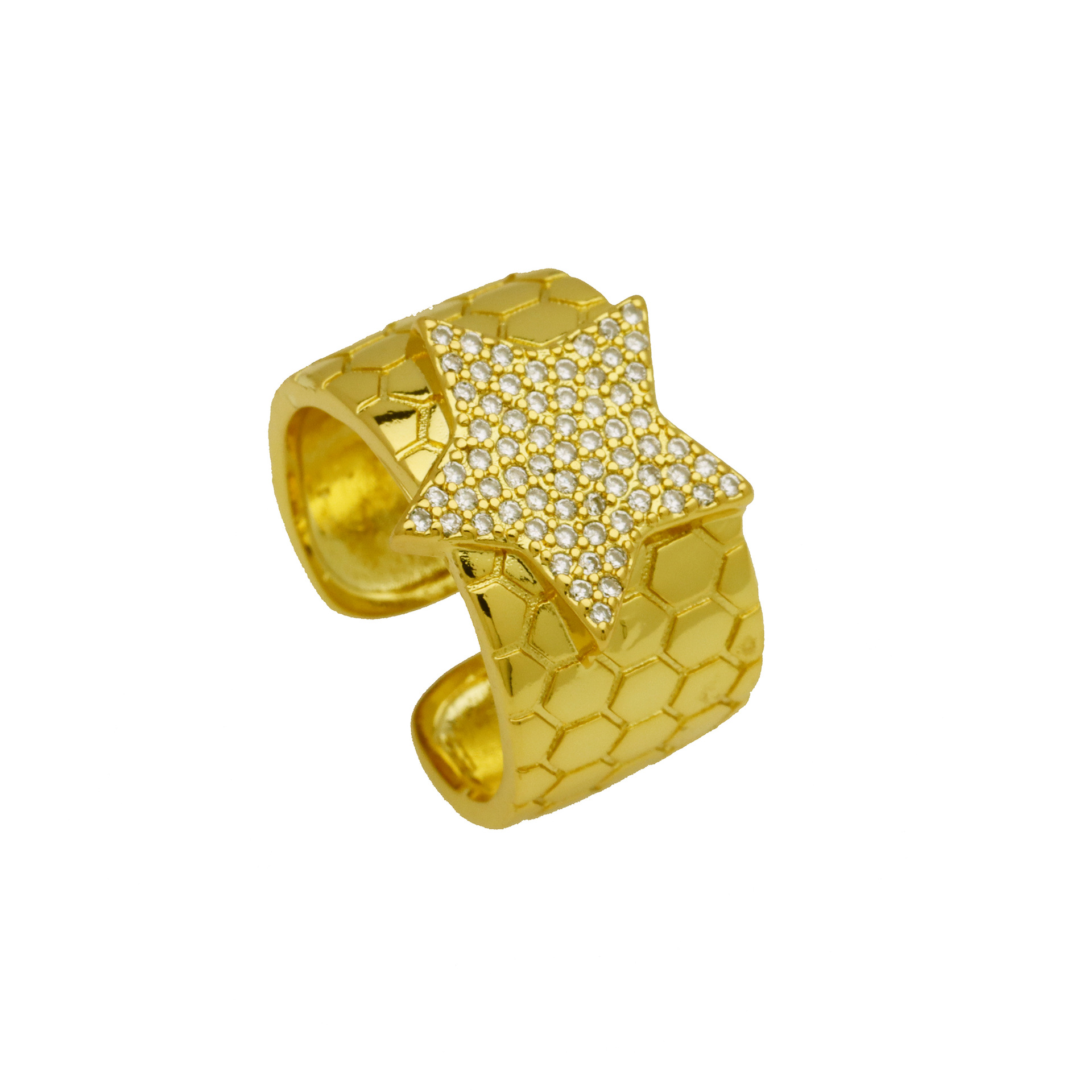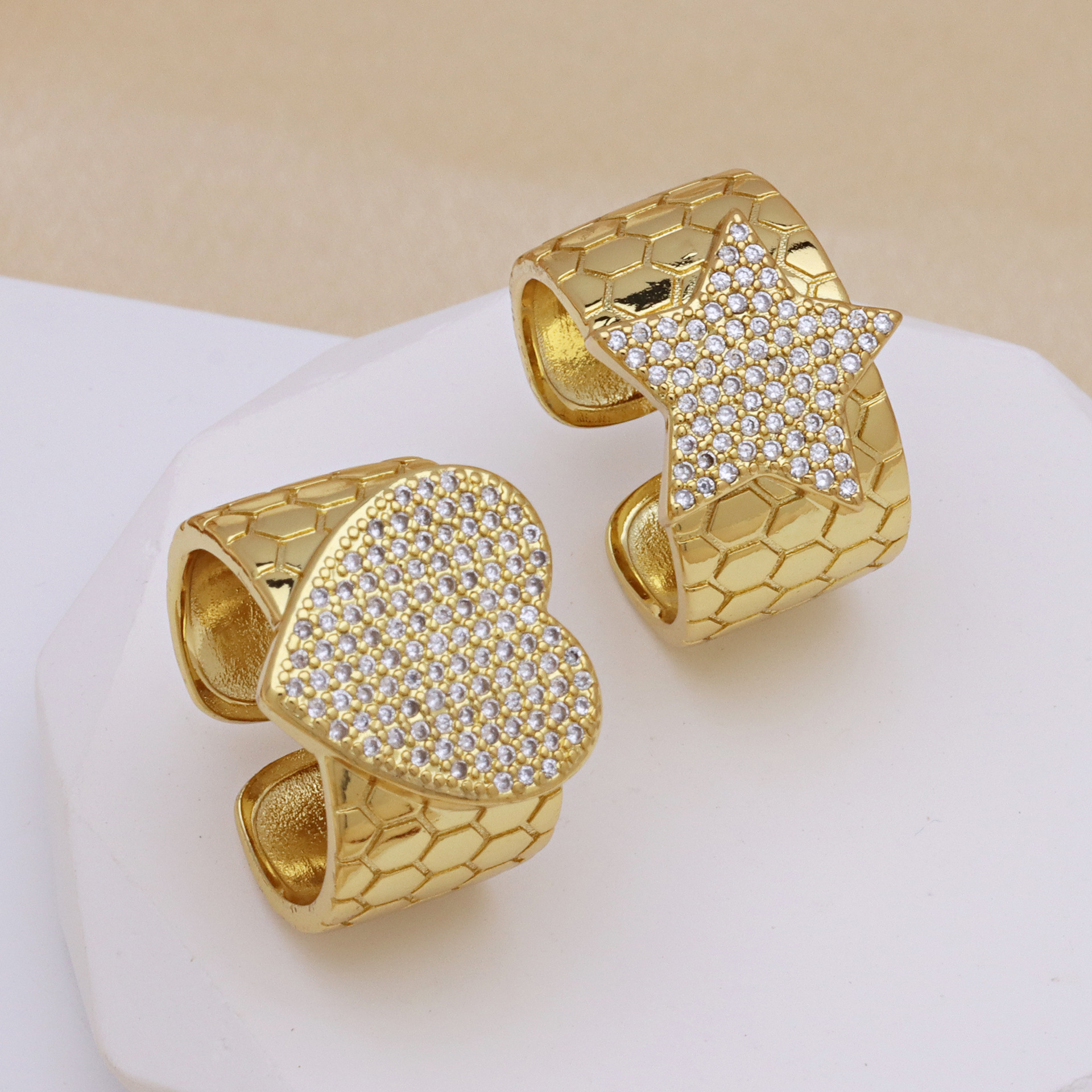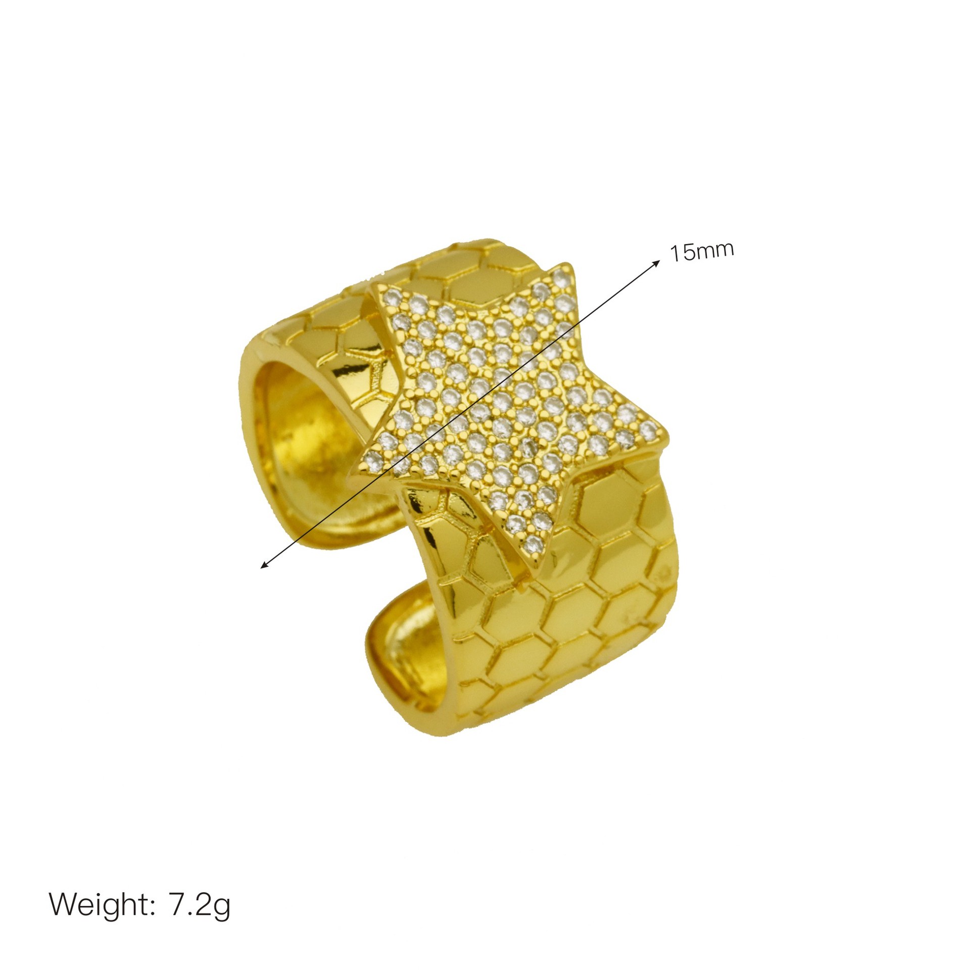 Messing Manschette Fingerring, goldfarben plattiert, Modeschmuck & Micro pave Zirkonia & für Frau & Emaille, keine, 22x4x5mm, Größe:4.5, verkauft von PC