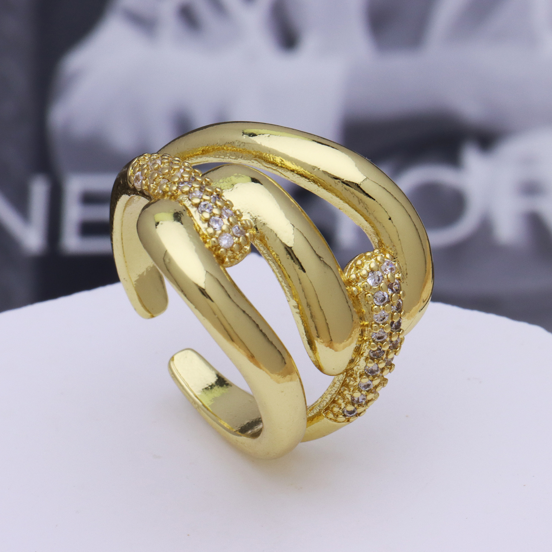 Messing Manschette Fingerring, plattiert, Modeschmuck & für Frau & mit kubischem Zirkonia, frei von Nickel, Blei & Kadmium, 8mm,3mm, verkauft von PC