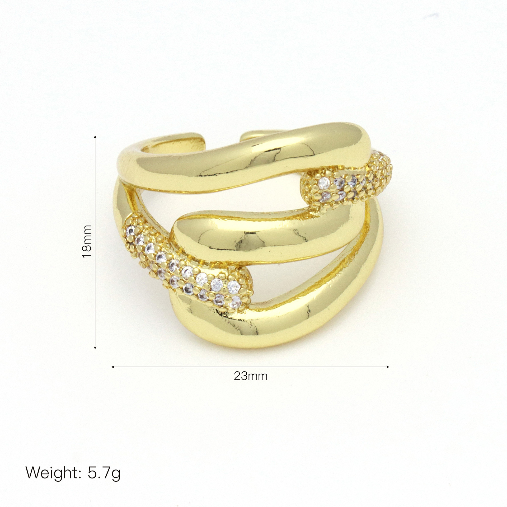Messing Manschette Fingerring, goldfarben plattiert, Modeschmuck & Micro pave Zirkonia & für Frau & Emaille, keine, 22x4x5mm, Größe:4.5, verkauft von PC