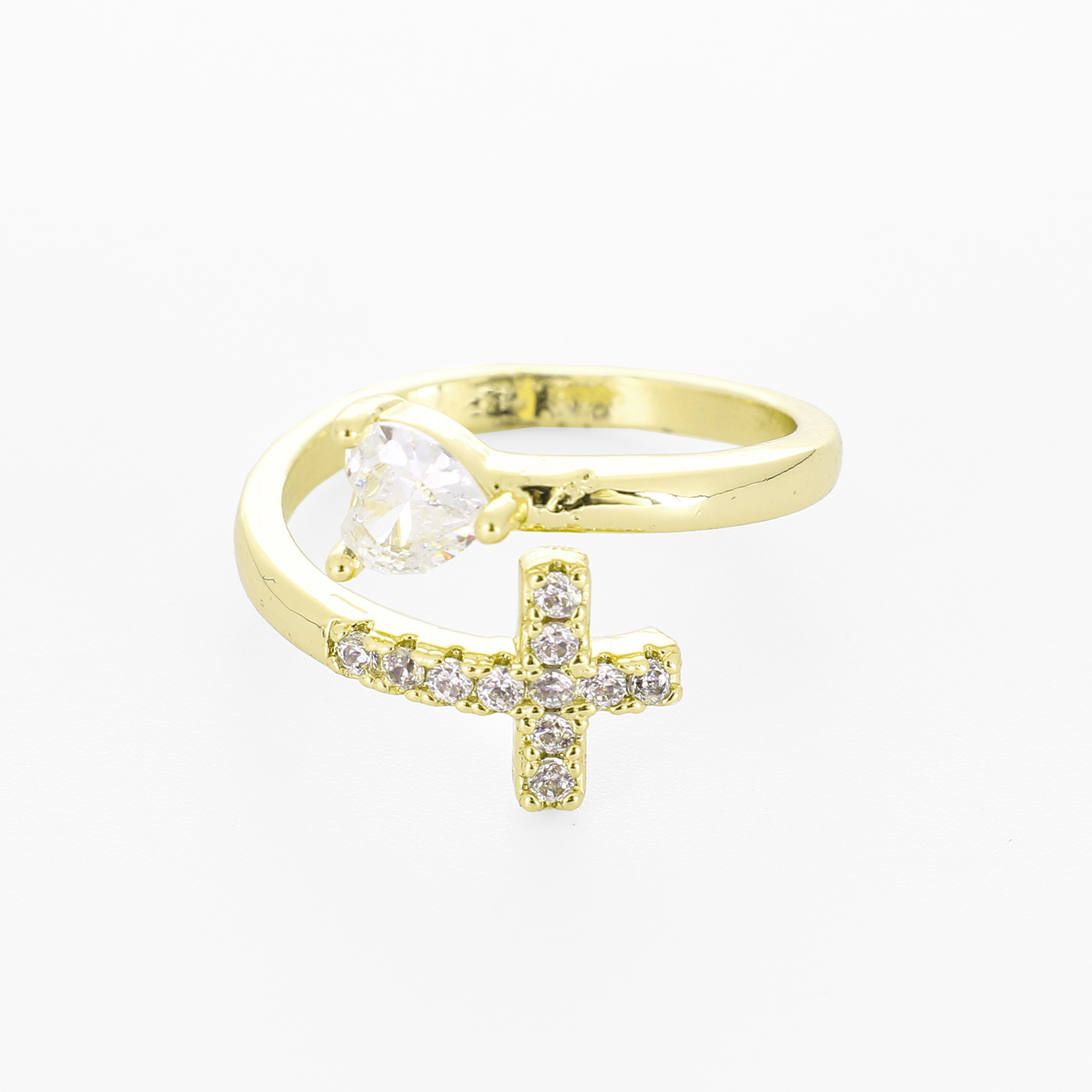 Befestigter Zirkonia Messingring Fingerring, Messing, Kreuz, goldfarben plattiert, Micro pave Zirkonia & für Frau, verkauft von PC
