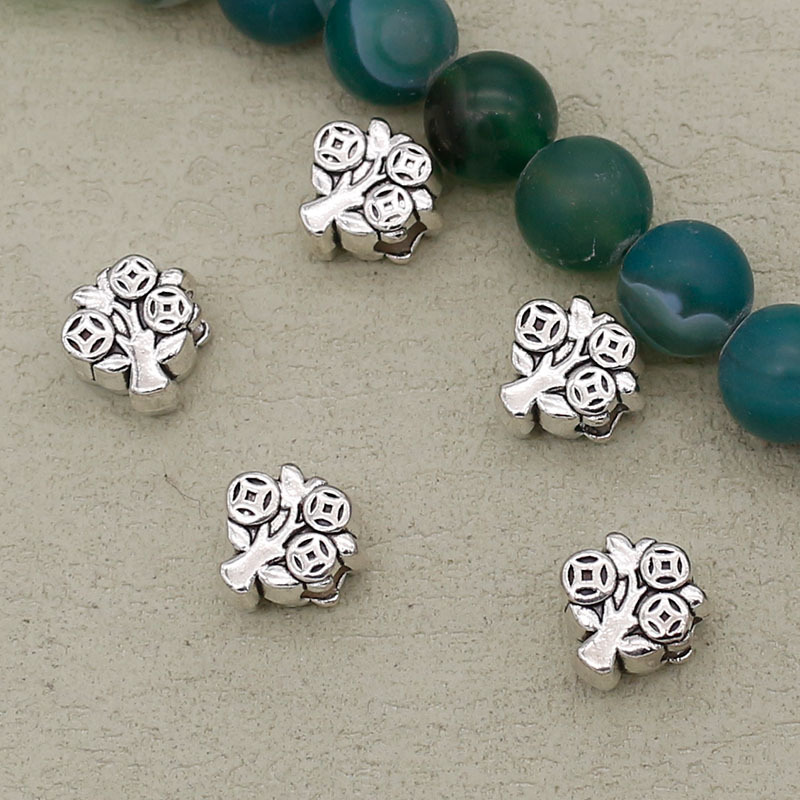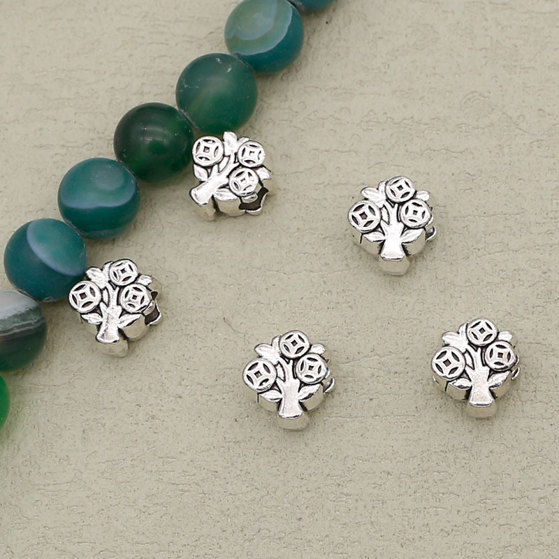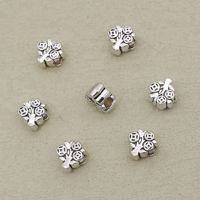 Zinklegierung Schmuckperlen, Baum, silberfarben plattiert, DIY, Silberfarbe, 12x11x7mm, Bohrung:ca. 4mm, verkauft von PC