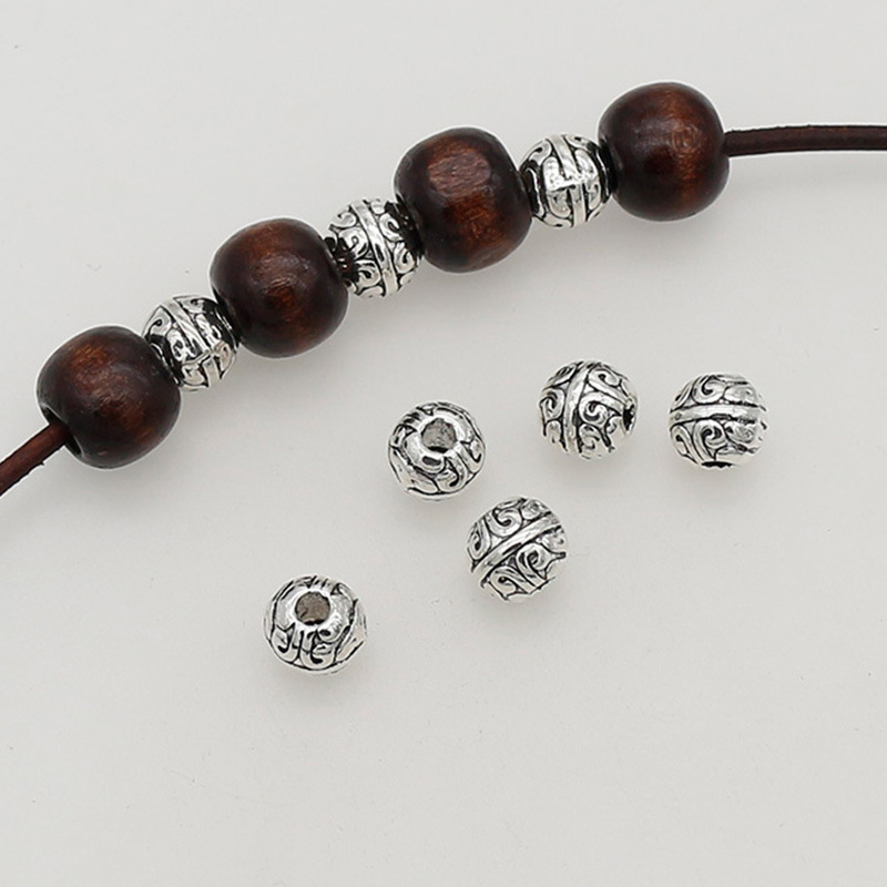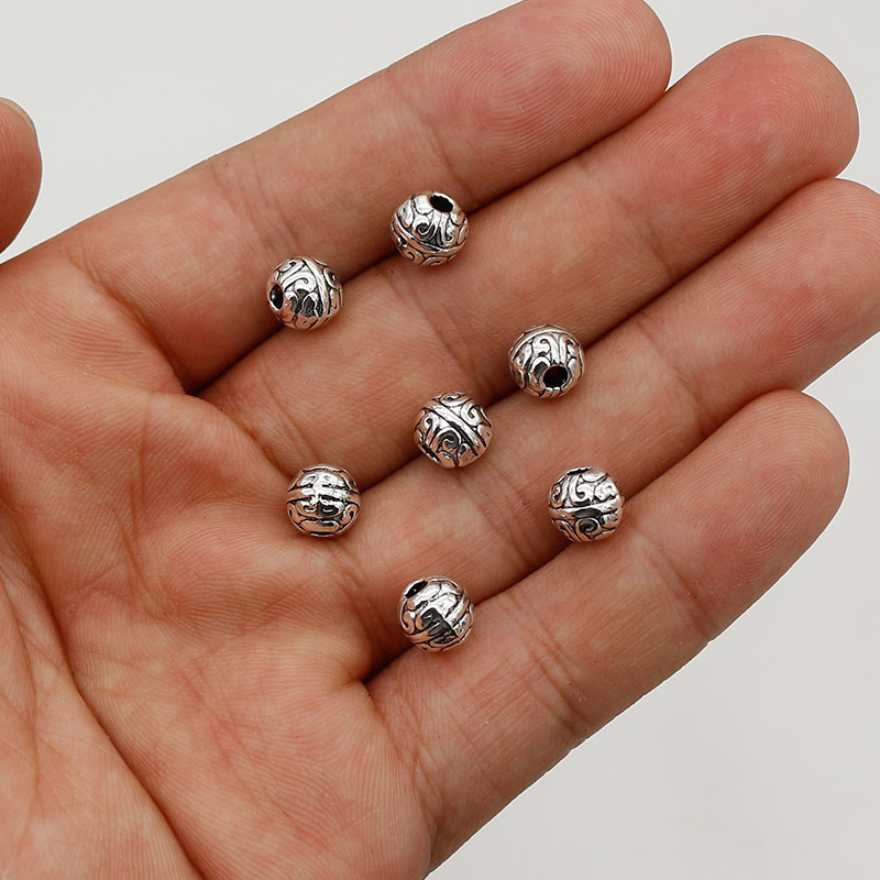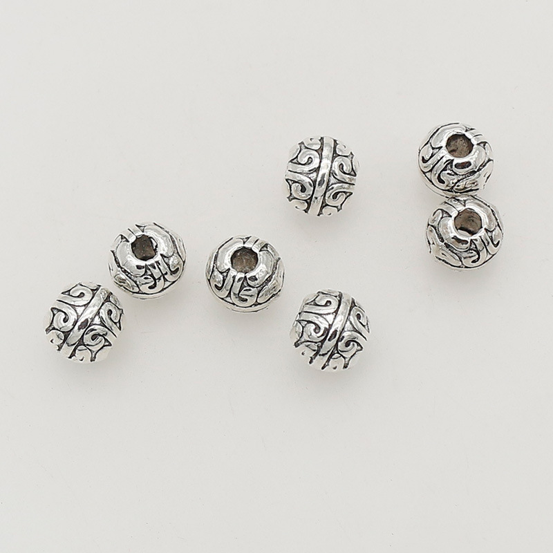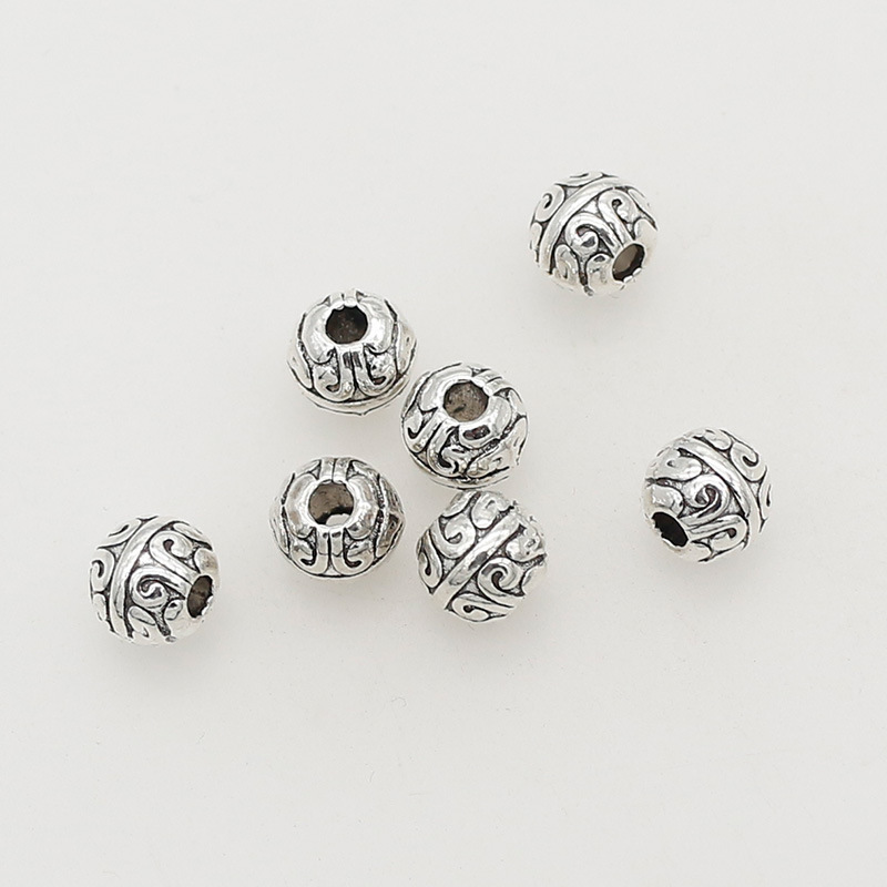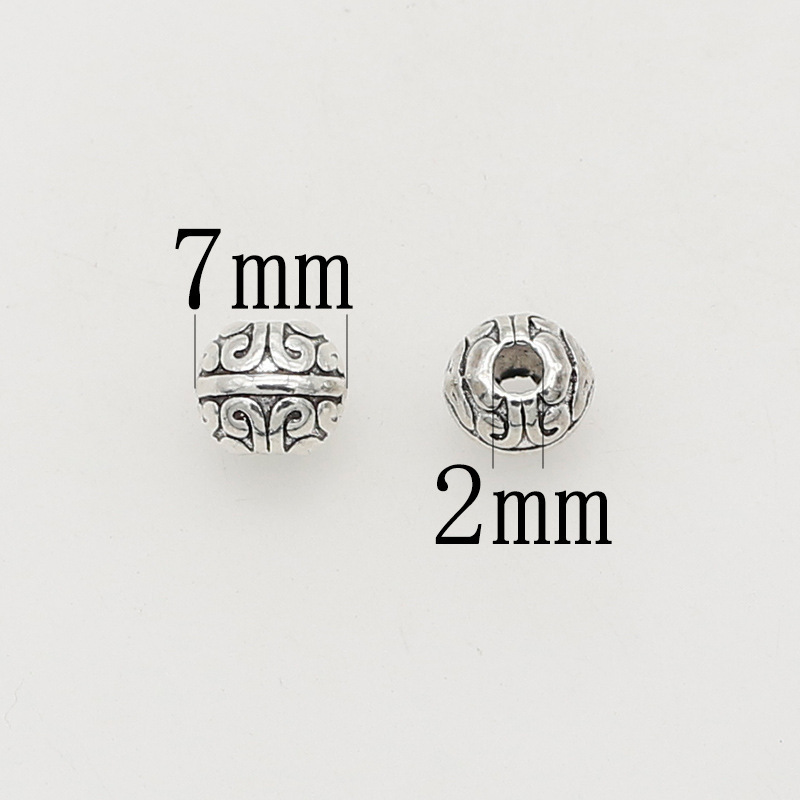 Zinklegierung Schmuckperlen, rund, silberfarben plattiert, DIY, Silberfarbe, 7mm, Bohrung:ca. 2mm, verkauft von PC
