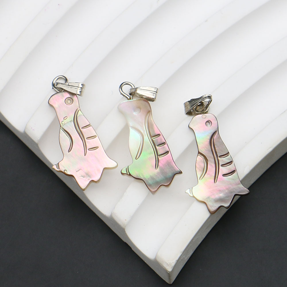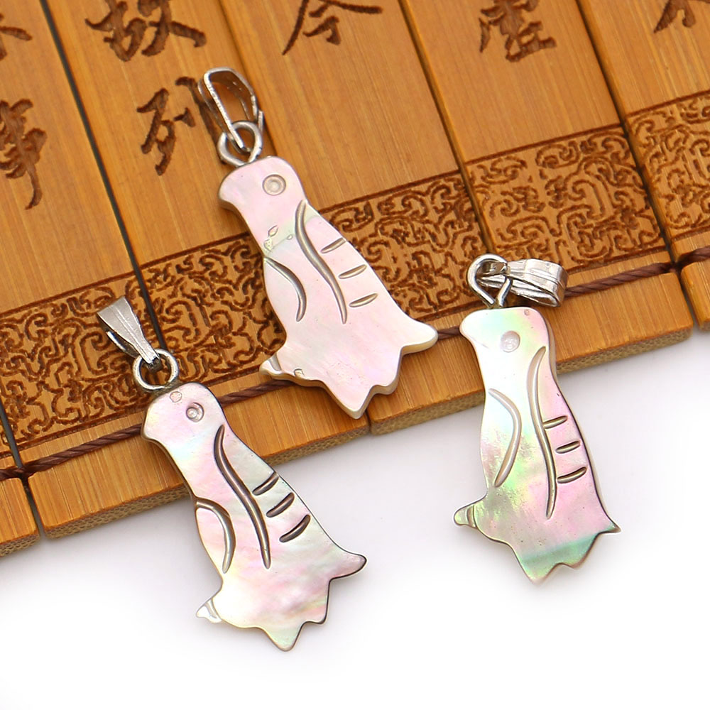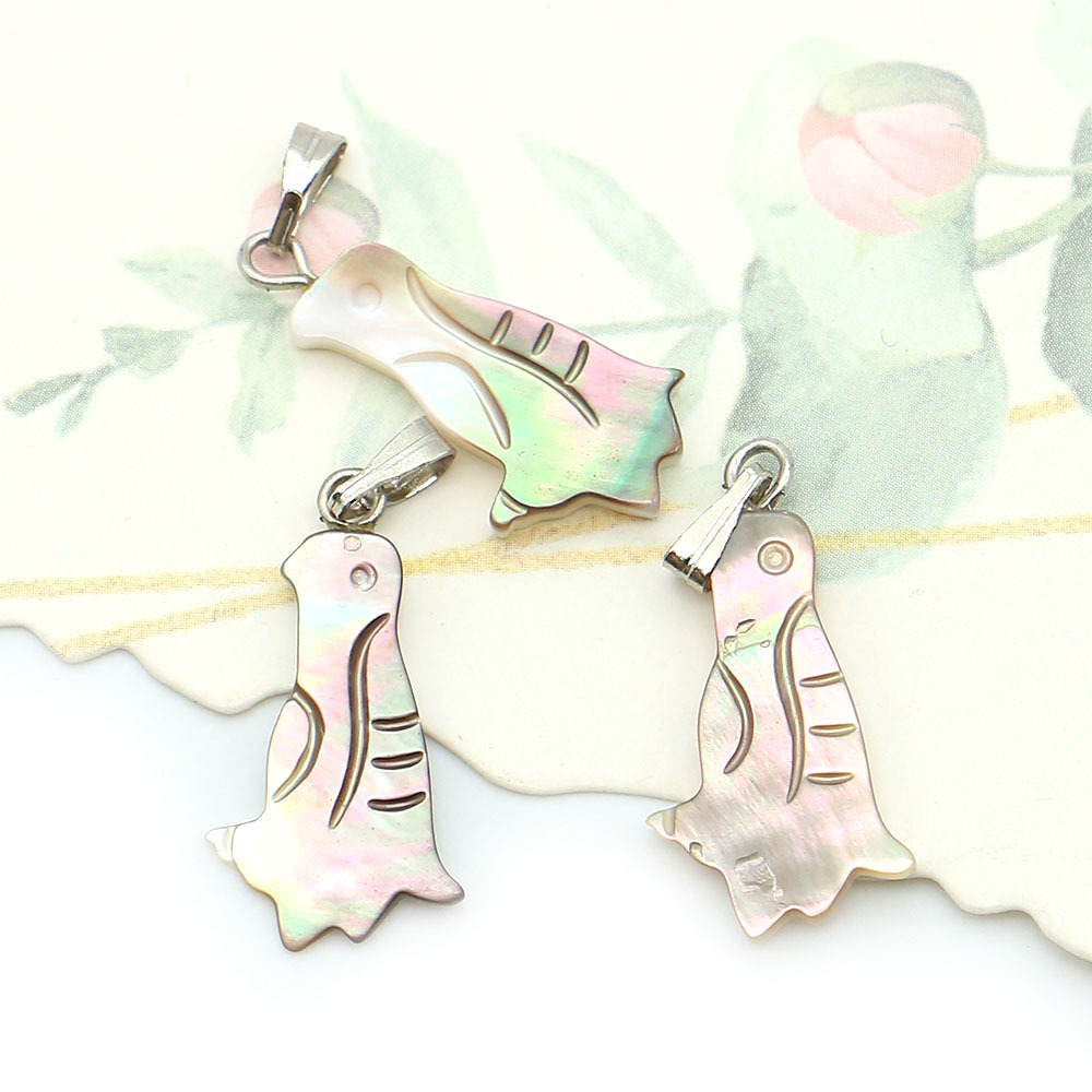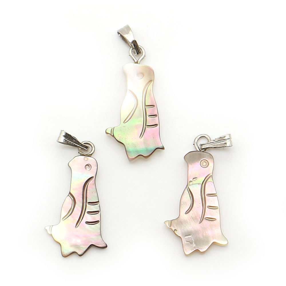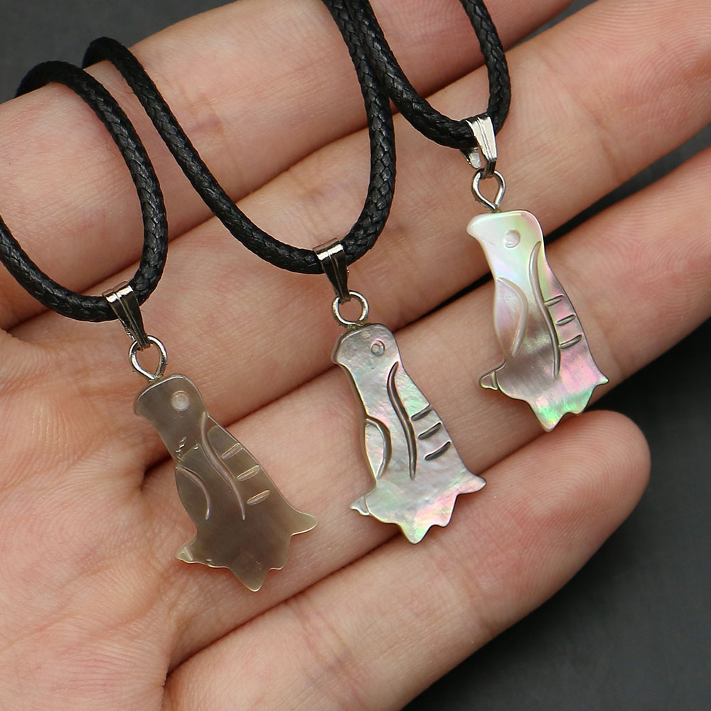 Black+Lip+Shell Anhänger, mit Wachsschnur & Eisen, Pinguin, DIY, gemischte Farben, 11x23mm, verkauft von PC
