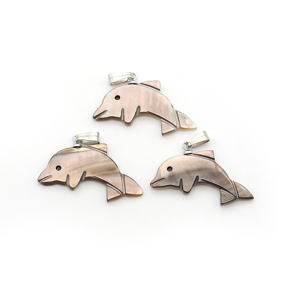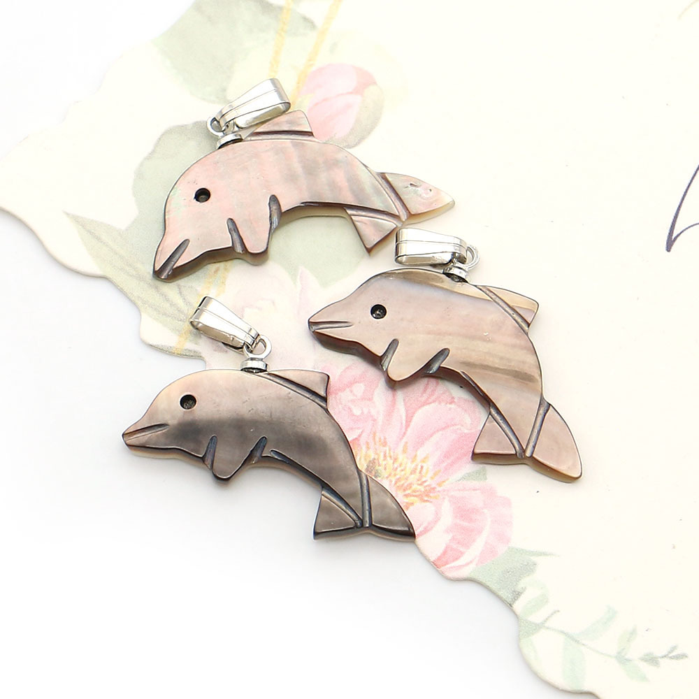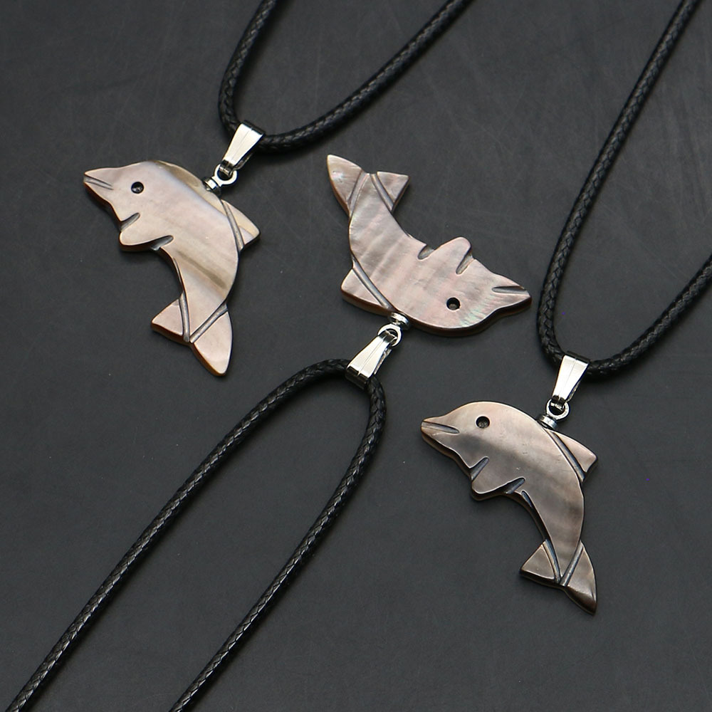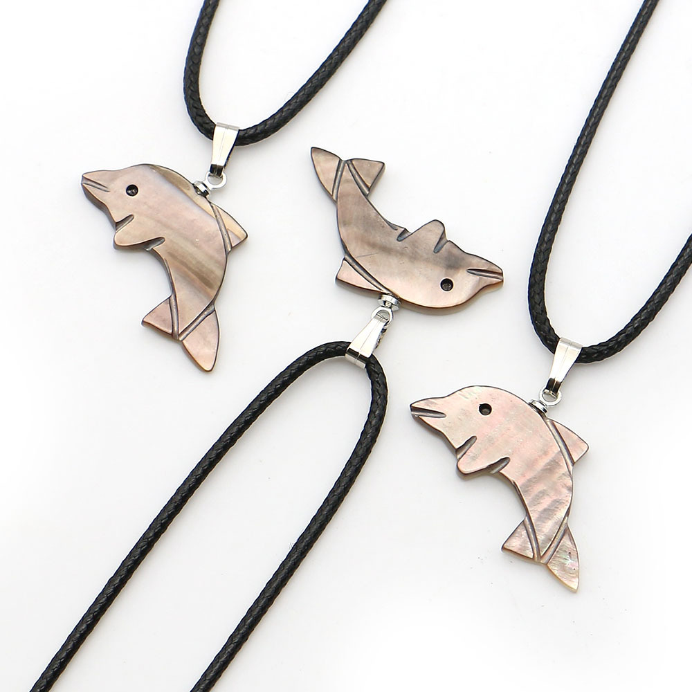 Black+Lip+Shell Anhänger, mit Wachsschnur & Eisen, Dolphin, DIY, gemischte Farben, 17x29mm, verkauft von PC