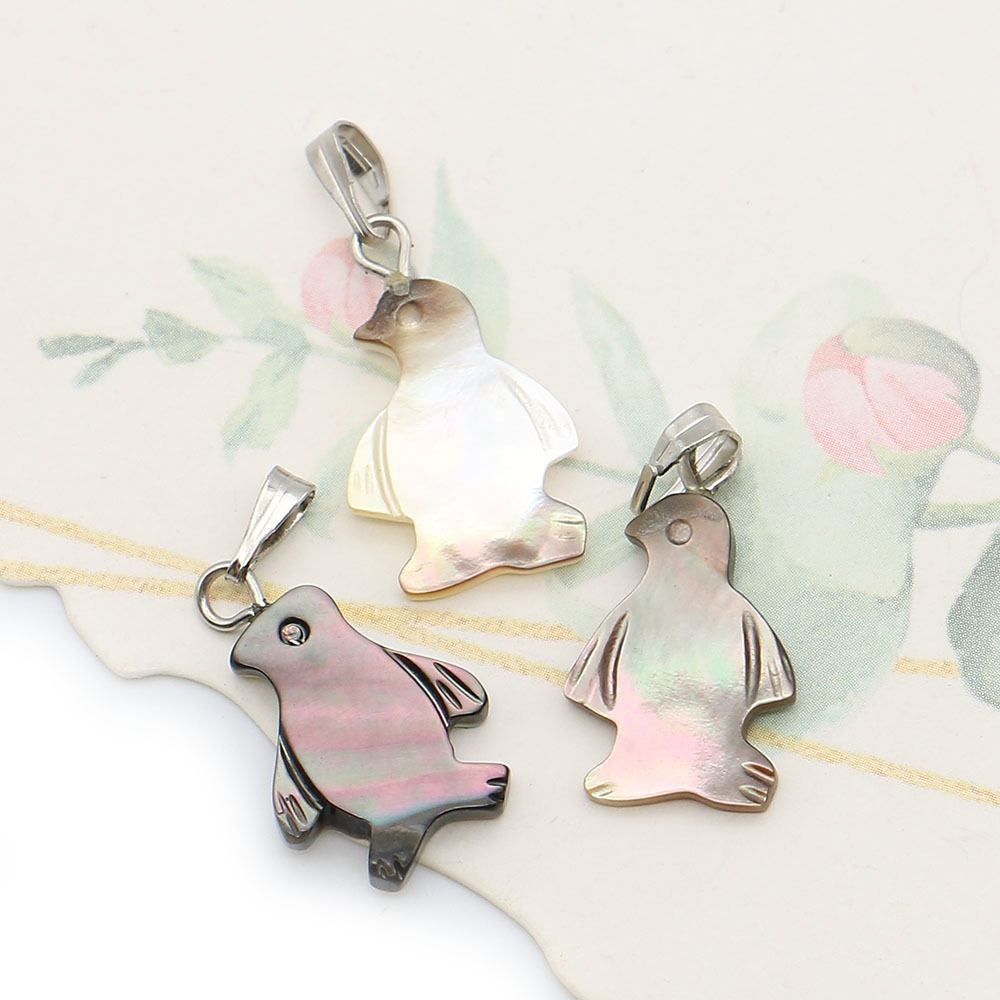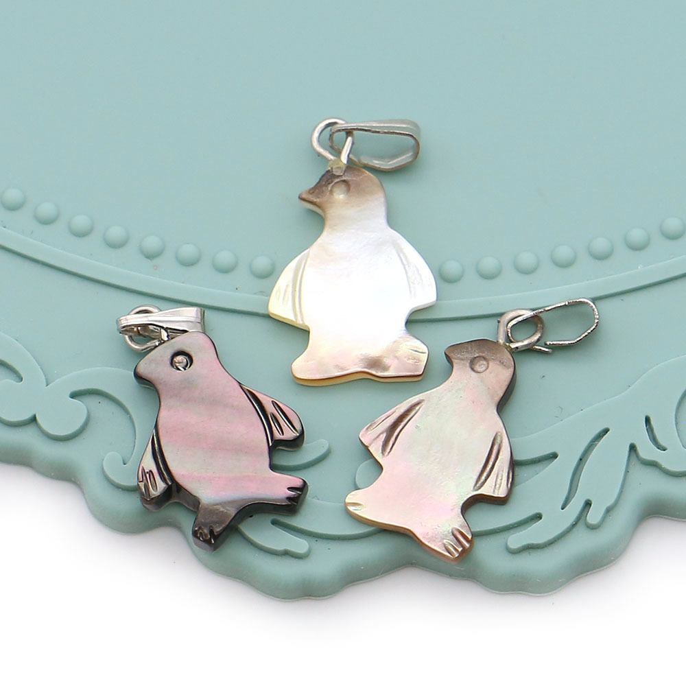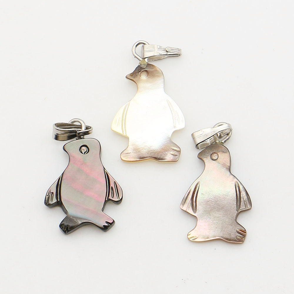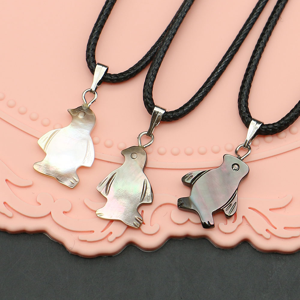 Black+Lip+Shell Anhänger, mit Wachsschnur & Eisen, Pinguin, DIY, gemischte Farben, 12x19mm, verkauft von PC