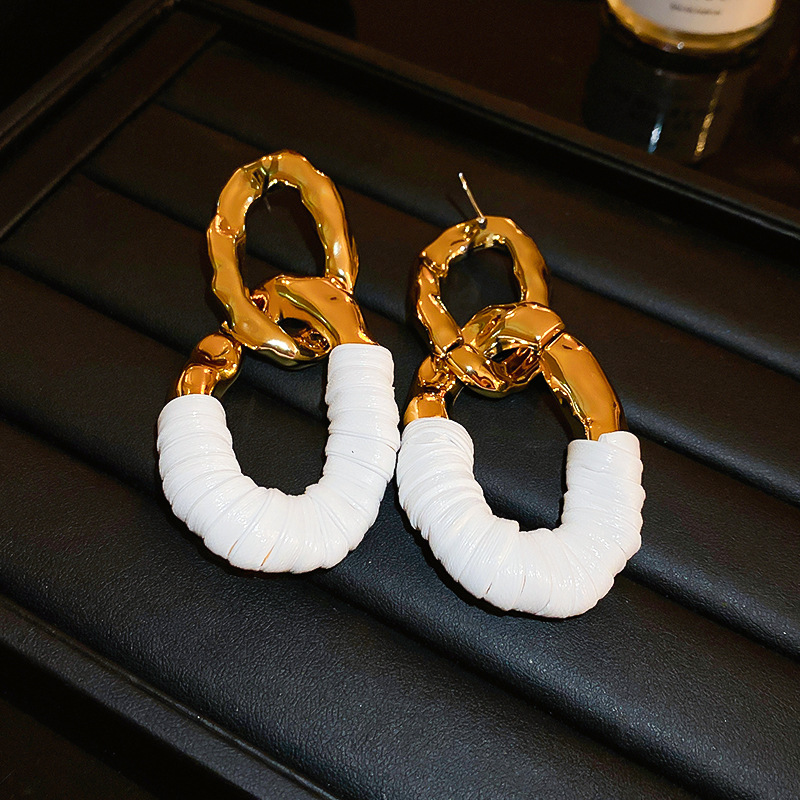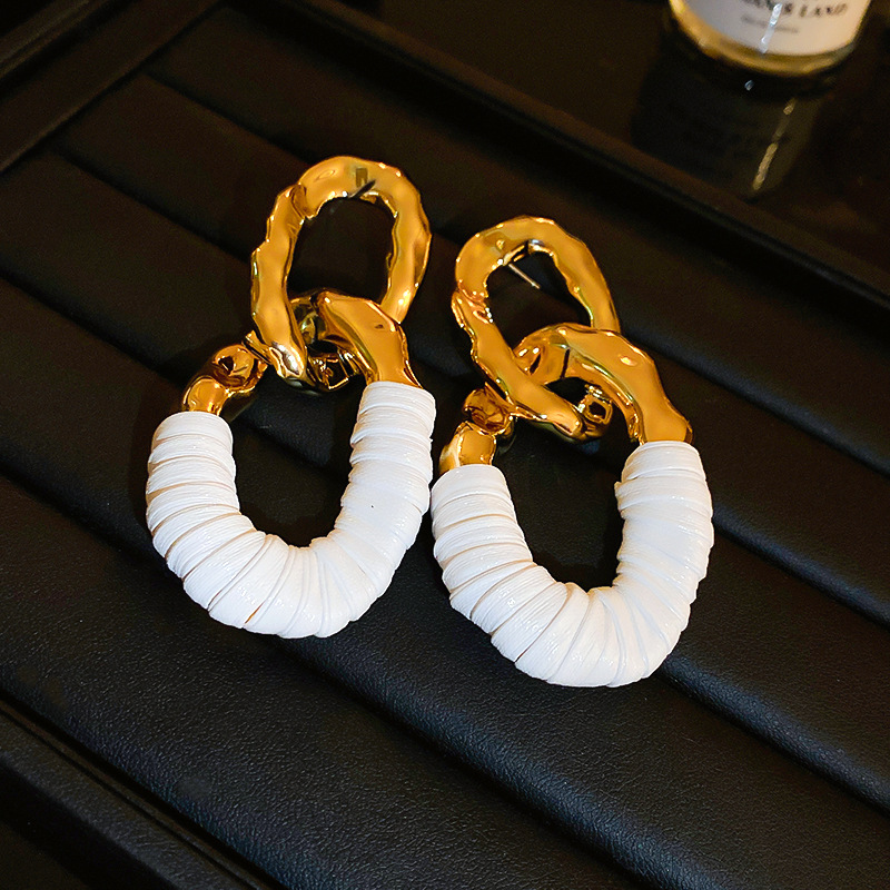Acryl Tropfen Ohrring, Zinklegierung, mit PU Leder & Acryl, plattiert, Modeschmuck & für Frau & hohl, weiß, 84x40mm, verkauft von Paar