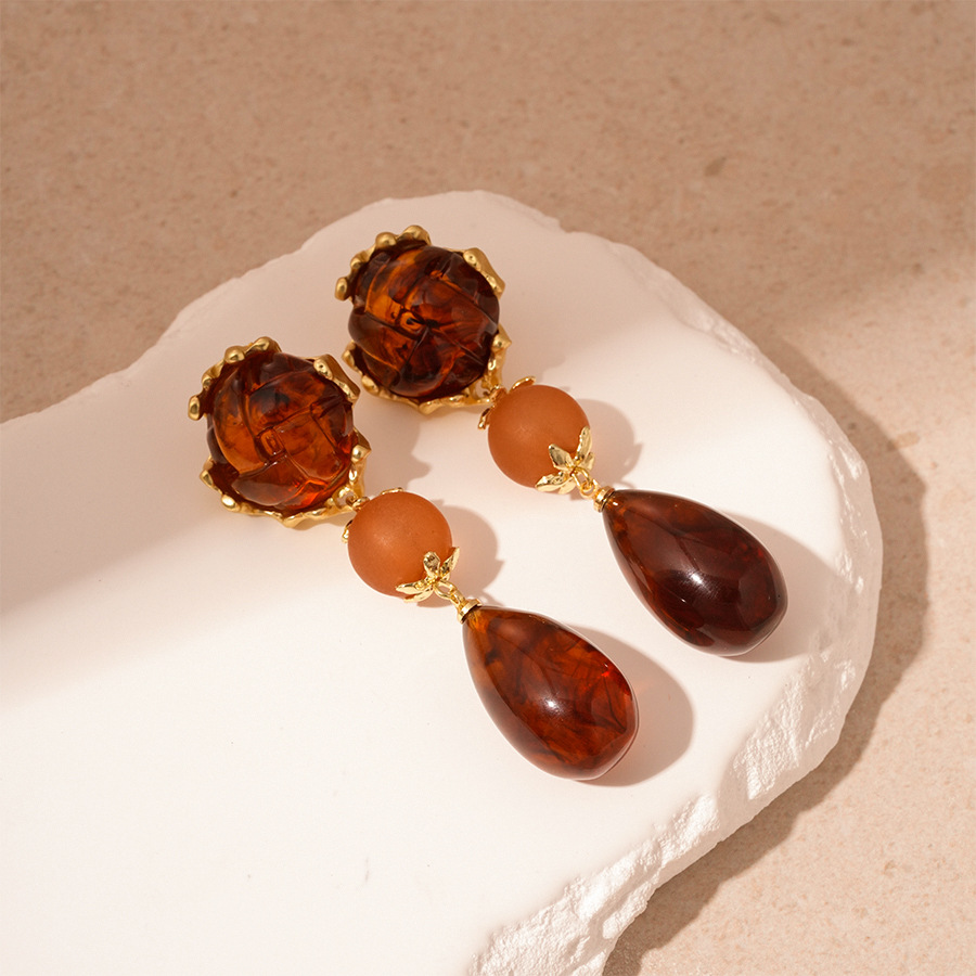 Acryl Tropfen Ohrring, Zinklegierung, mit Acryl, plattiert, Modeschmuck & für Frau, Kaffeefarbe, verkauft von Paar