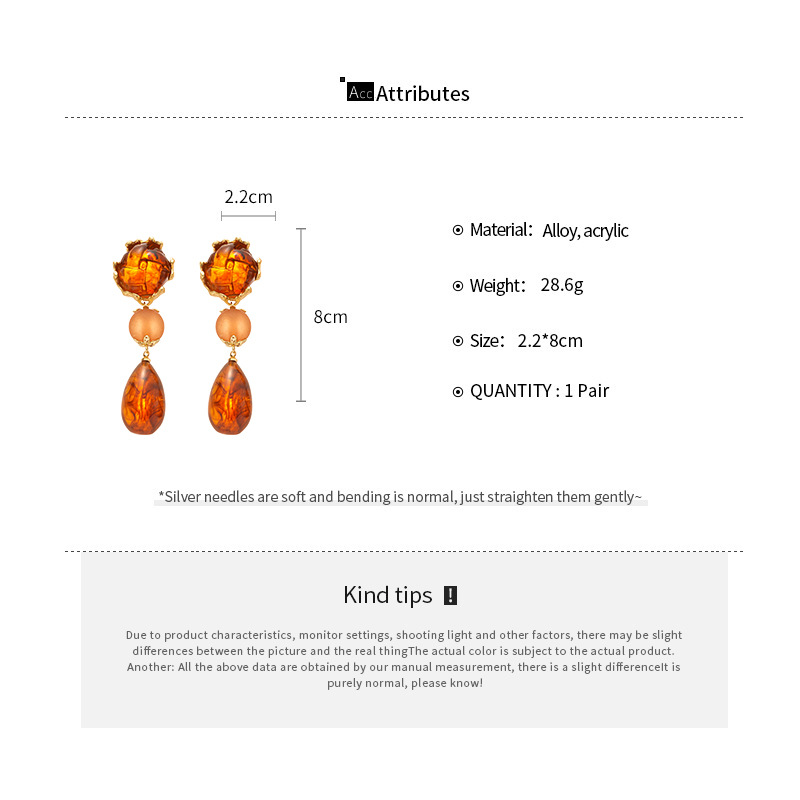 Acryl Tropfen Ohrring, goldfarben plattiert, für Frau, 39x90mm, verkauft von Paar