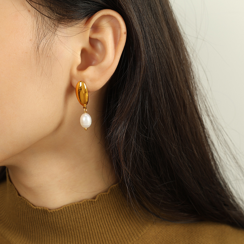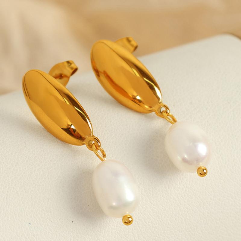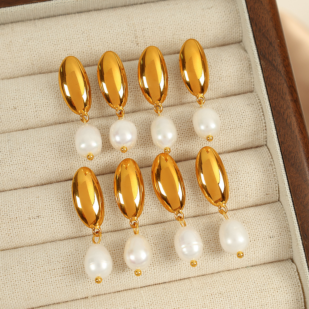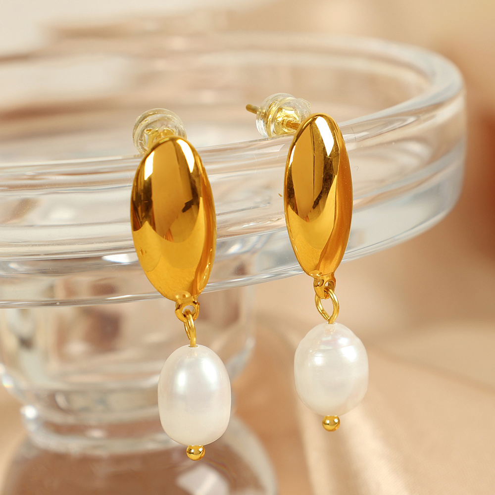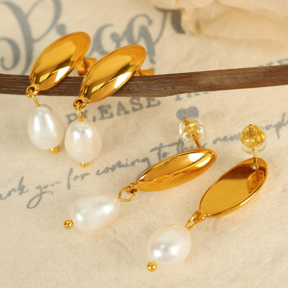 Süßwasser Perle Tropfen Ohrring, 304 Edelstahl, mit Natürliche kultivierte Süßwasserperlen, 18K vergoldet, Modeschmuck & für Frau, verkauft von Paar