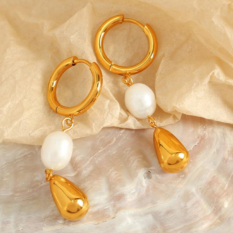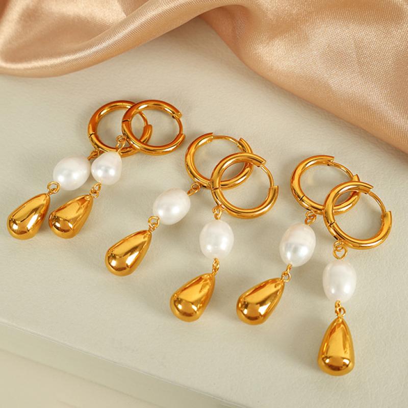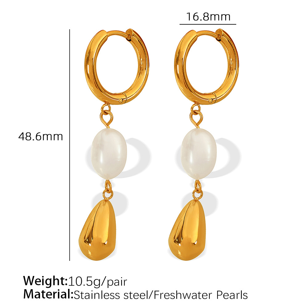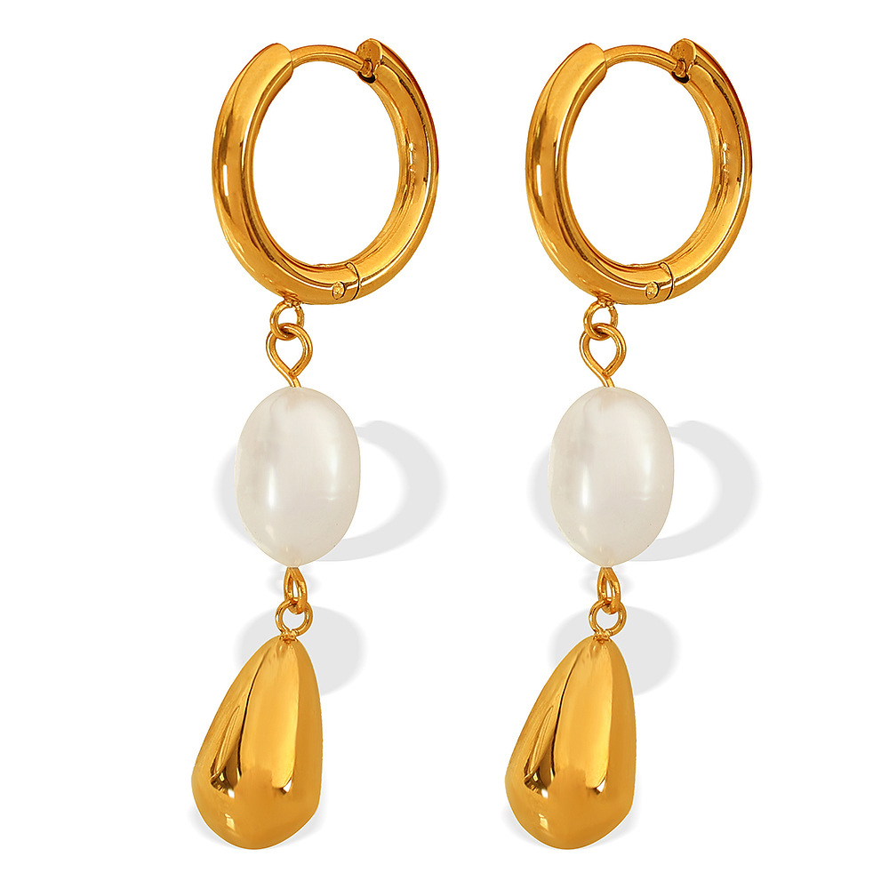 Süßwasser Perle Tropfen Ohrring, 304 Edelstahl, mit Natürliche kultivierte Süßwasserperlen, 18K vergoldet, Modeschmuck & für Frau, verkauft von Paar