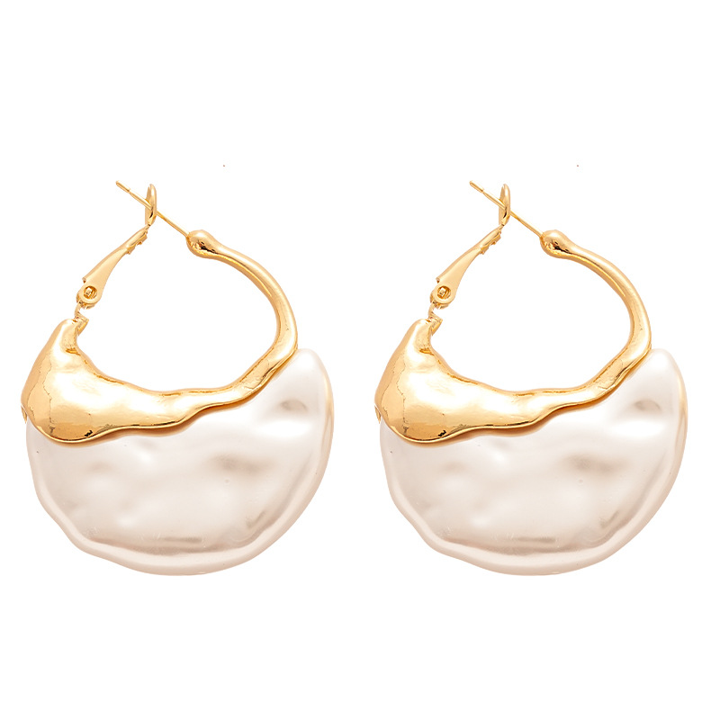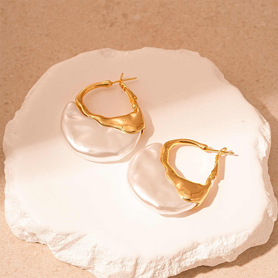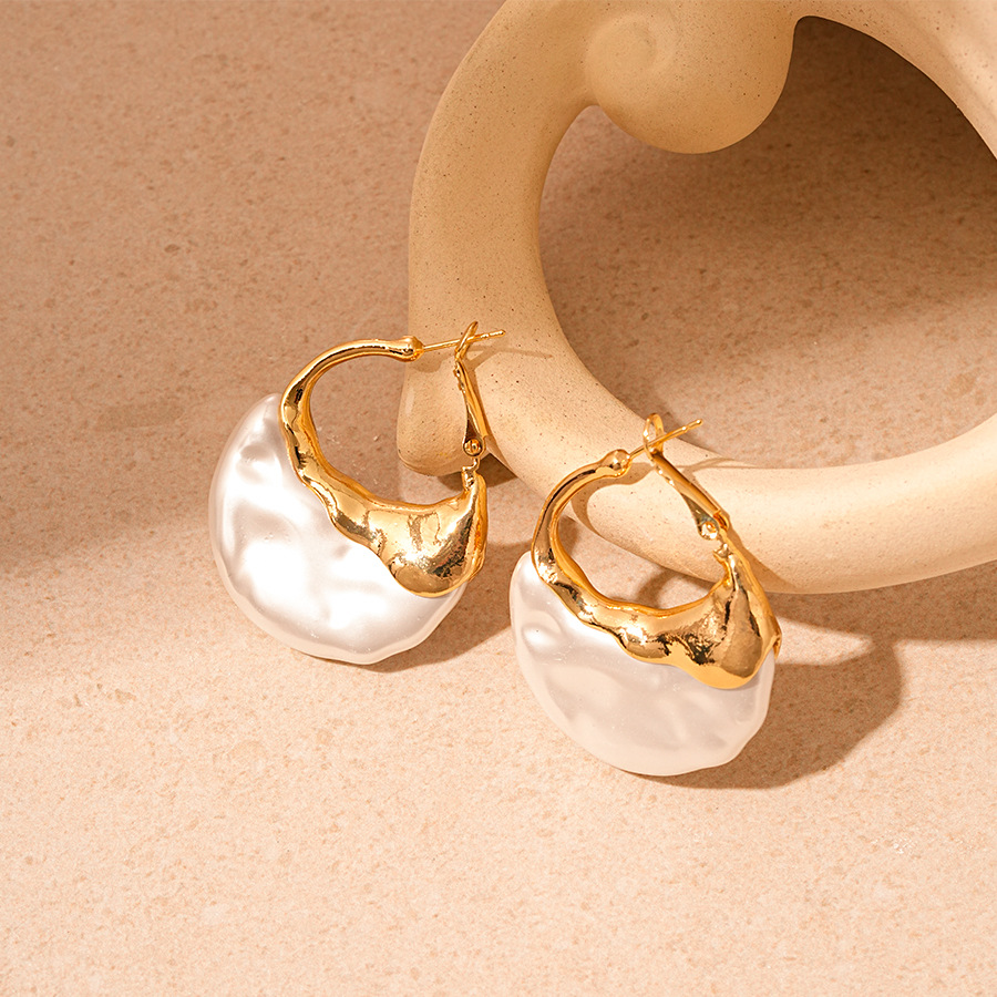 Kunststoff Perle Zink Legierung Ohrring, Zinklegierung, mit Kunststoff Perlen, plattiert, Modeschmuck & für Frau, goldfarben, 46x33mm, verkauft von Paar
