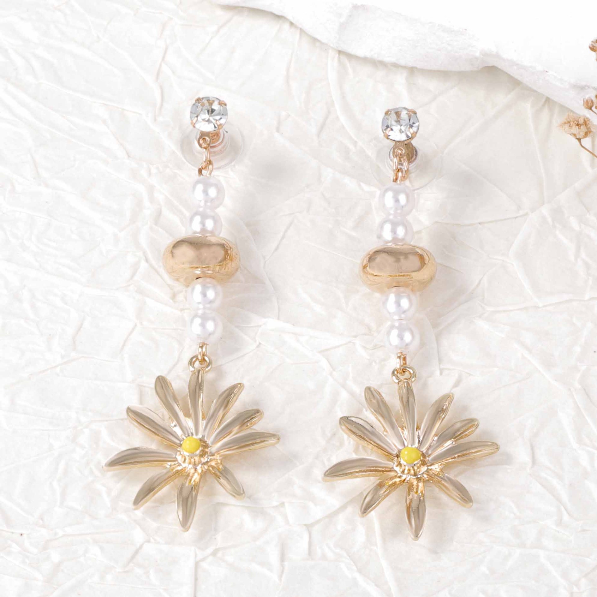Zinklegierung Tropfen Ohrring, mit ABS-Kunststoff-Perlen, Eisen Haken, Blume, plattiert, keine, frei von Blei & Kadmium, 14x53mm, verkauft von Paar