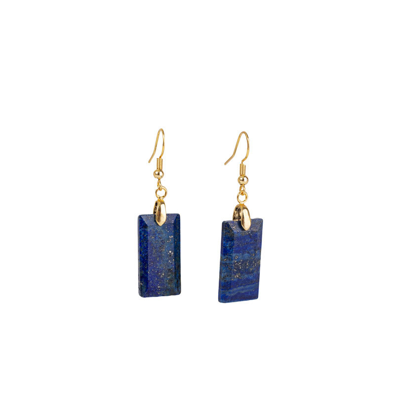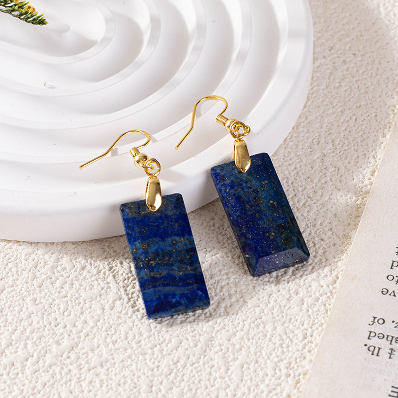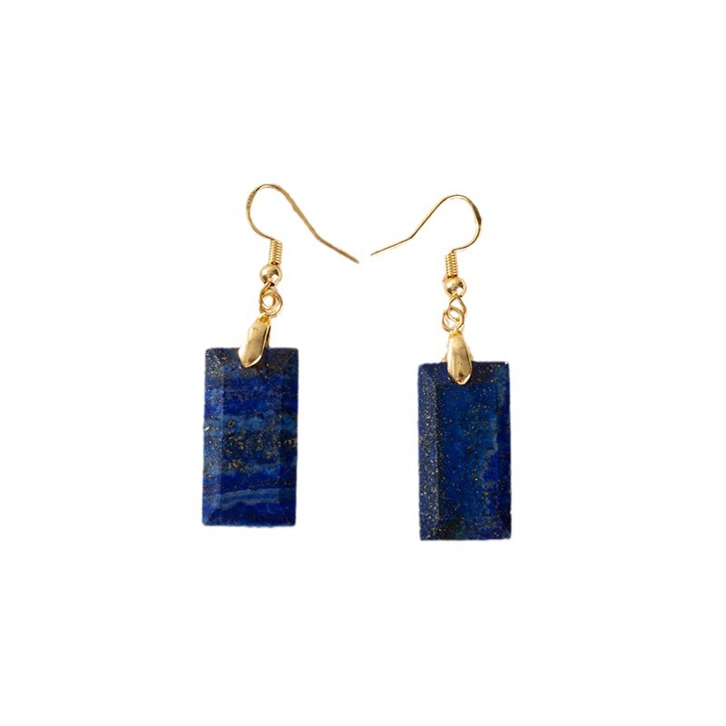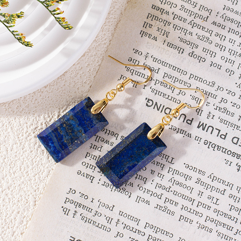 Edelstein Tropfen Ohrring, Messing, mit Lapislazuli, Rechteck, goldfarben plattiert, für Frau, tiefblau, 23mm, verkauft von Paar