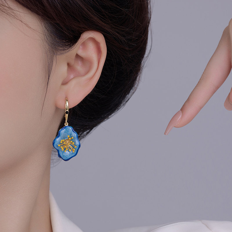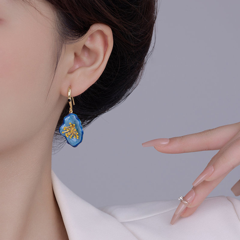 Messing Tropfen Ohrring, plattiert, Modeschmuck & Emaille, blau, 20x44mm, verkauft von Paar