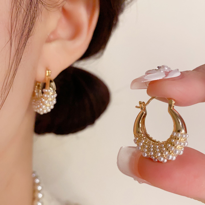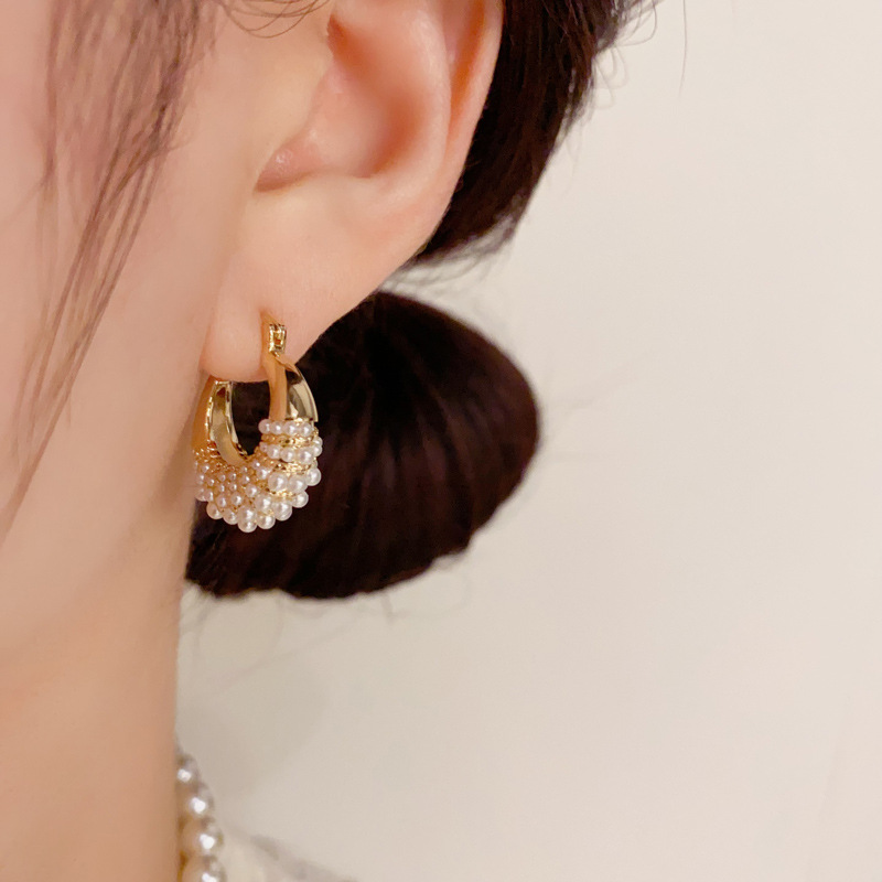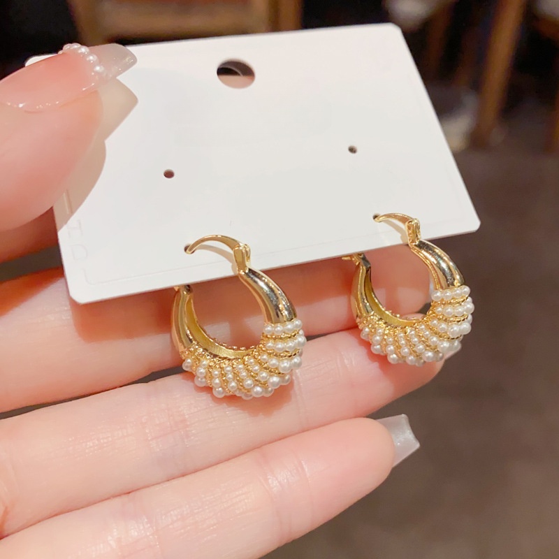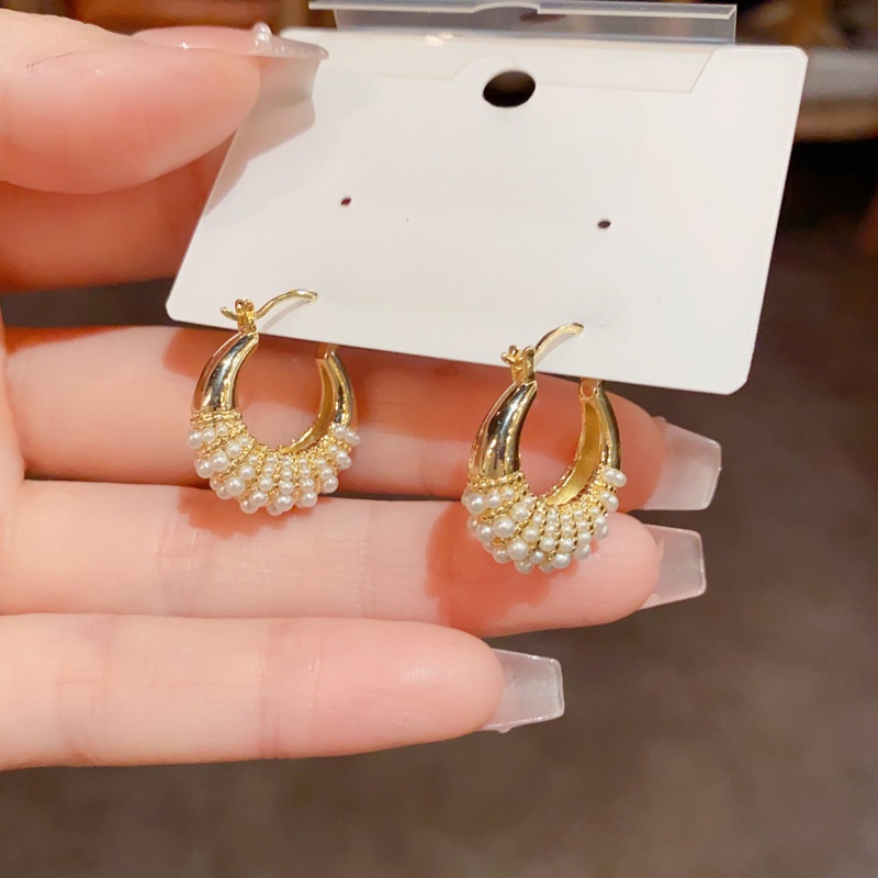 Messing Tropfen Ohrring, mit ABS-Kunststoff-Perlen, goldfarben plattiert, Modeschmuck, goldfarben, 19.6x23.7mm, verkauft von Paar