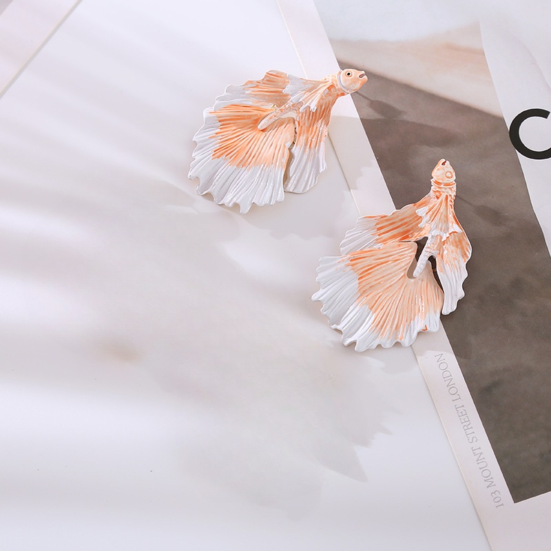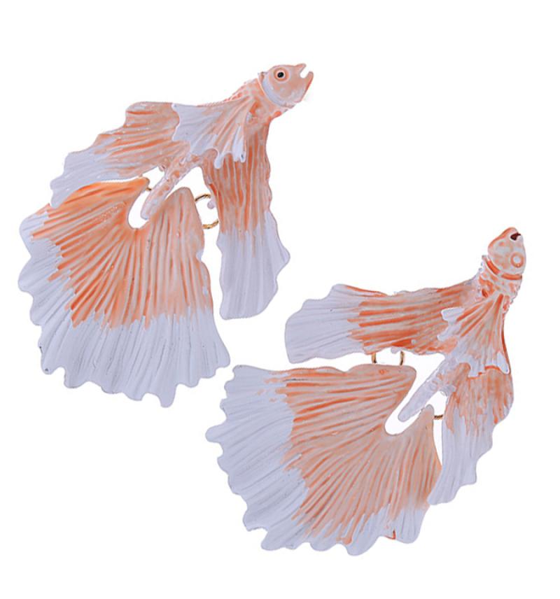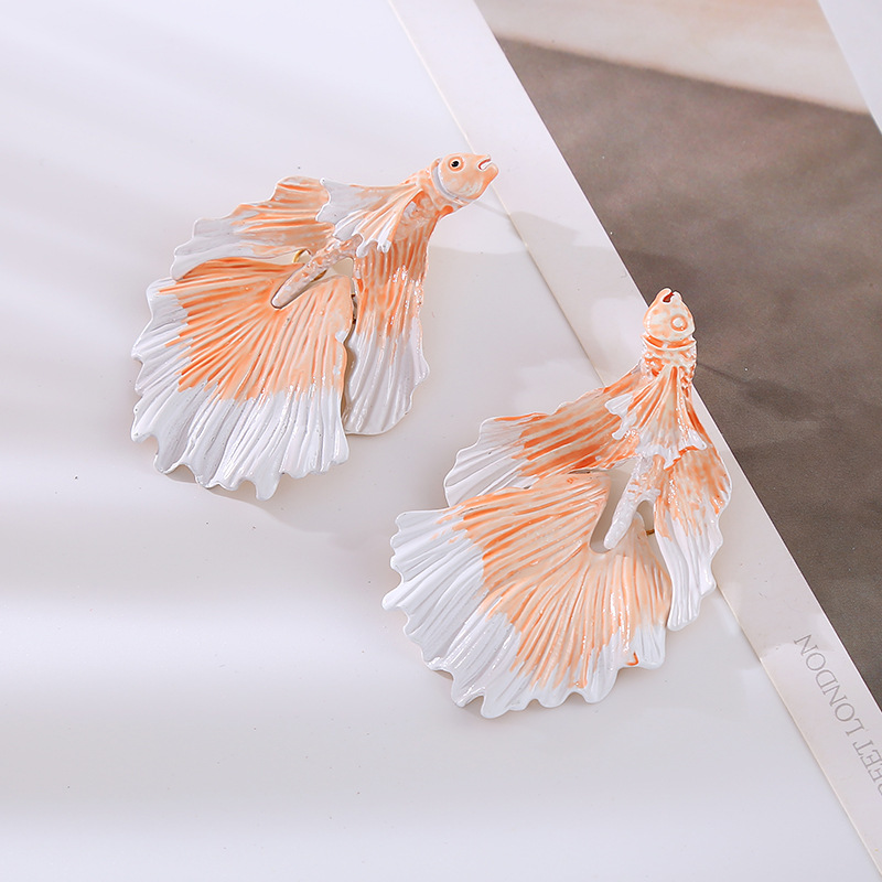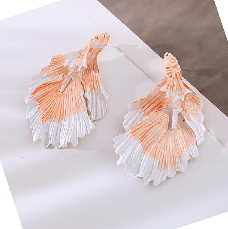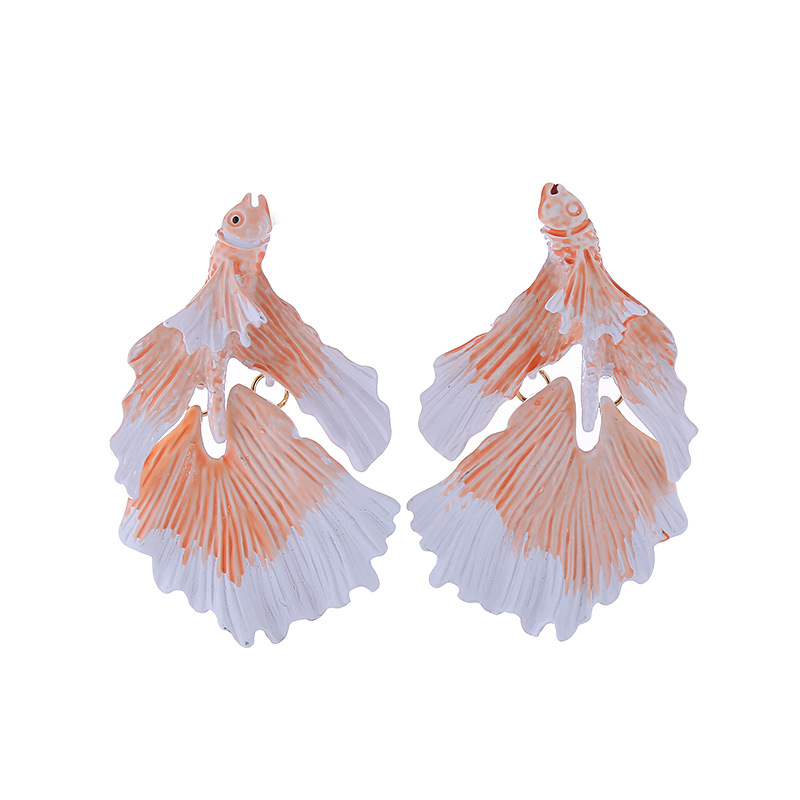 Zink Legierung Tropfen Ohrring, Zinklegierung, Fisch, plattiert, Modeschmuck, Rosa, 65x40mm, verkauft von Paar