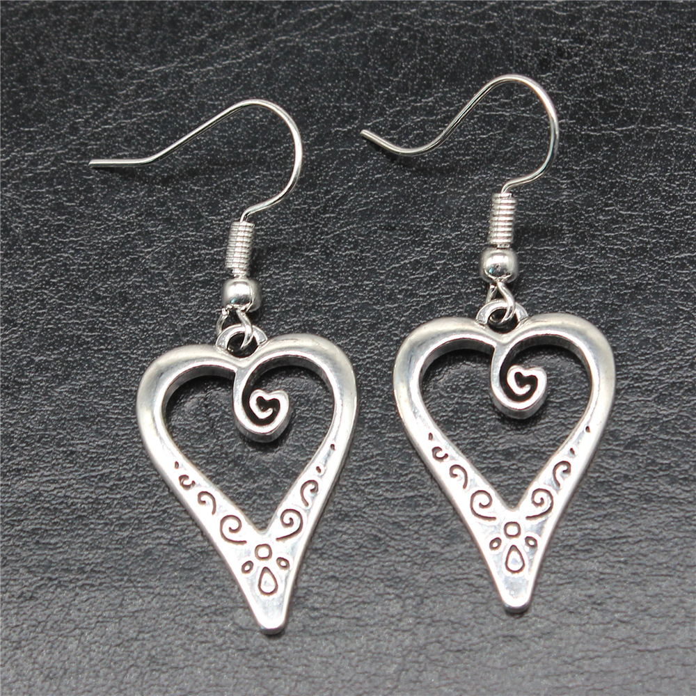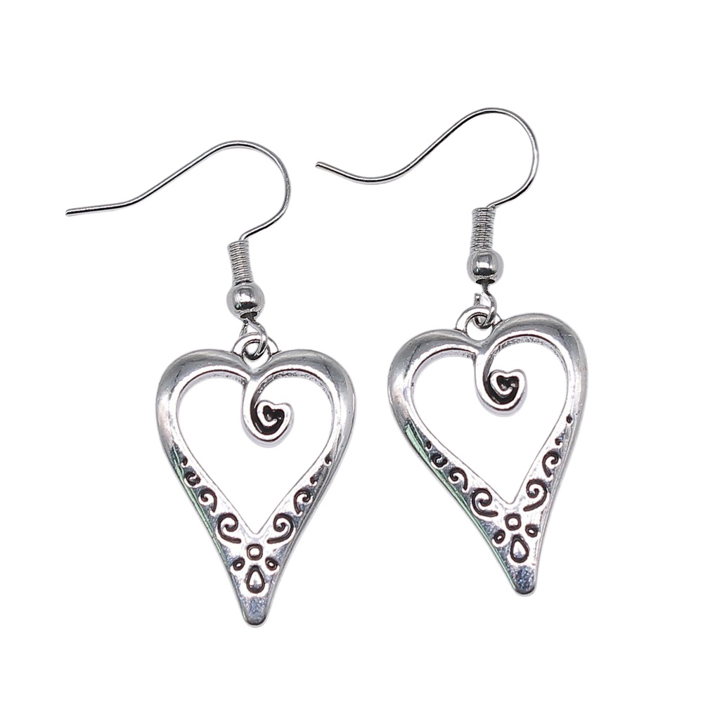 Zink Legierung Tropfen Ohrring, Zinklegierung, mit Eisen, Herz, antik silberfarben plattiert, Modeschmuck & für Frau, Ear drop 25x17mm, ear hook 18x19mm, verkauft von Paar