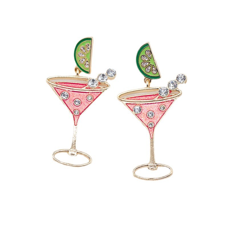 Zink Legierung Tropfen Ohrring, Zinklegierung, Tasse, für Frau & Emaille & mit Strass & hohl, Rosa, verkauft von Paar
