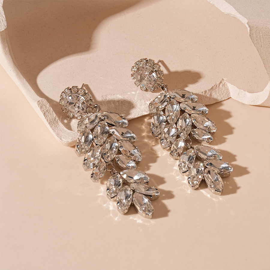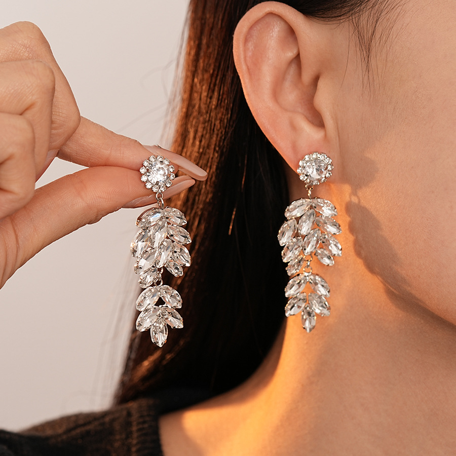 Harz Messing Drop Ohrring, Weizen, Modeschmuck & für Frau & mit Strass, Silberfarbe, 63x21mm, verkauft von Paar
