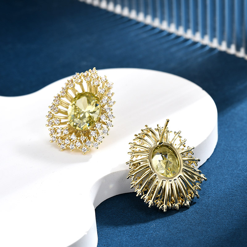 Befestiger Zirkonia Messing Ohrring, plattiert, Micro pave Zirkonia & für Frau, goldfarben, 20x25mm, verkauft von Paar