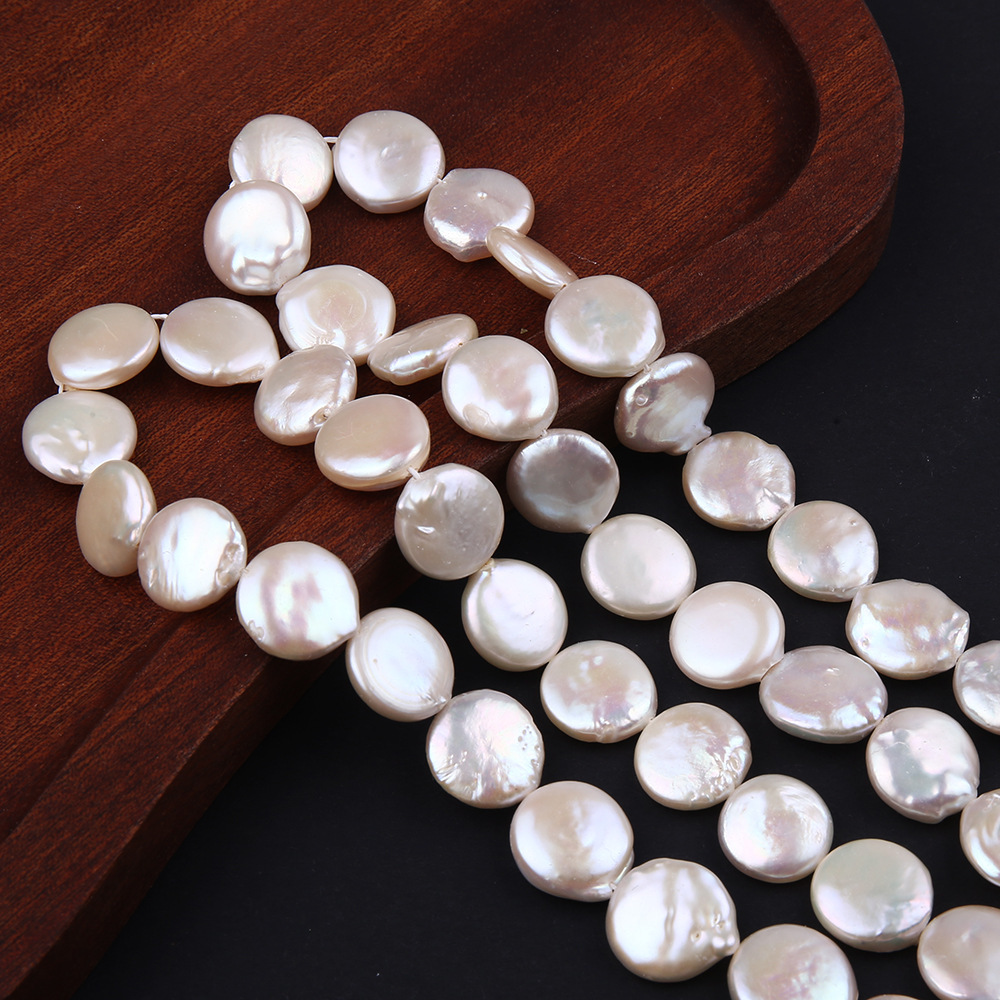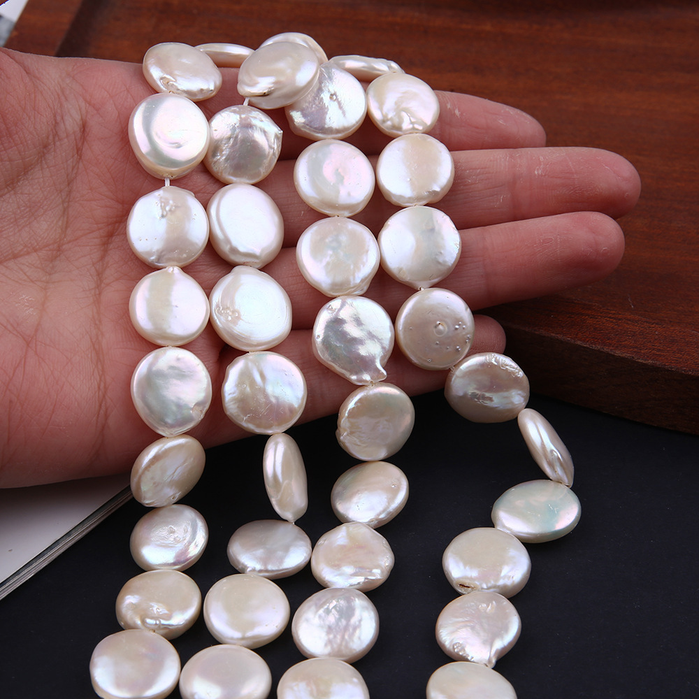 Button kultivierte Süßwasserperlen, Natürliche kultivierte Süßwasserperlen, Etwas rund, DIY, weiß, About:13-14mm, verkauft von Strang